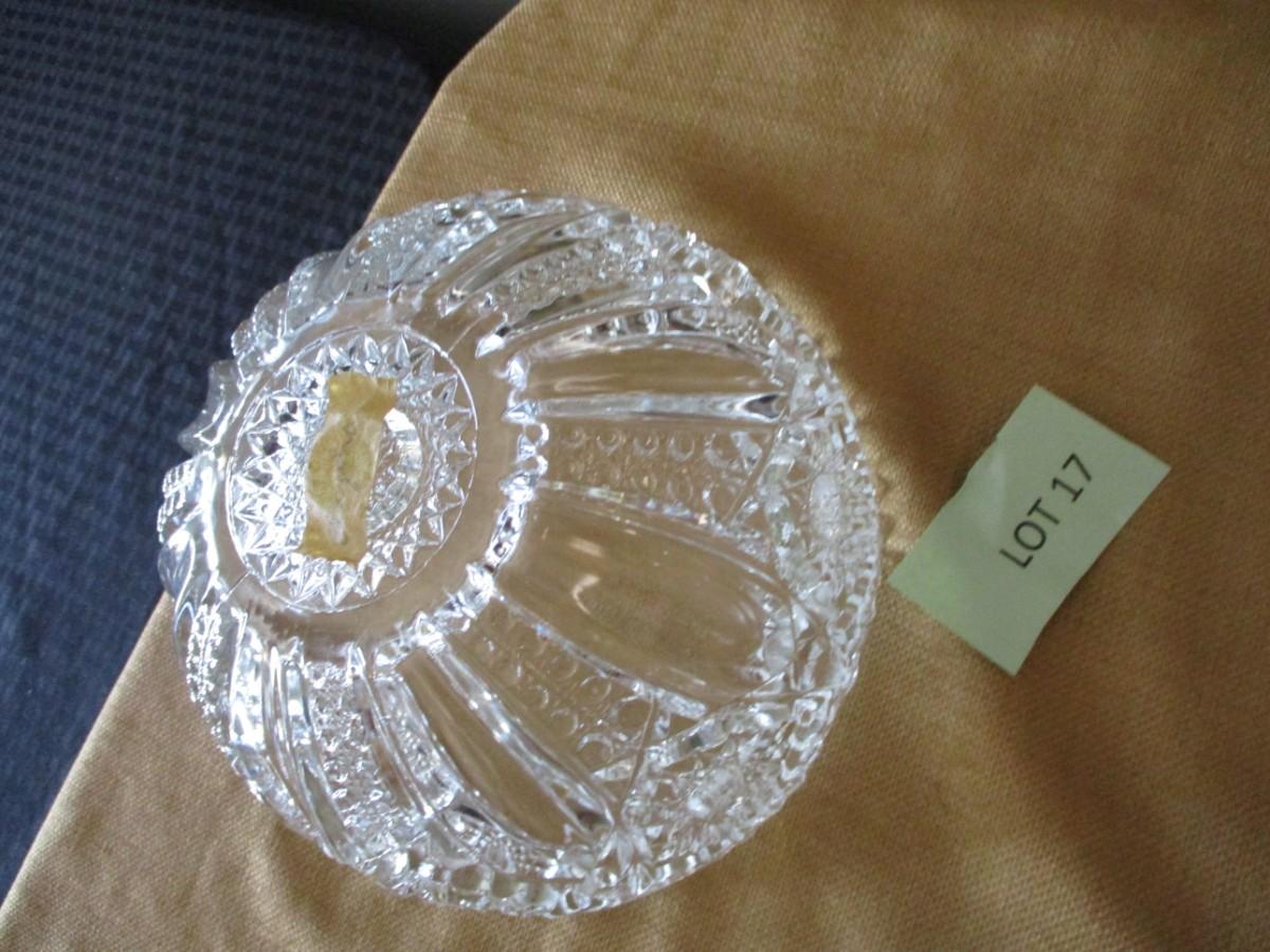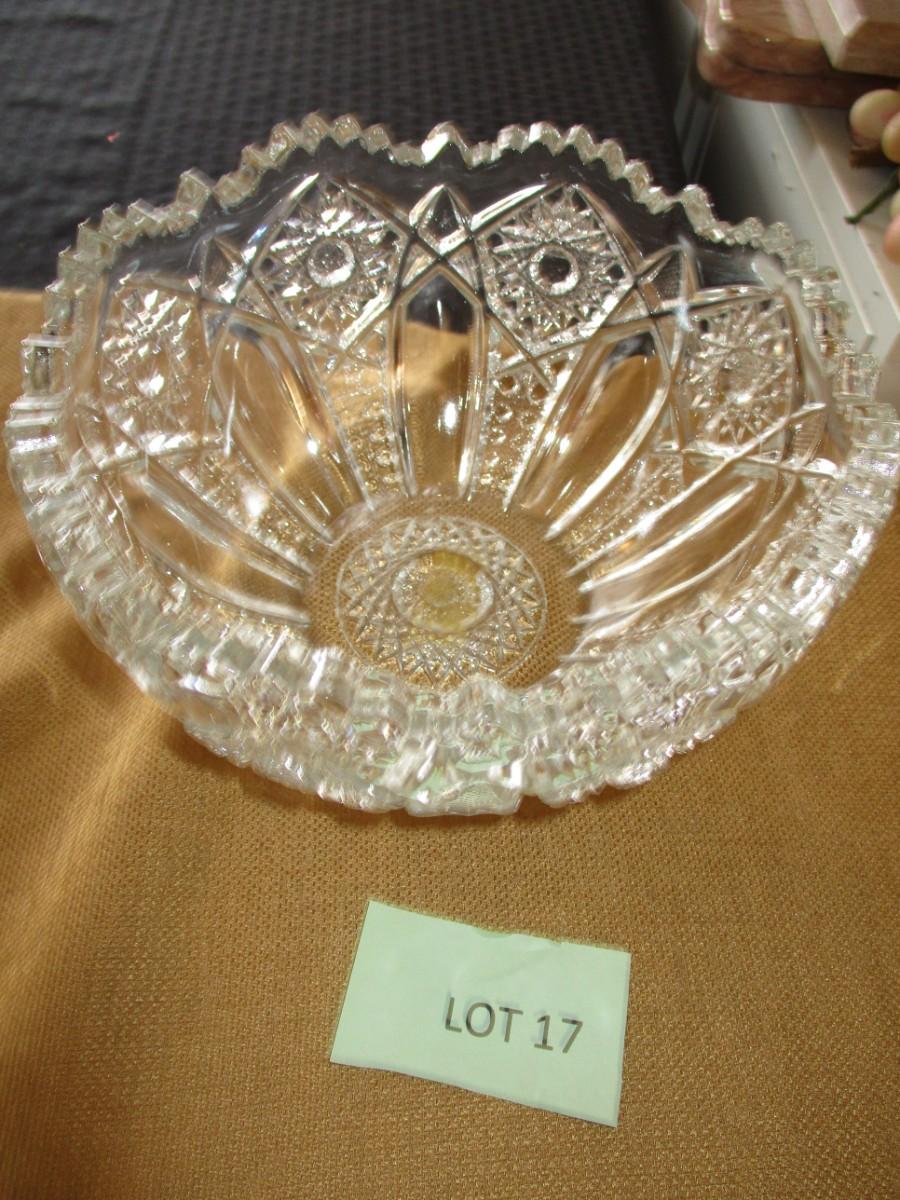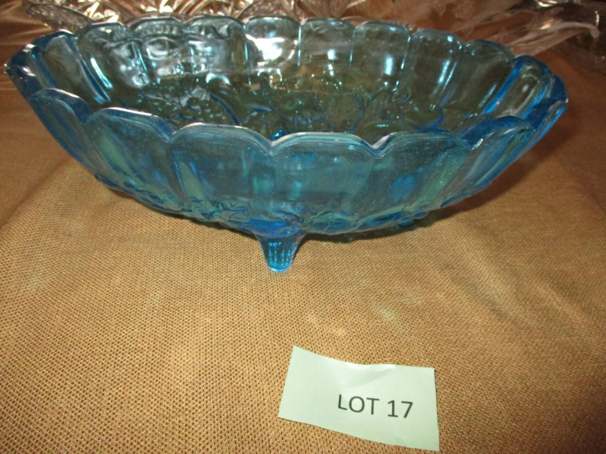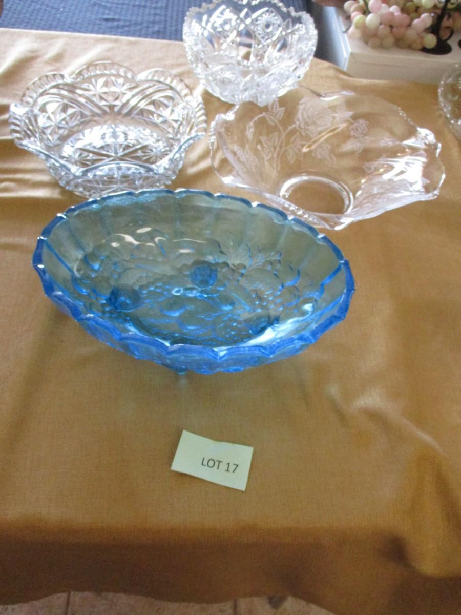 Etched Rose Design bowl. Aqua Indiana Glass footed bowl. Lead cut crystal bow. Anchor Hocking Glass Bowl. 4pc Excellent Condition