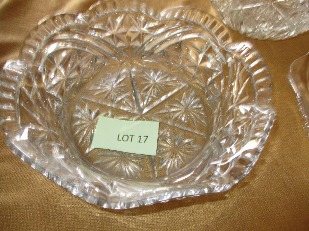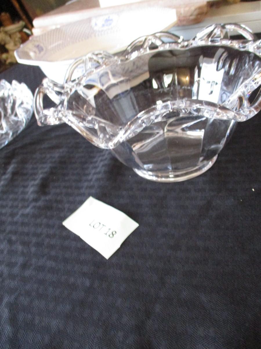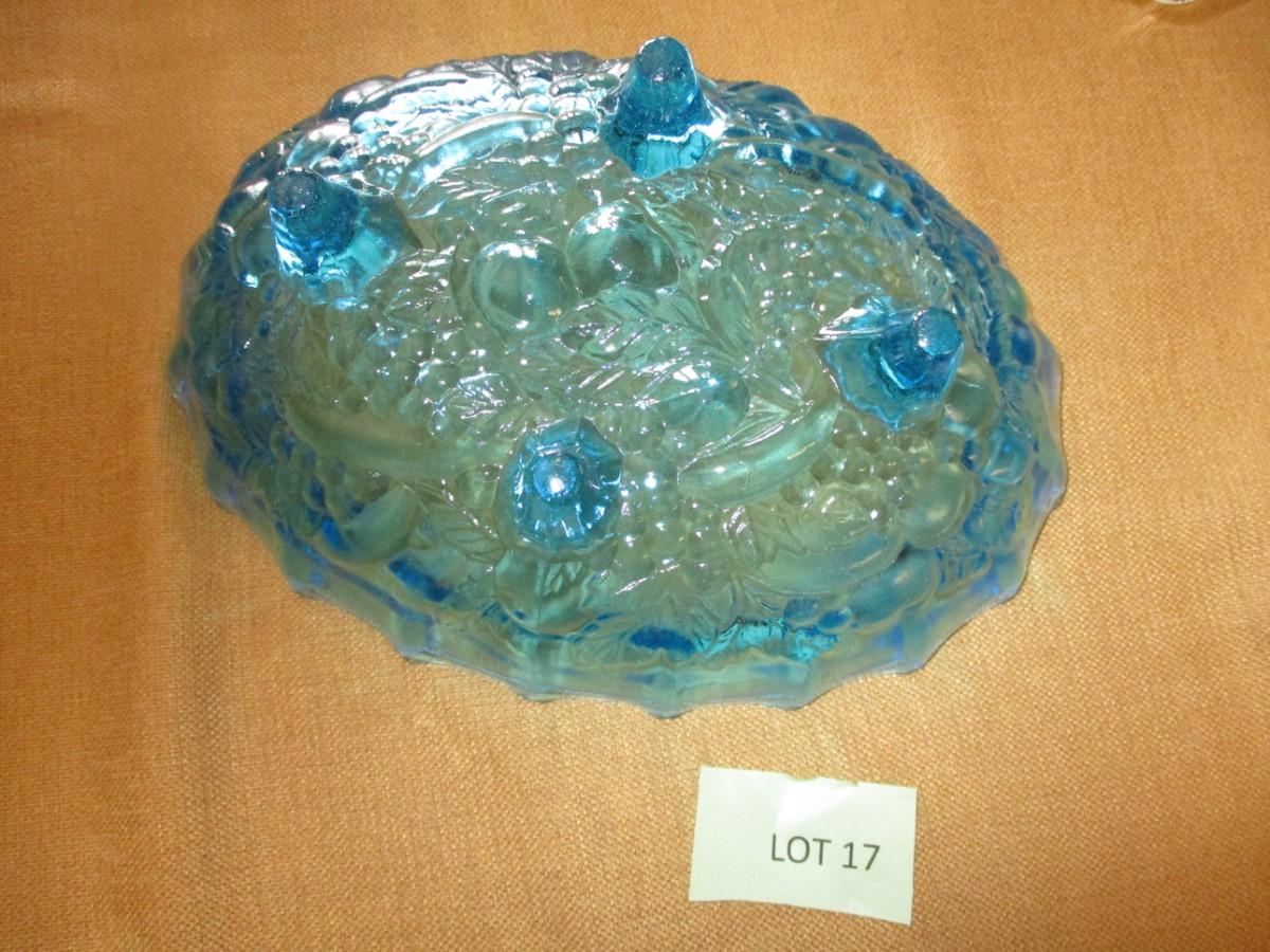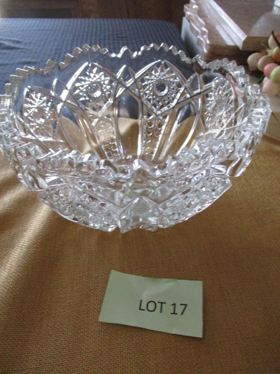 Etched Rose Design bowl. Aqua Indiana Glass footed bowl. Lead cut crystal bow. Anchor Hocking Glass Bowl. 4pc Excellent Condition