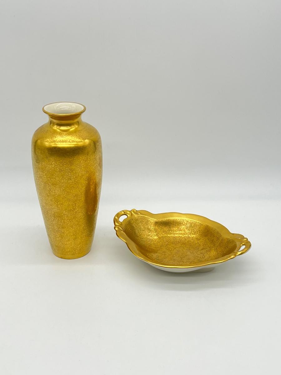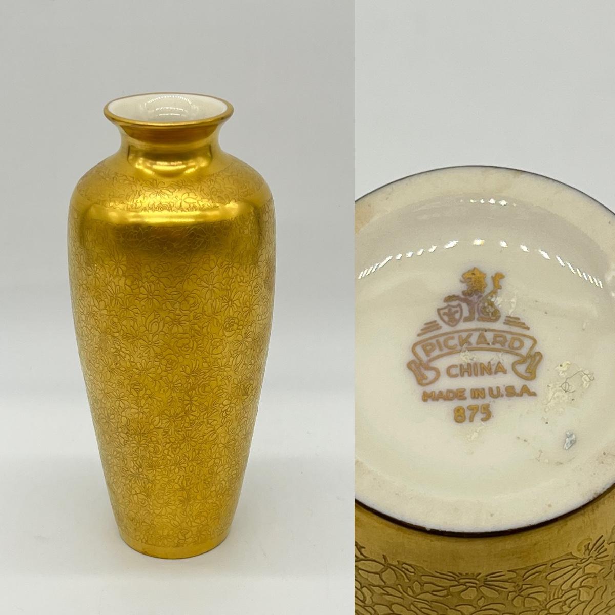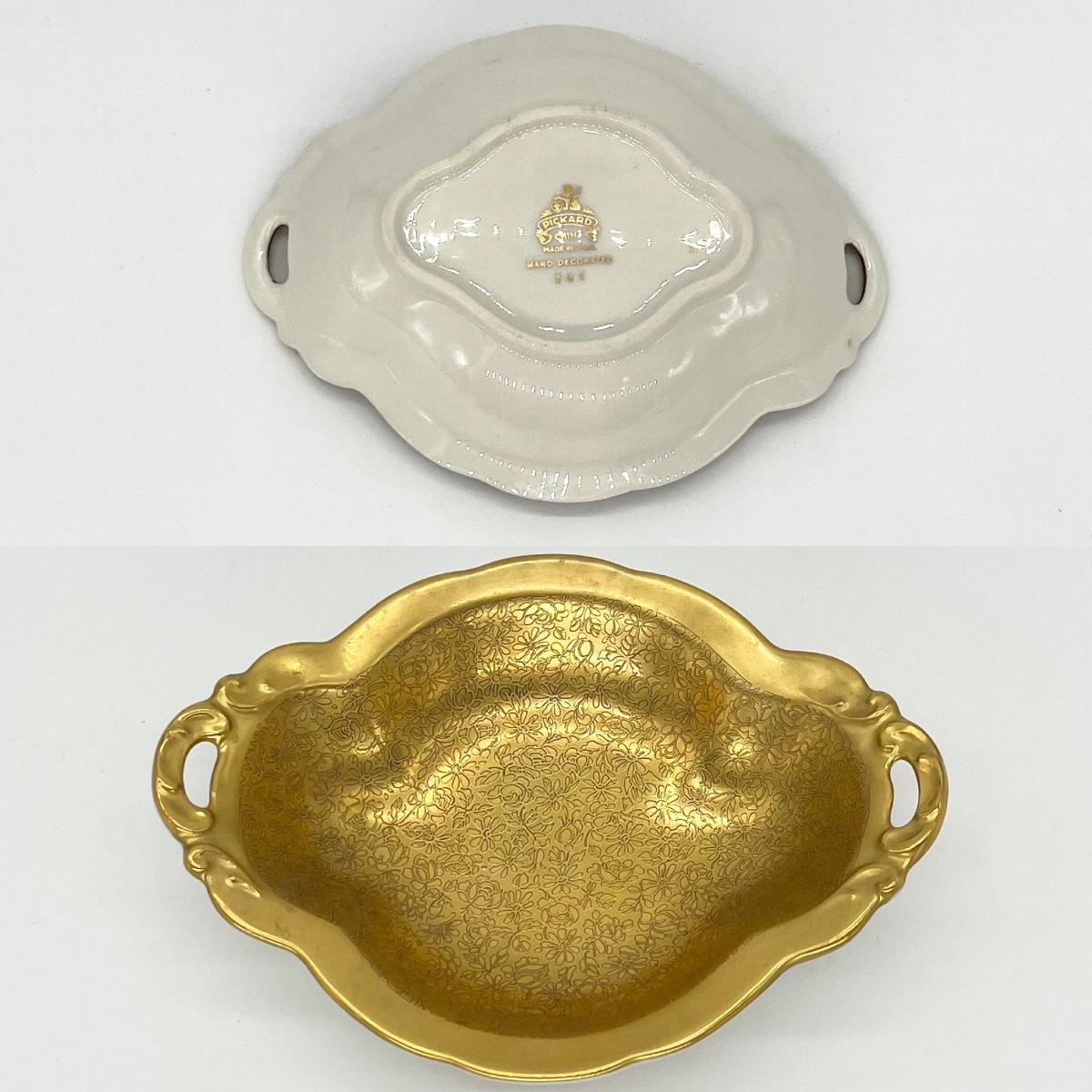 PICKARD ~ Gold Flower Daisy & Rose Design China Bud Vase & Candy Dish