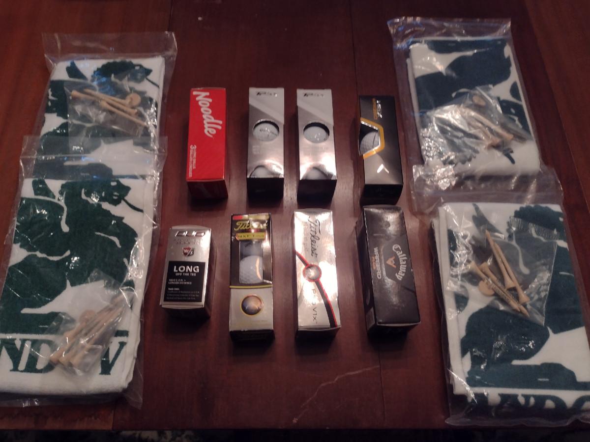Assorted Golf Balls and Golf Towels (Grandover Resort, Greensboro,NC). Some balls may be monogrammed.