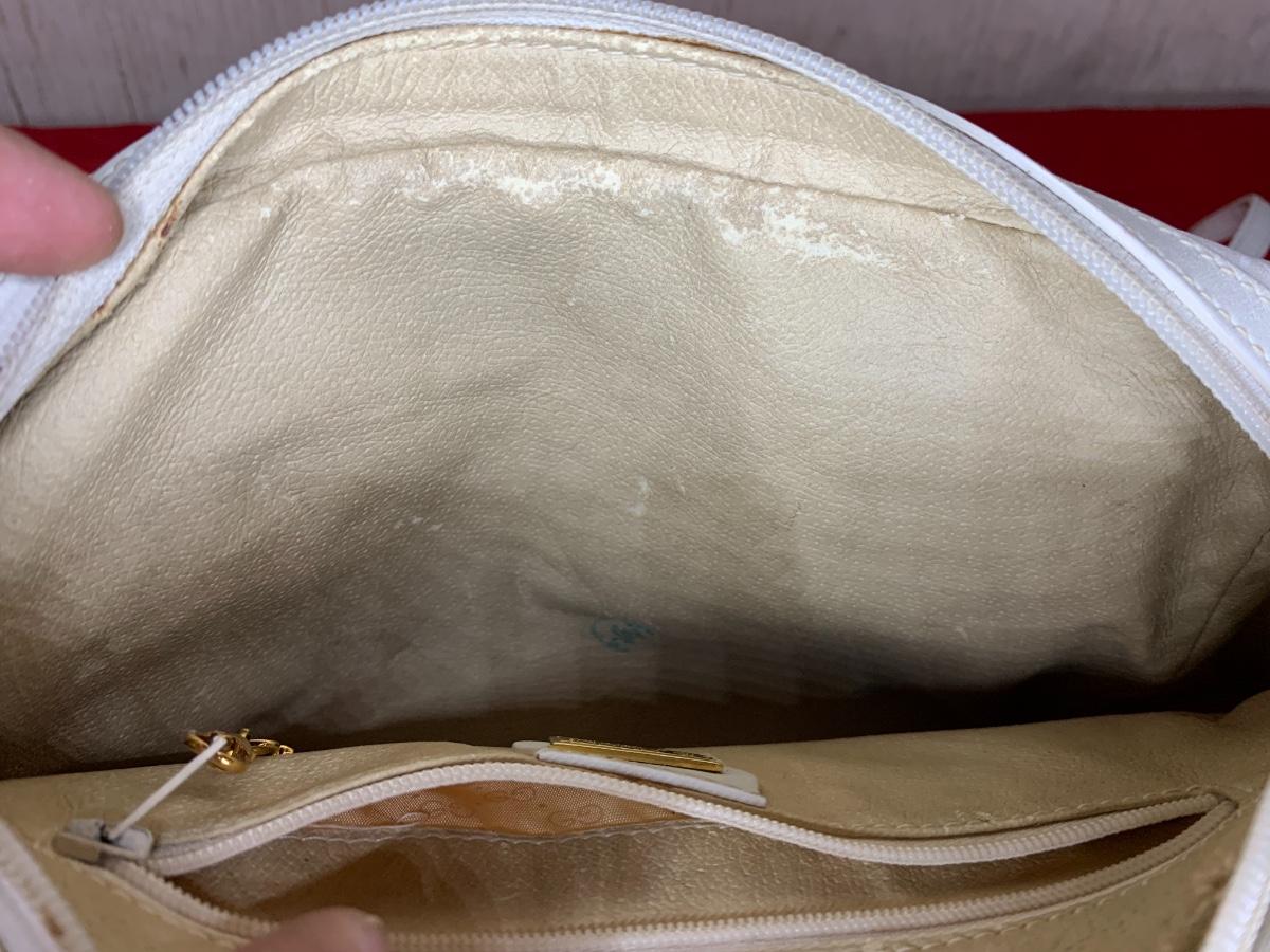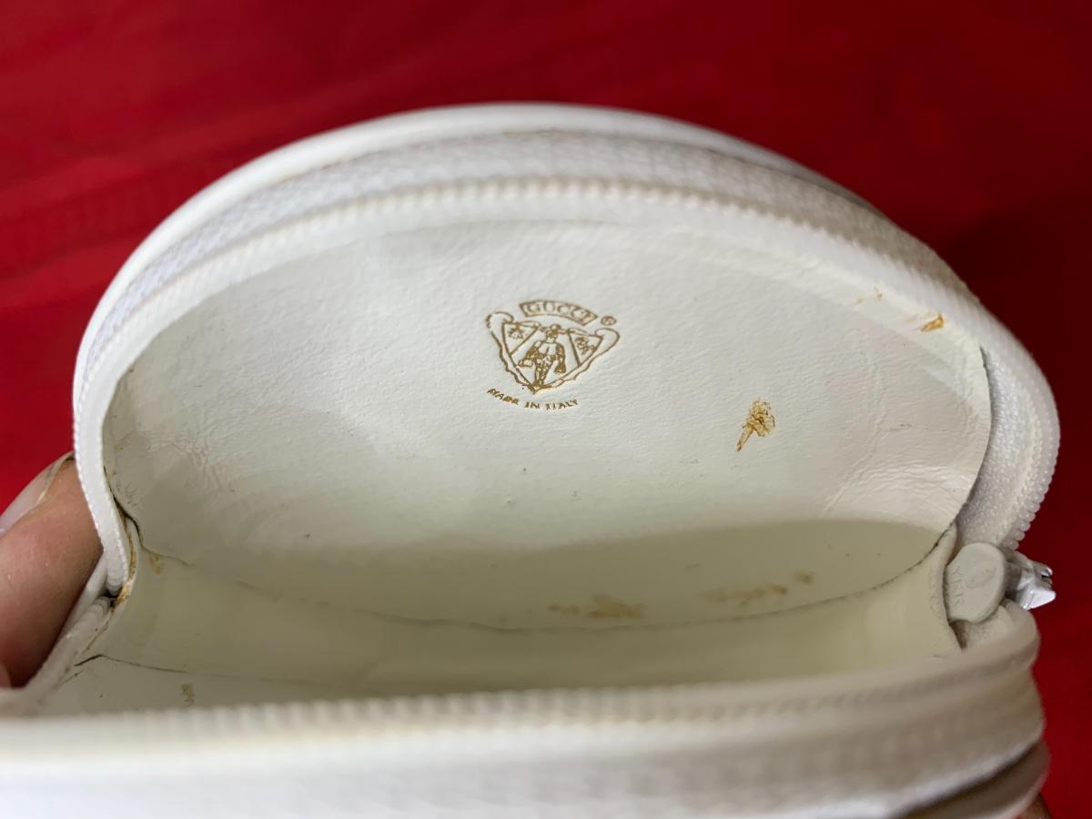 White coin purse interior great and exterior fair condition, white large purse has a fair exterior (needs cleaning) and a fair interior. Beige and brown Gucci purse exterior in good condition, interior in excellent condition. Brown and brown leather Gucci purse in poor exterior condition and fair interior condition