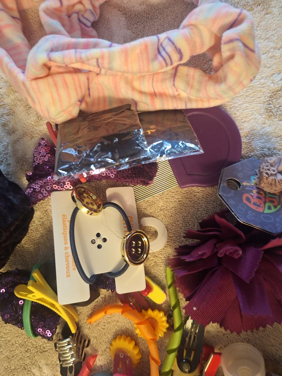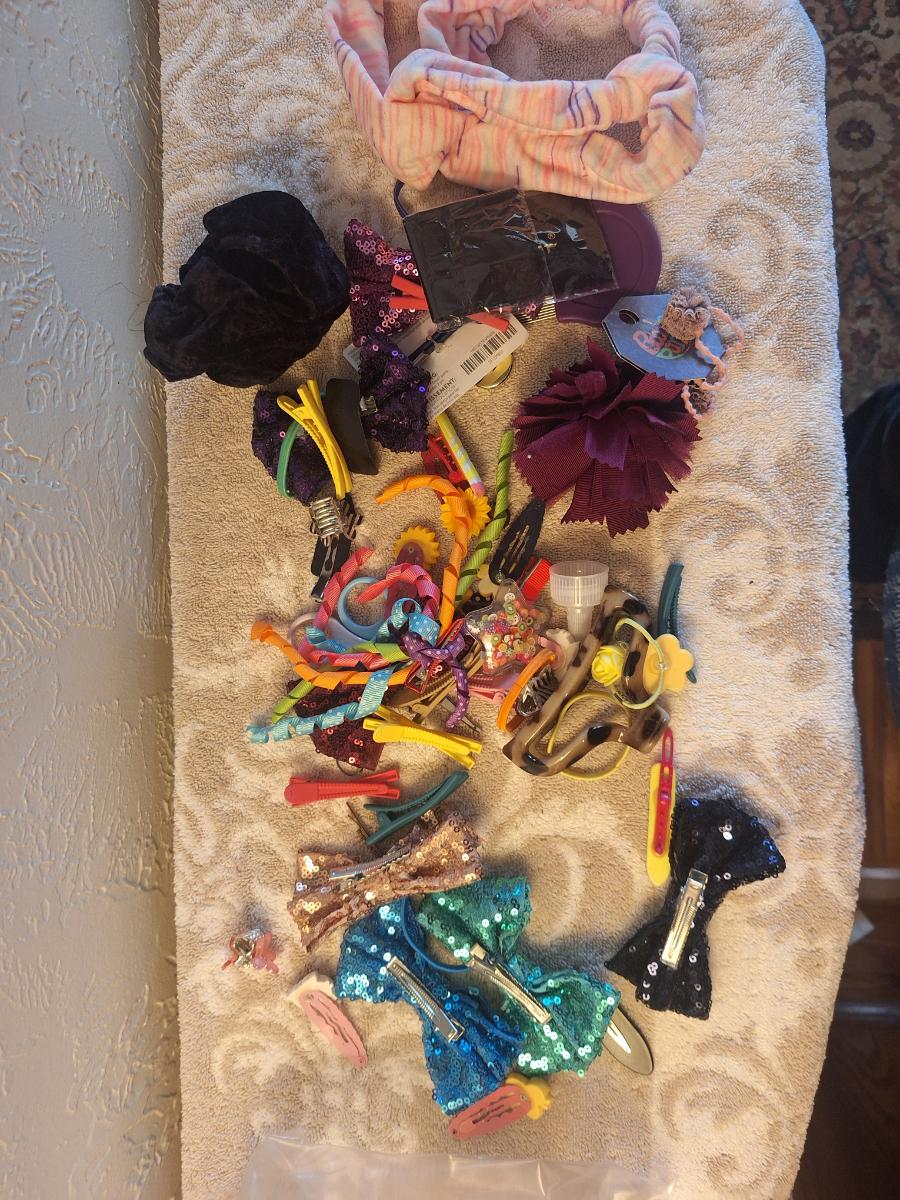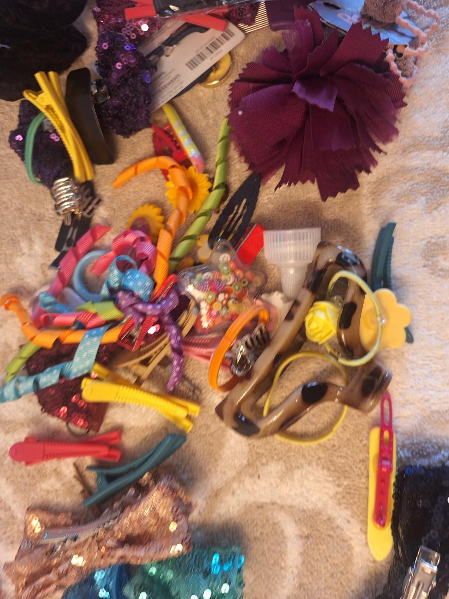 assorted hair bows, clips, and headbands.