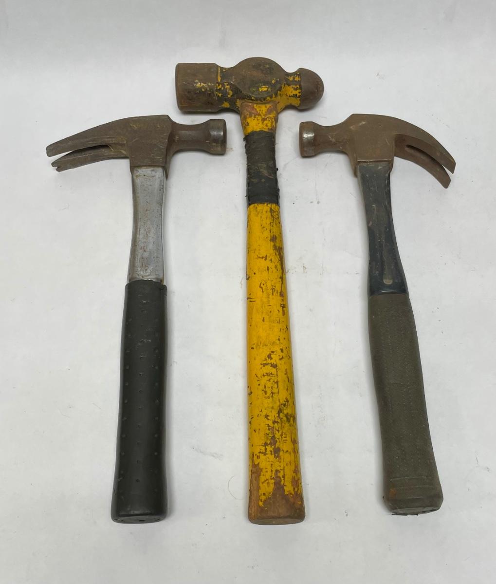 3 used hammers, see photos for details of each. Used, but otherwise in good condition.