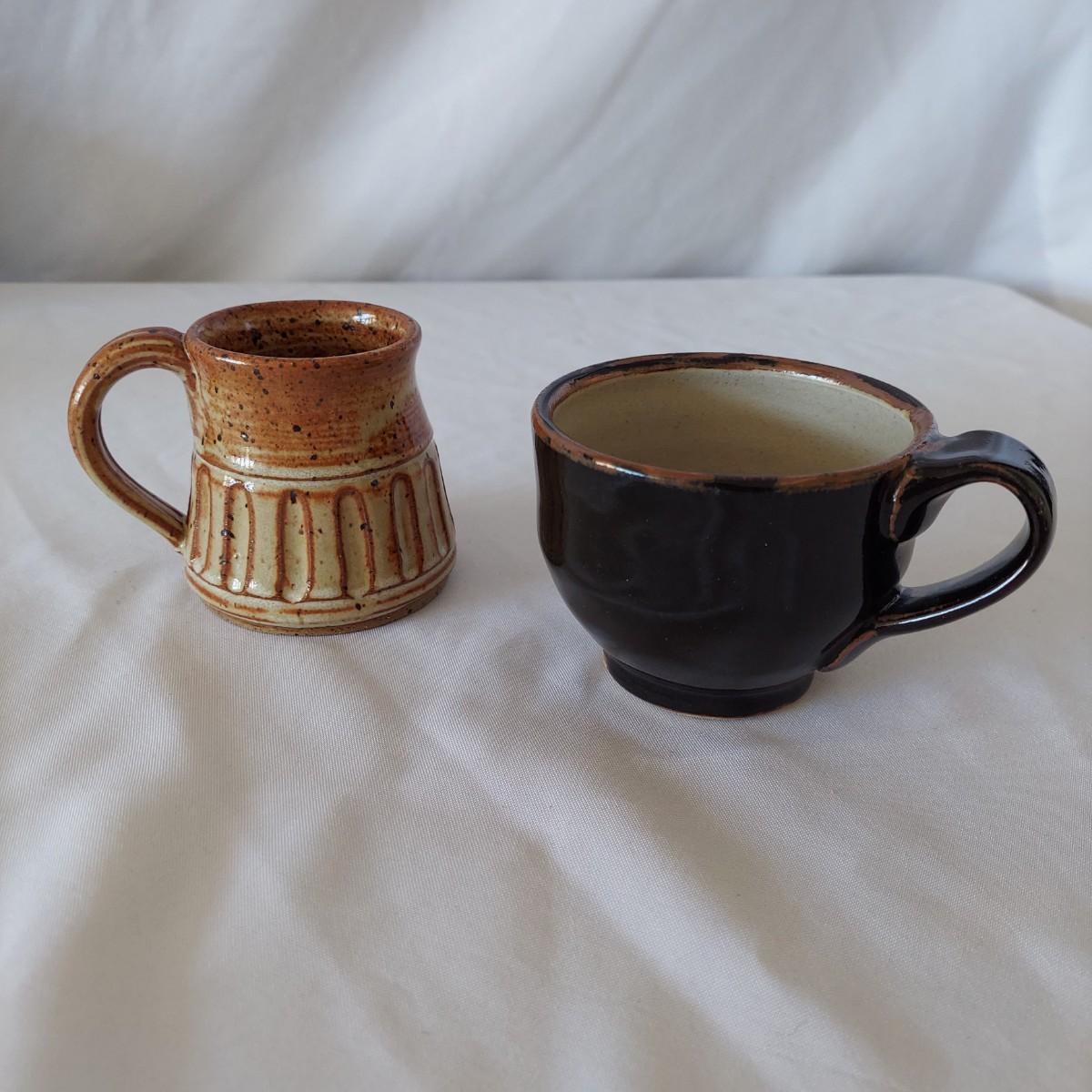 Seven assorted mugs that appear to be handmade pottery. Most are marked on the bottom. Please see photos for details. Shipping available