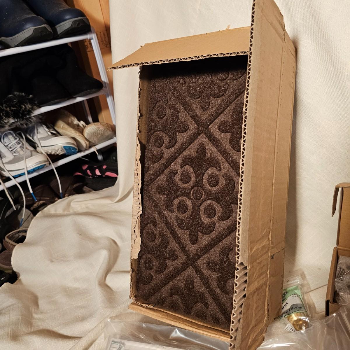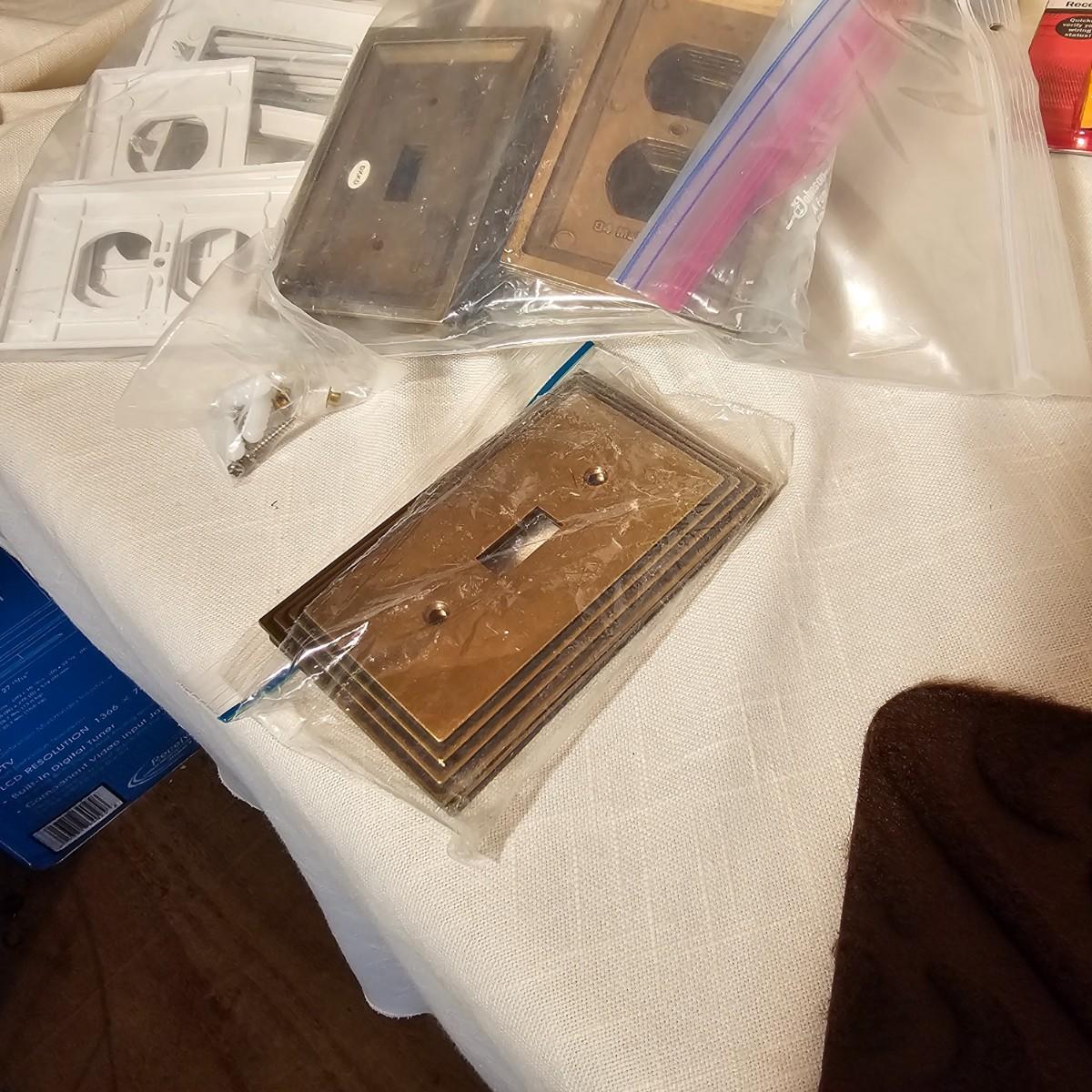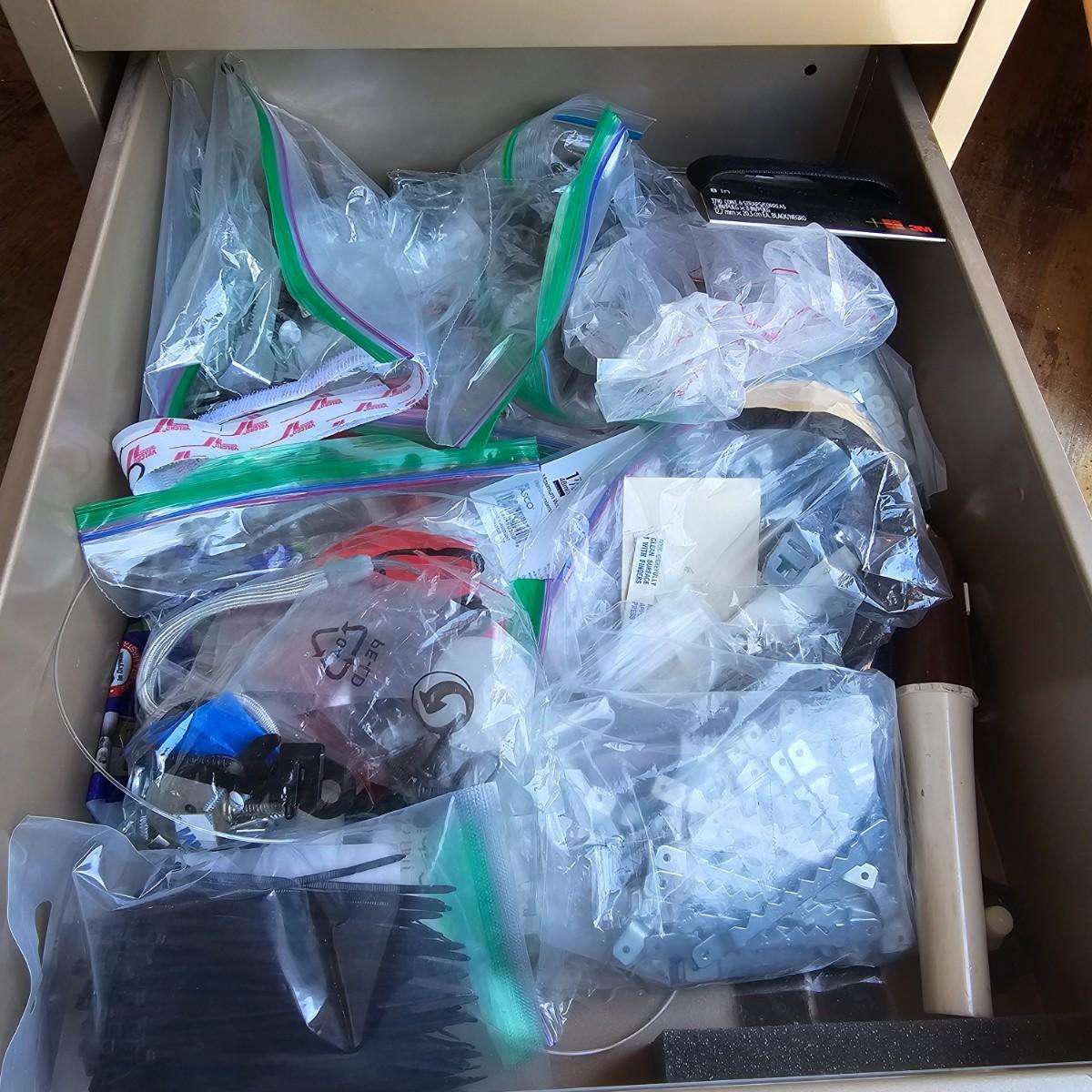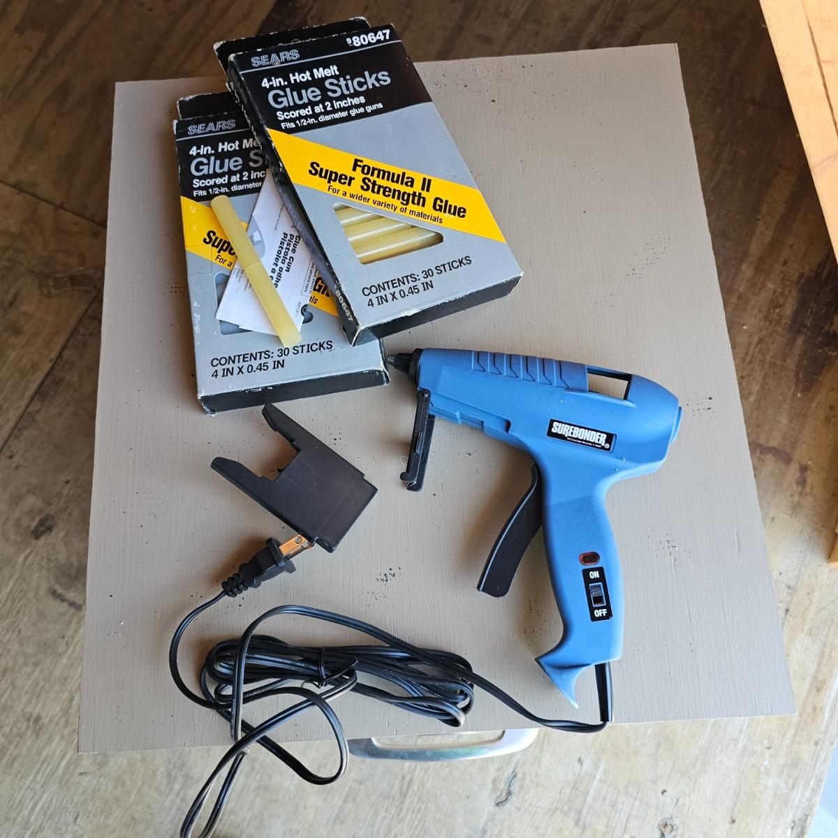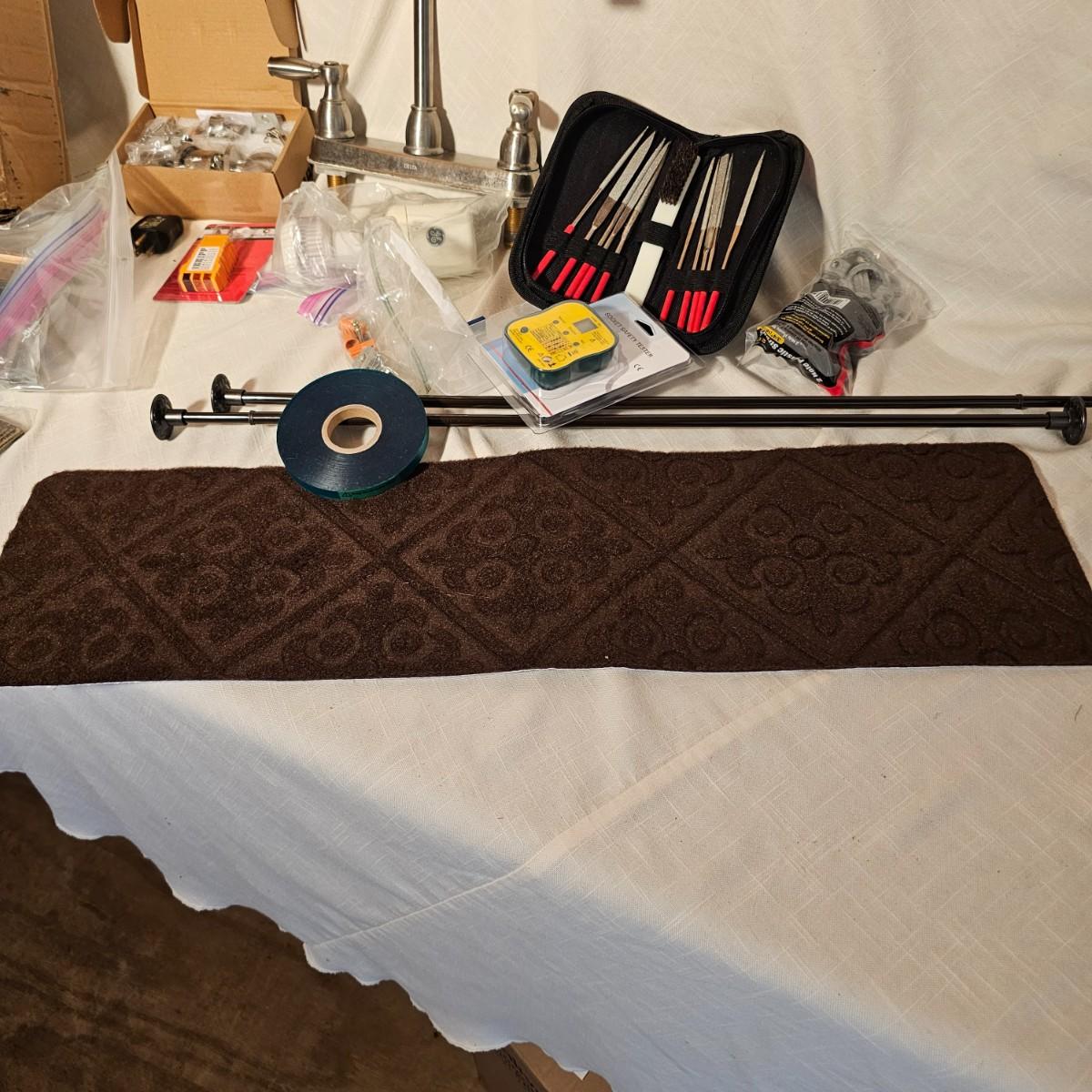 Miscellaneous plumbing, electrical and more. Plastic and brass switch and outlet covers. Set of corundum files in case. Two faucets, circuit testers. Nine adhesive stair treads, 8" x 30". A four drawer steel cabinet with assorted hand tools, zip ties, velcro, staples, more. One Surebonder glue gun and sticks, powered on when plugged in. See photos for details. Local pickup only.