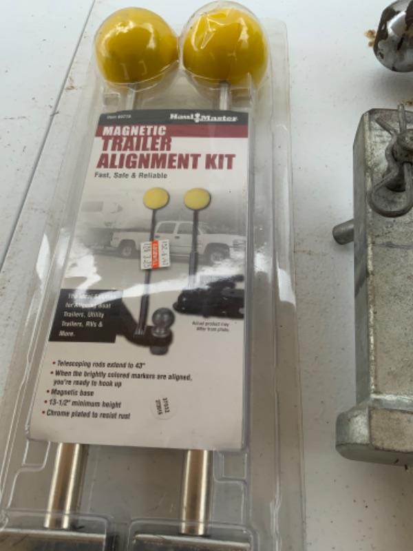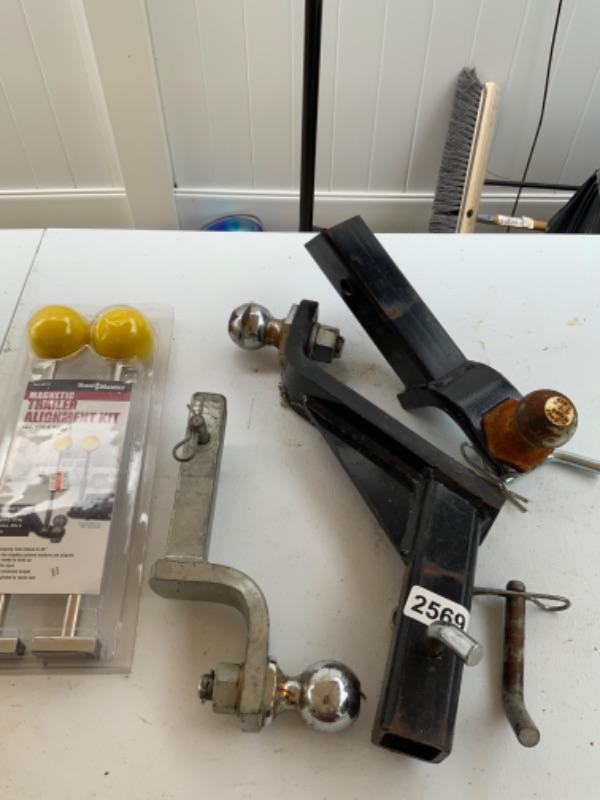 Assorted hitches, pins and magnetic trailer alignment kit Lot 2569