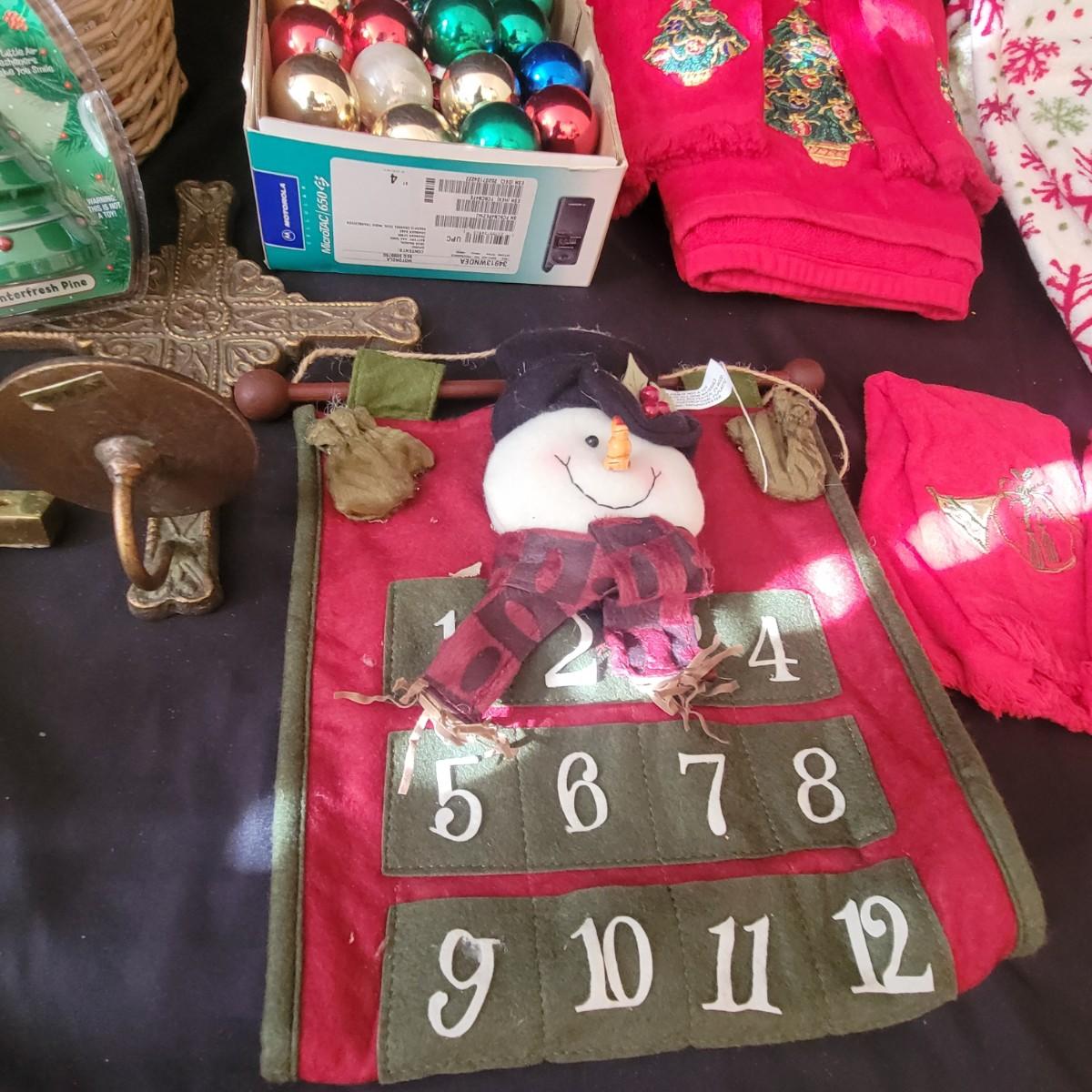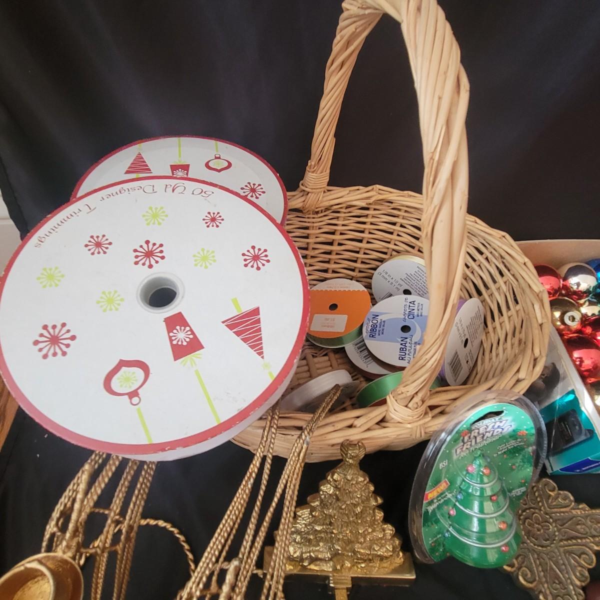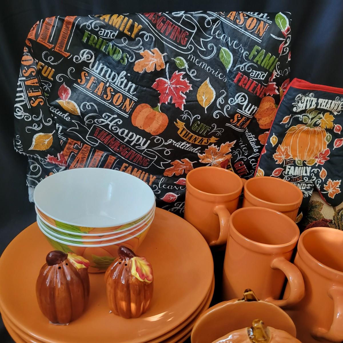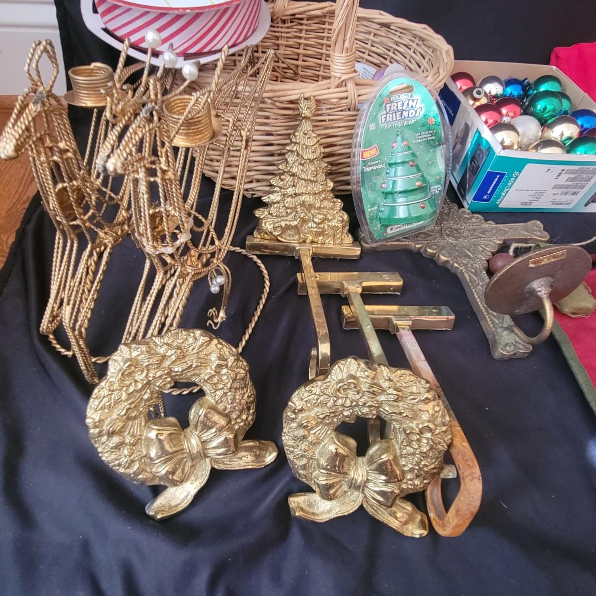 A variety of items for various holidays. Christmas items include ornaments, ribbon, reindeer candle holders, stocking hangers and more. Fall items includes working lights, ceramic plates and mugs, table runners and other assorted fall linens. Local pickup only