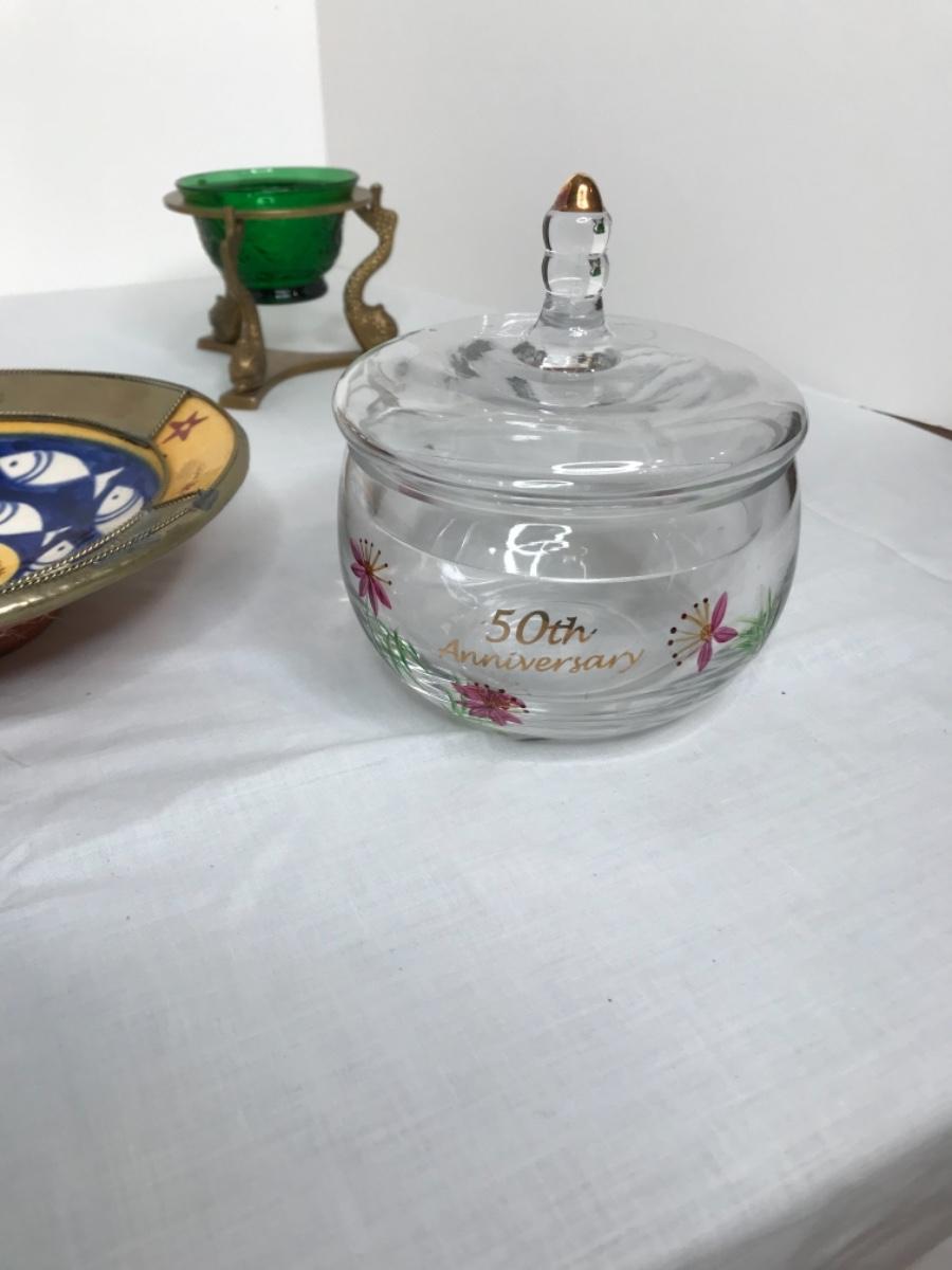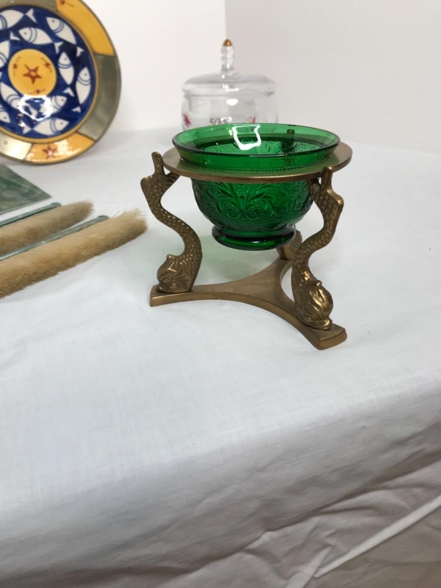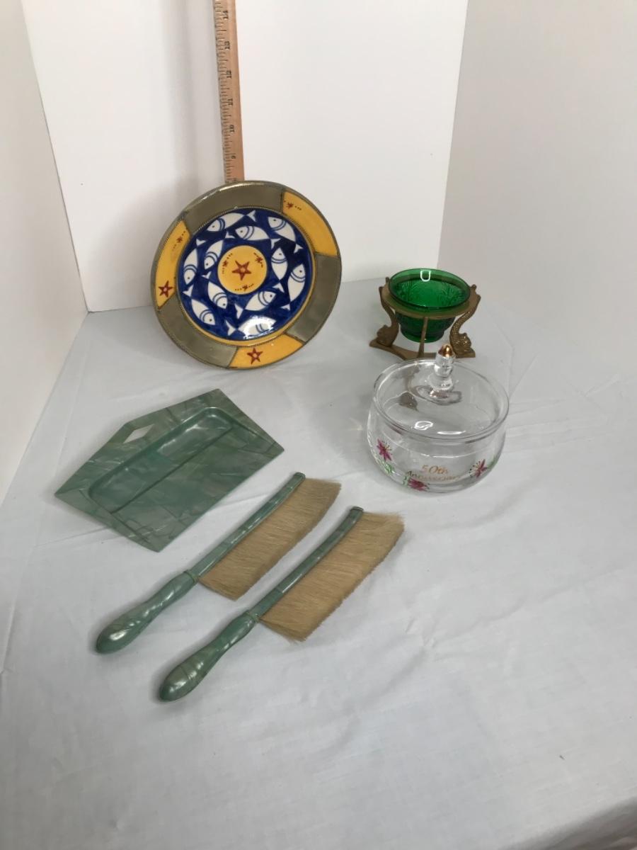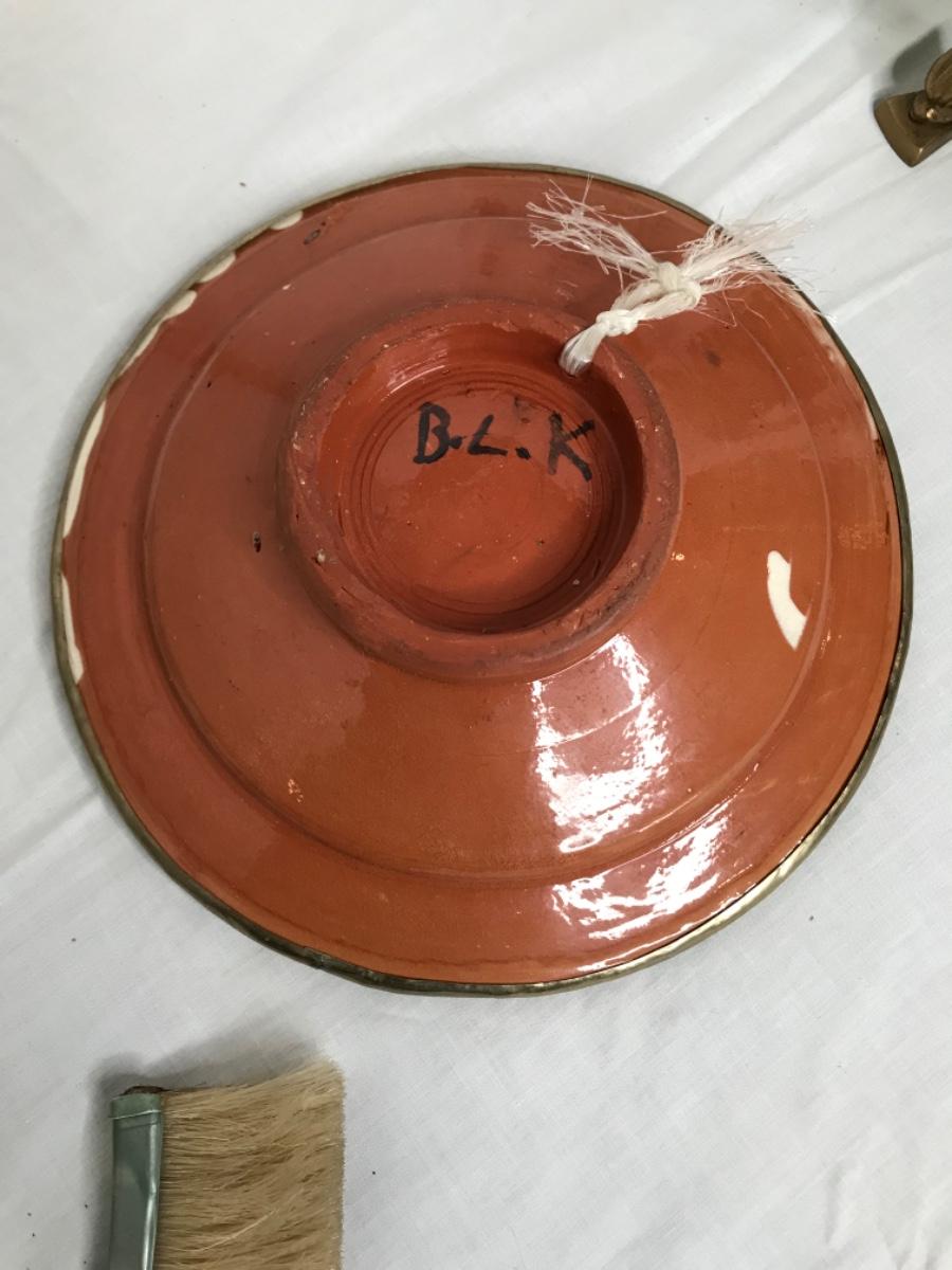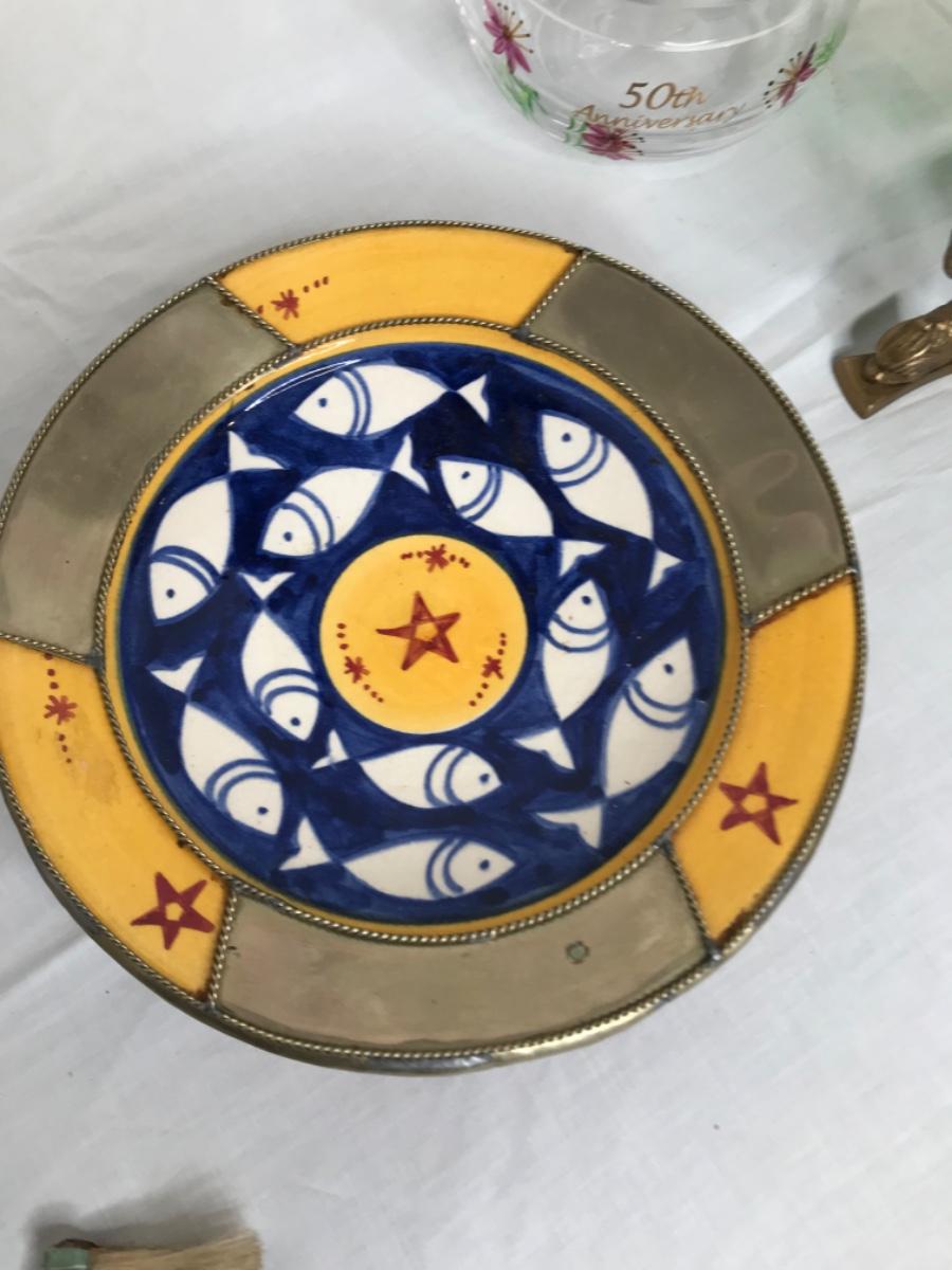 Plate/bowl with fishes painted on inside and trimmed with yellow, red and green