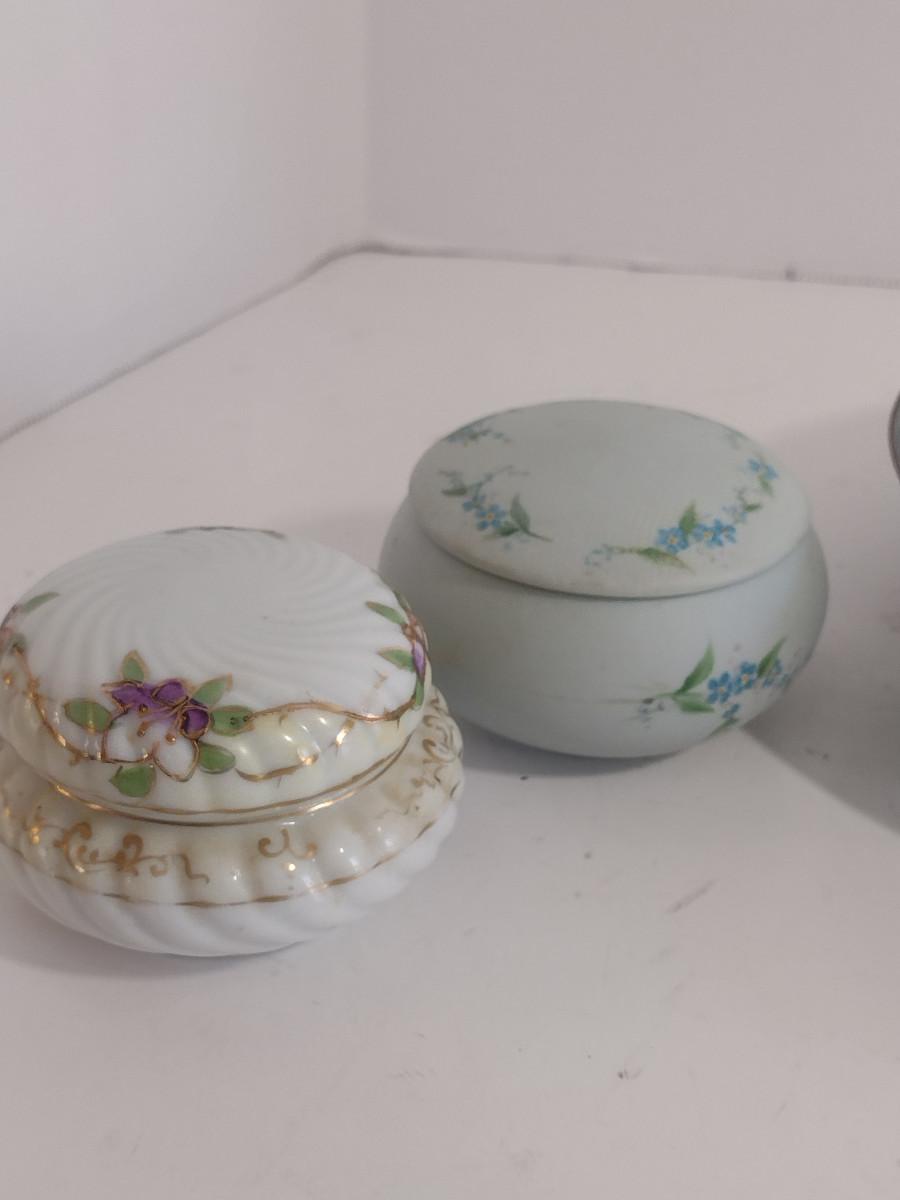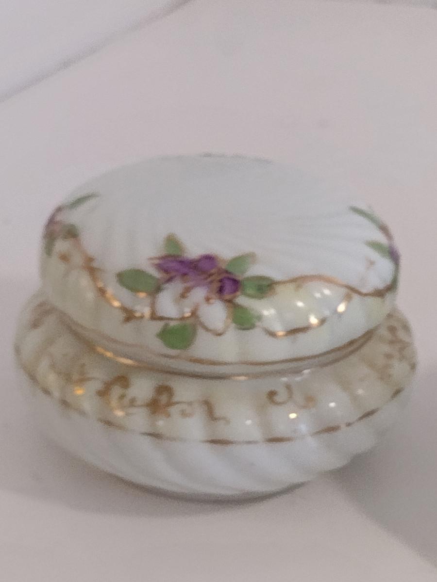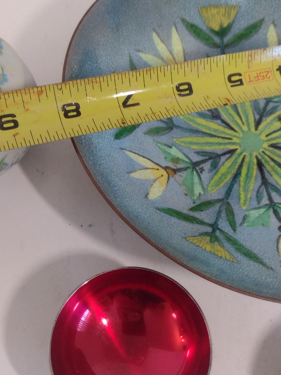 Assorted Home Decor Items- Enameled Bowls, Japanese Salt & Pepper Shakers (Decor #7). One trinket box has slight chip on rim.