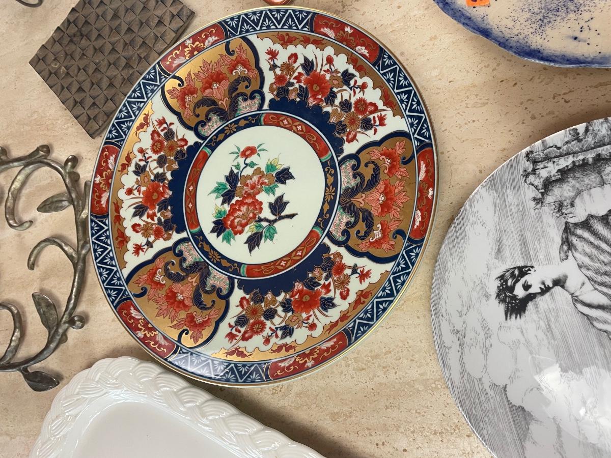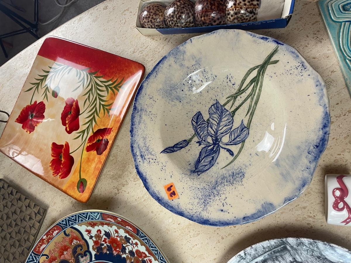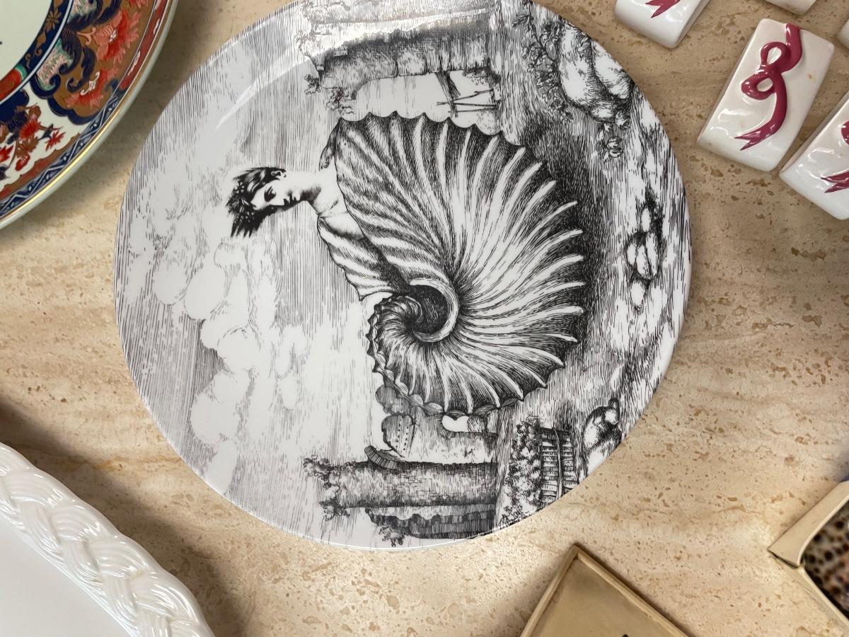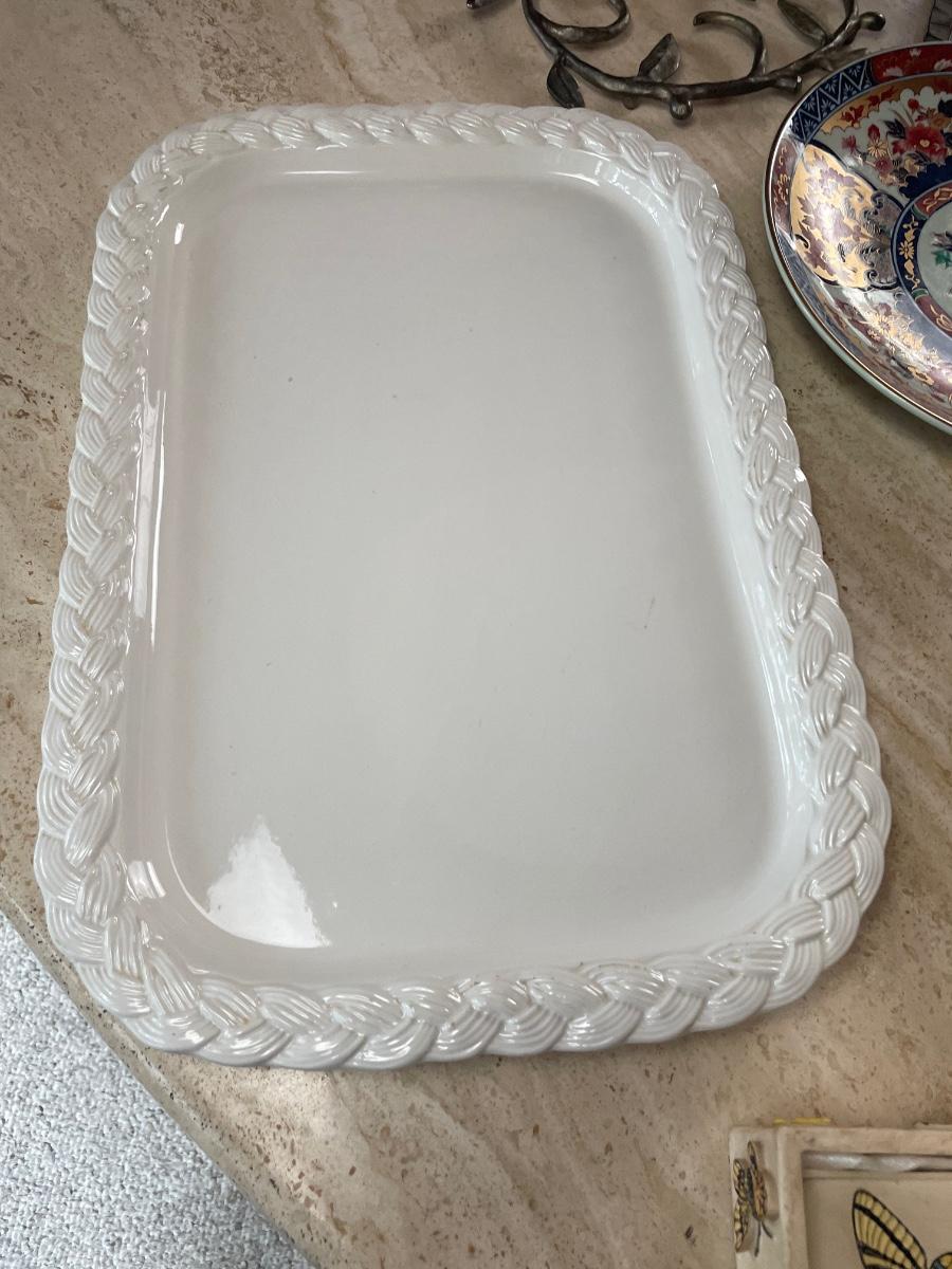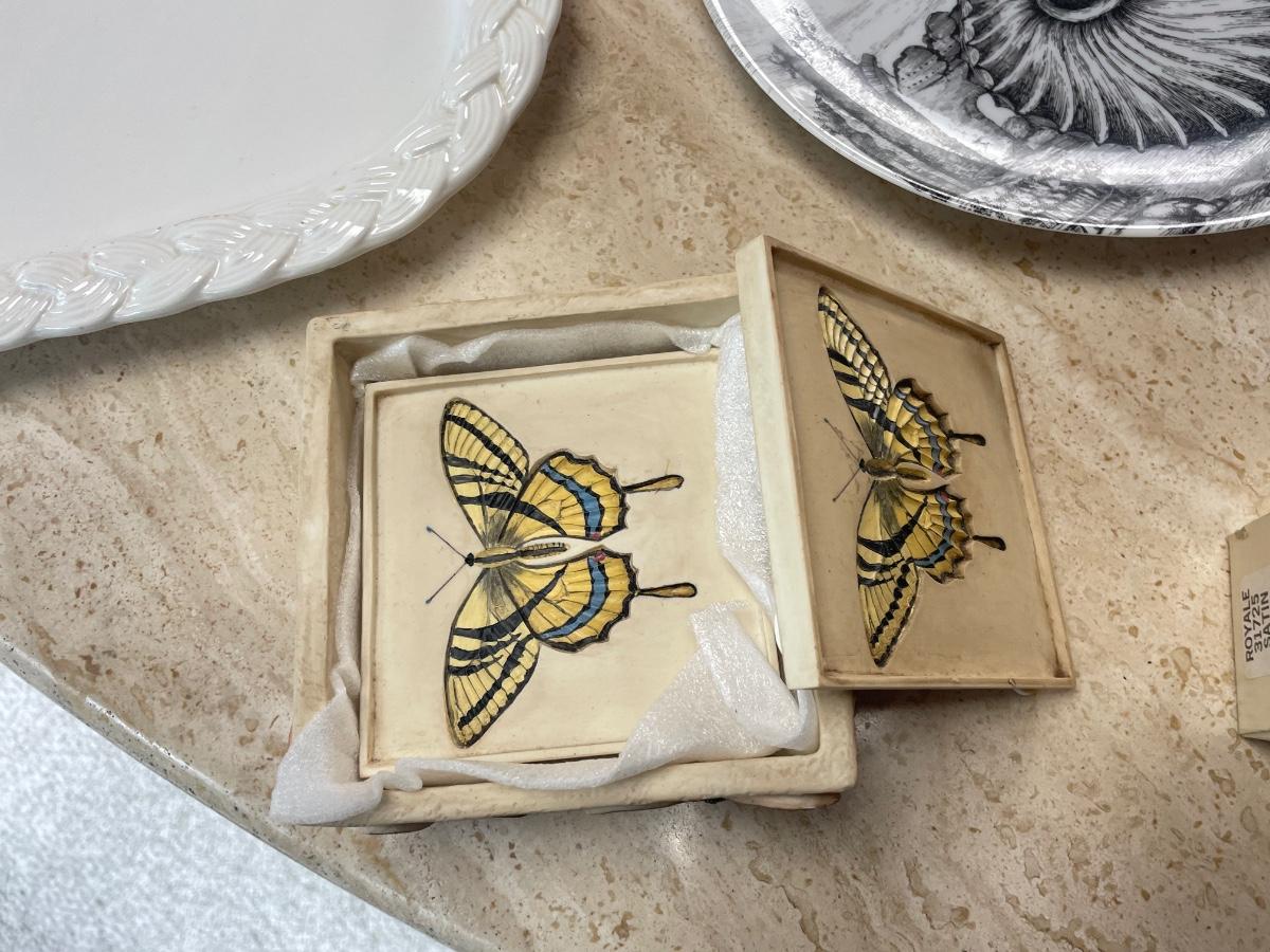 Trivets, plates, 6 glasses in holder, shell napkin rings, platter, and more!