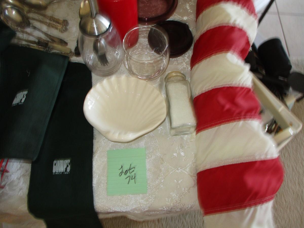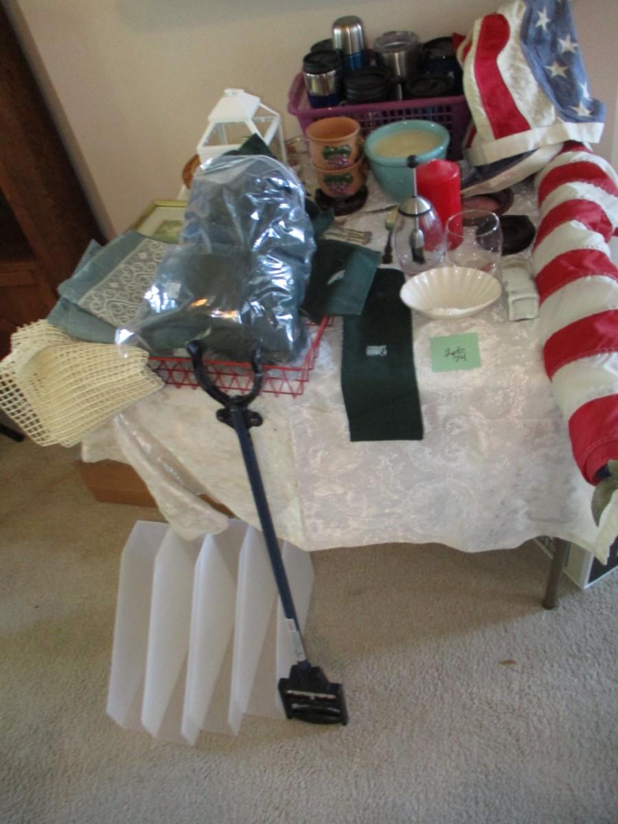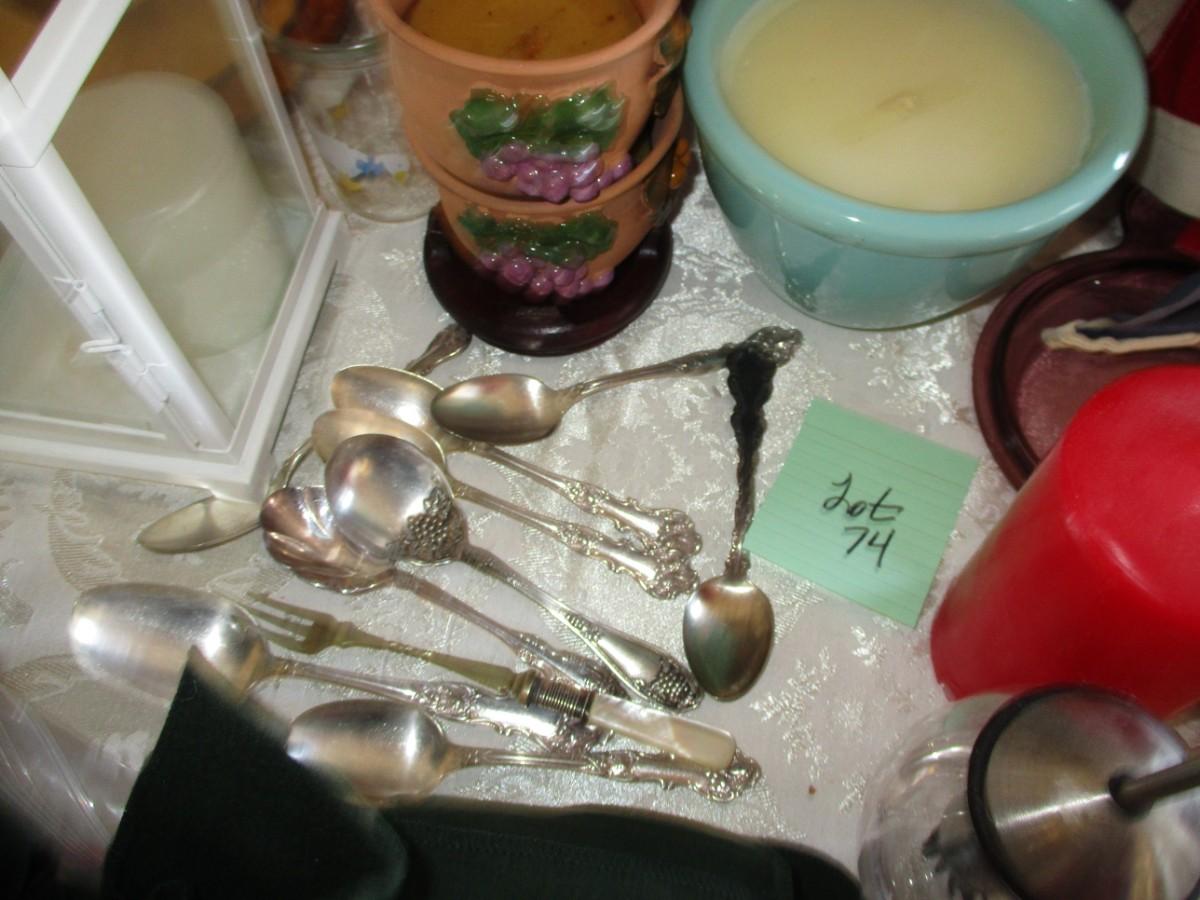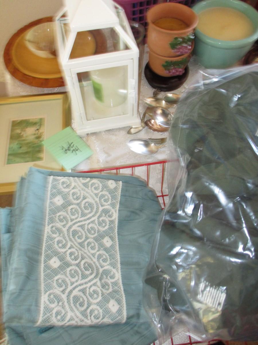 Flatware (1 sterling spoon), Flag, Shower curtain, Candles,