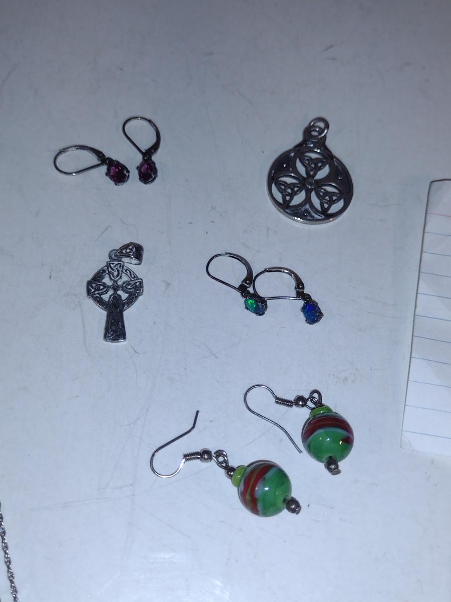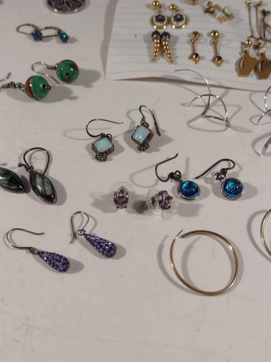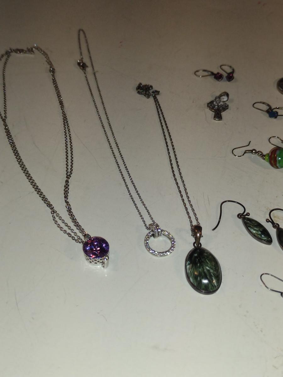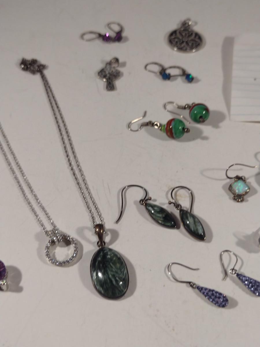 Assorted Jewelry- Earrings, Pendants, Necklaces (#11). Some pieces are sterling silver.