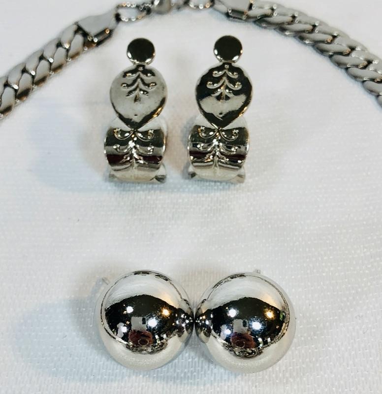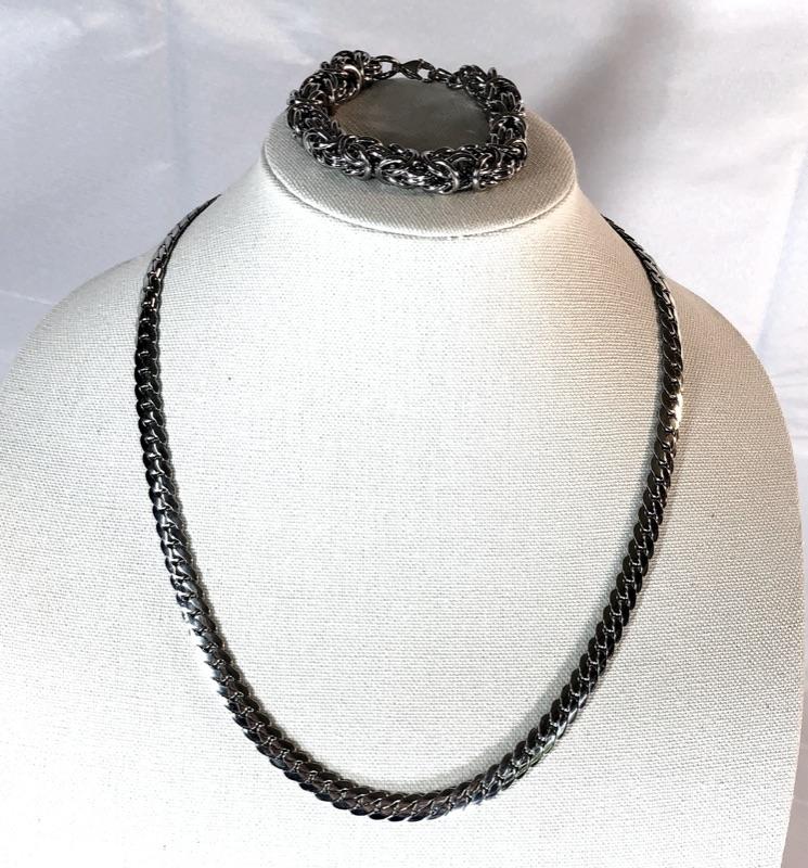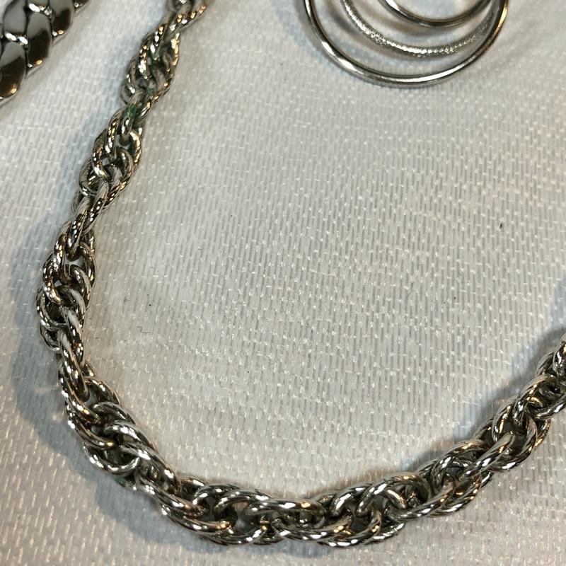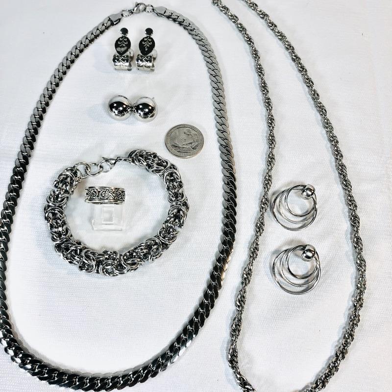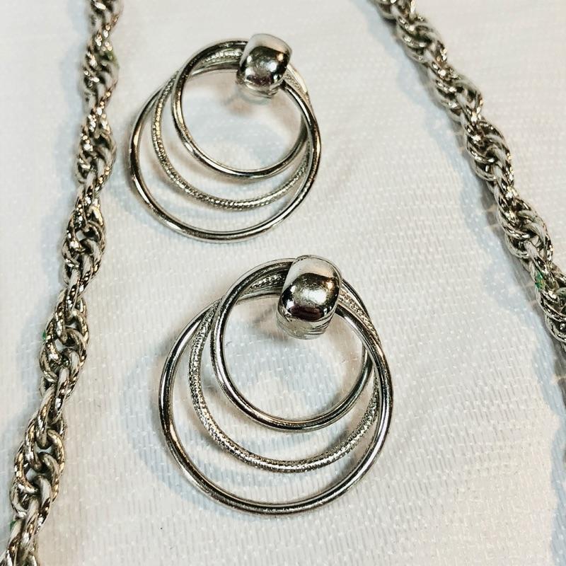 Ring, earrings and 24" twisted chain necklace are all unmarked