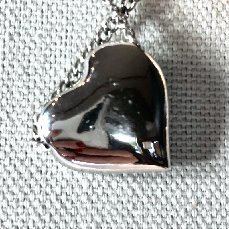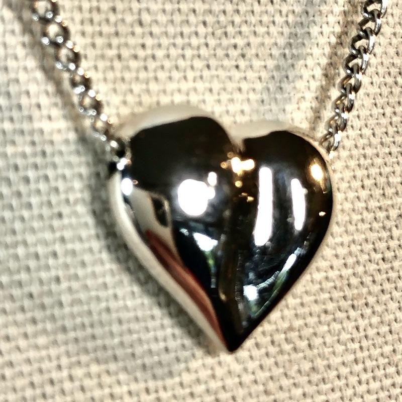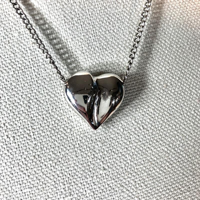 Fixed heart on silver tone chain measure 18" end to end. AVON