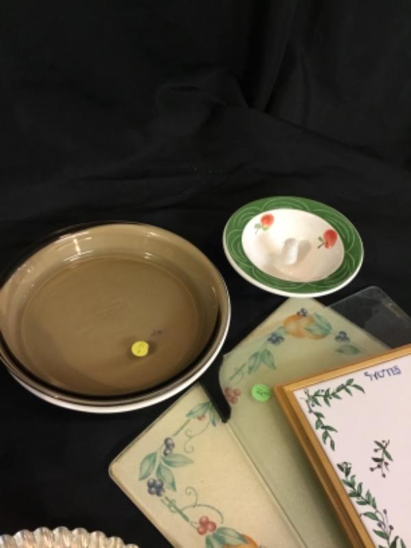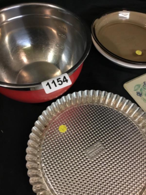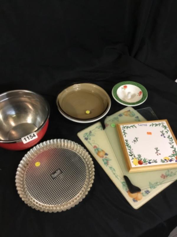 Assorted kitchen bowls, pie  plates, cutting boards Lot 1154