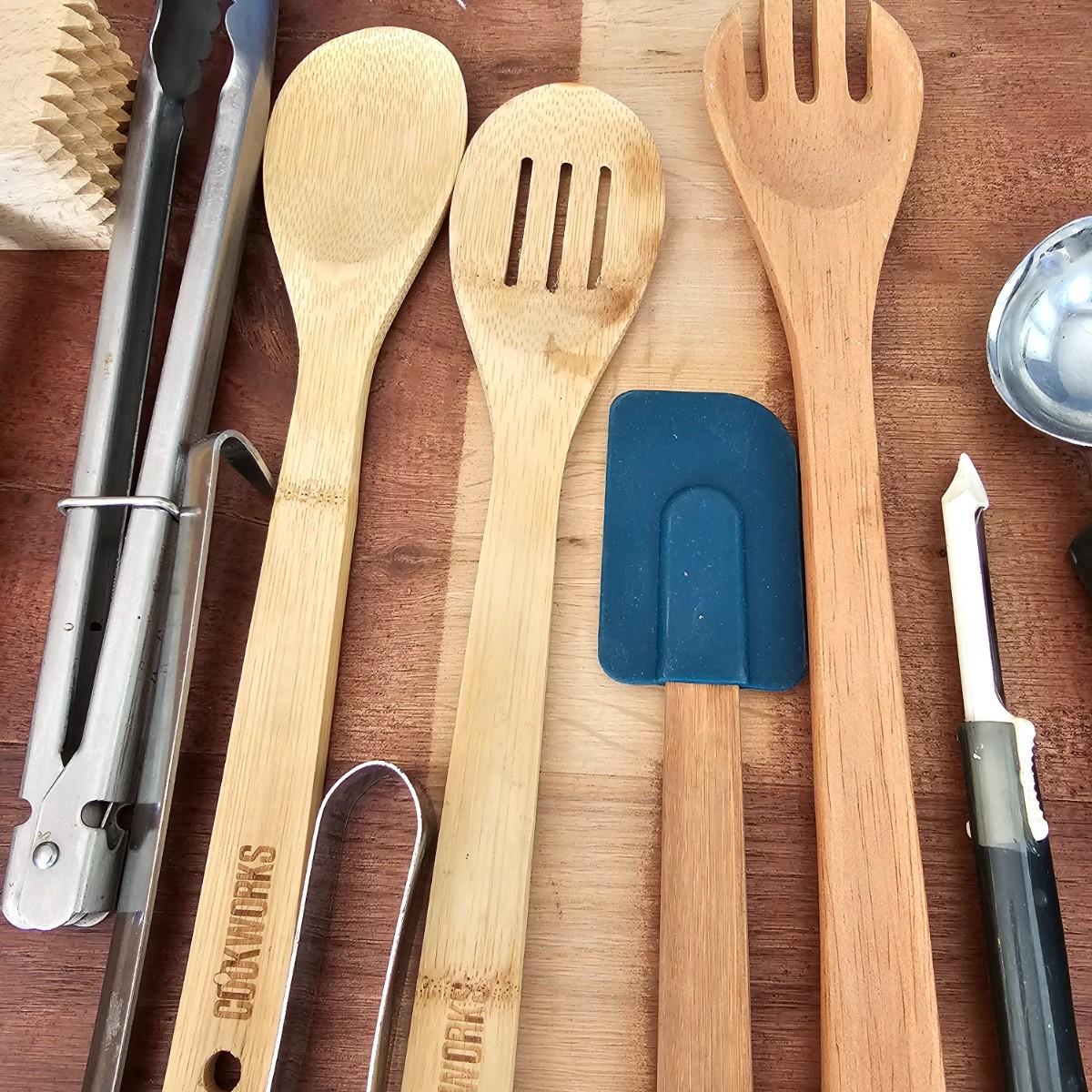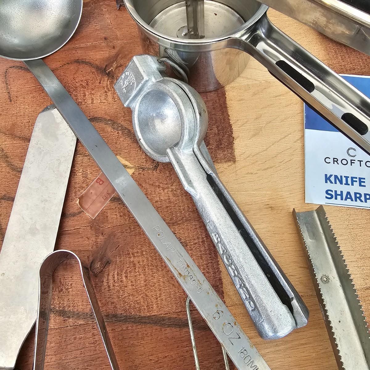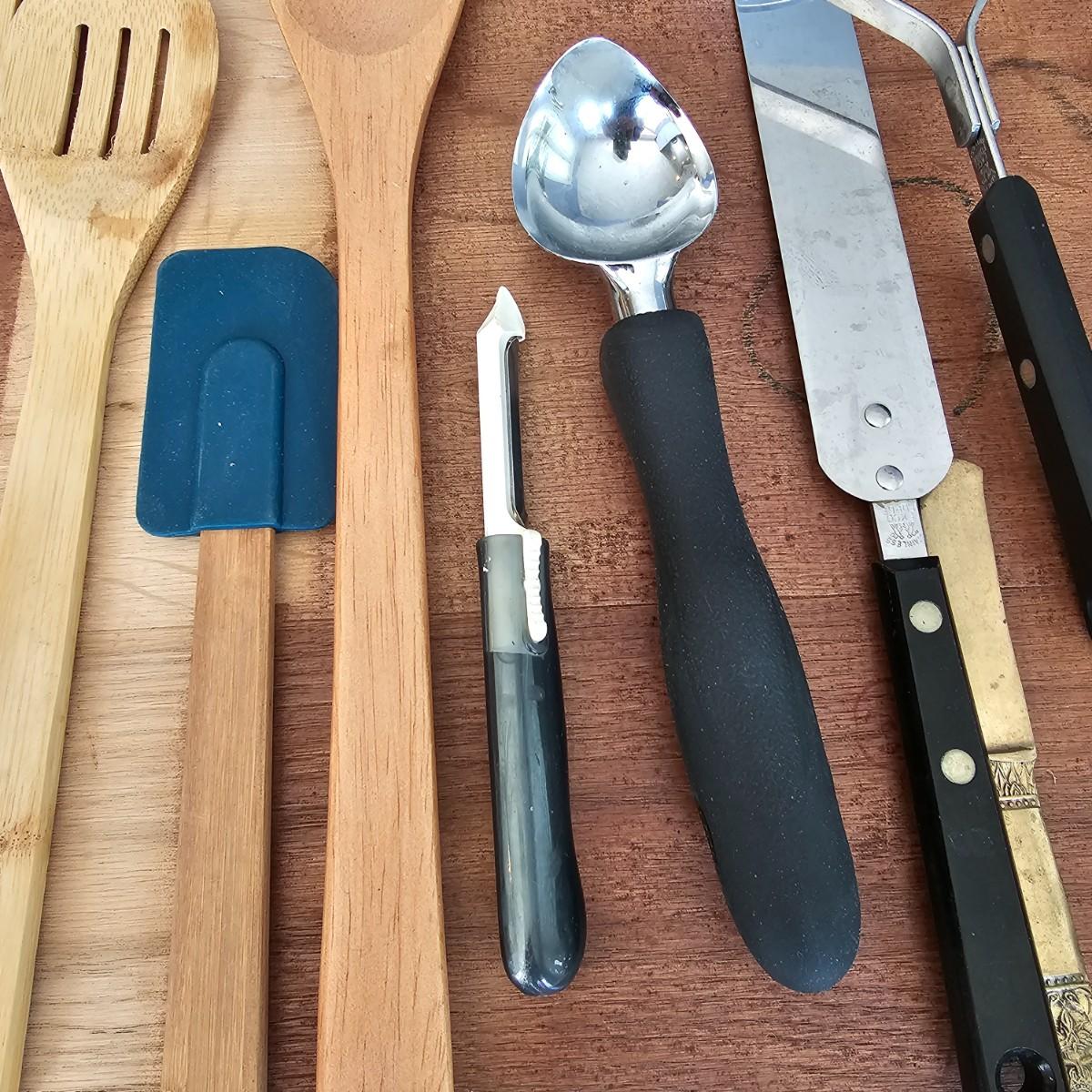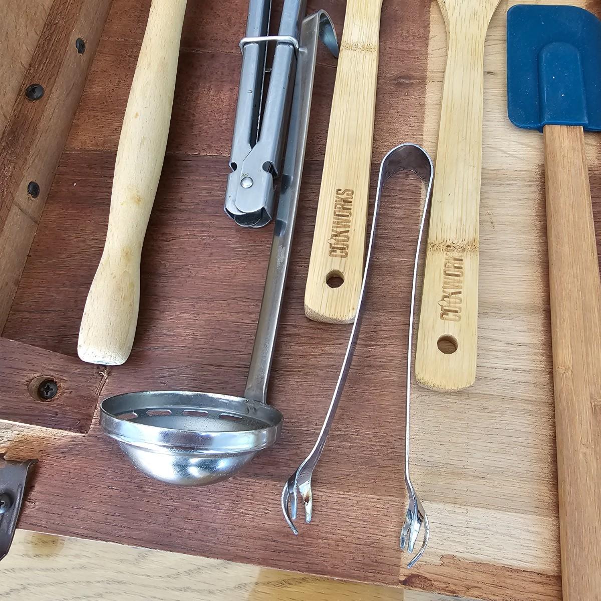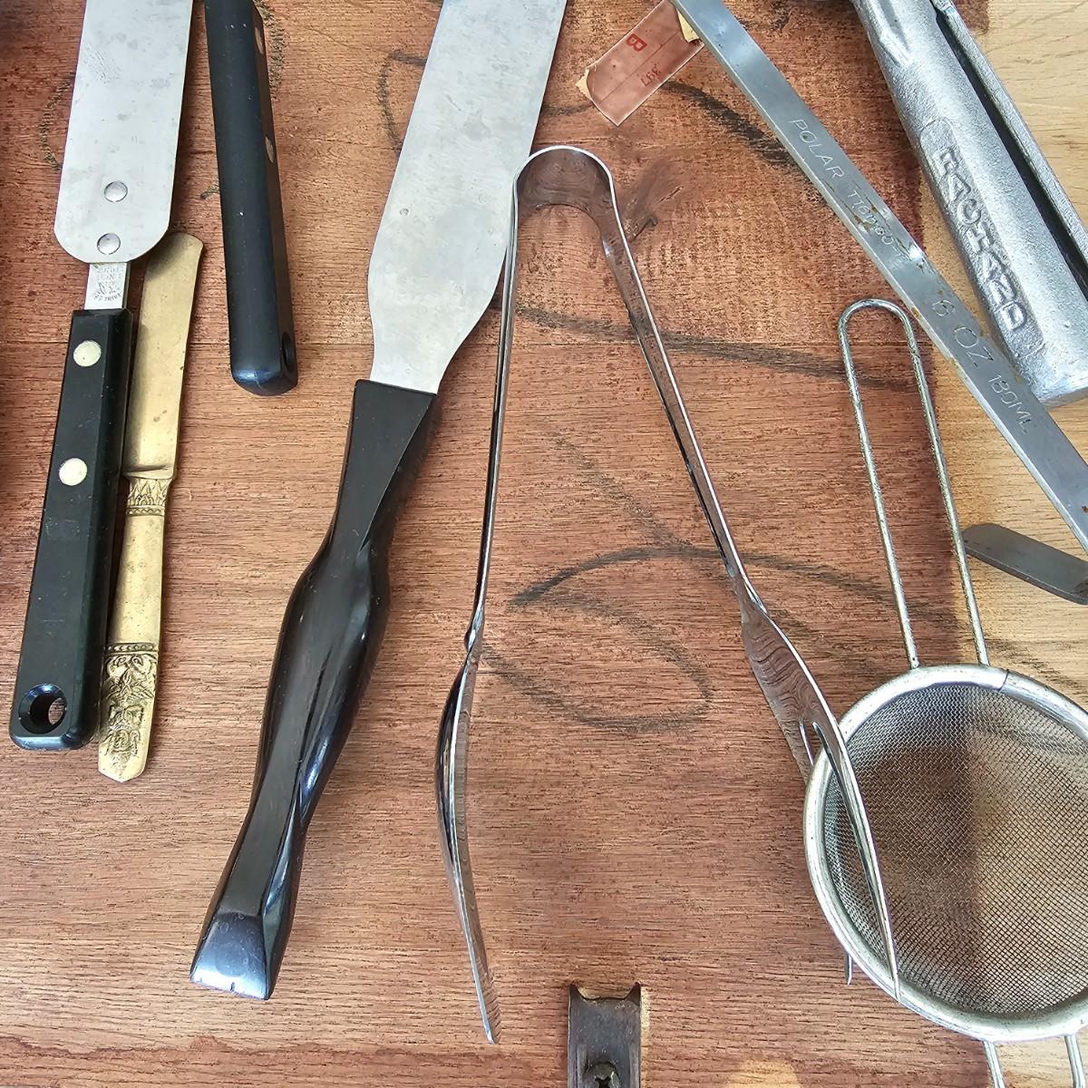 A variety of cooking utensils. Spoons, ladles, tongs, strainers, etc. Longest items are 14". See photos for details. Shipping available.