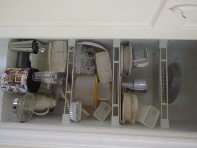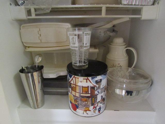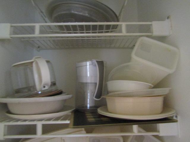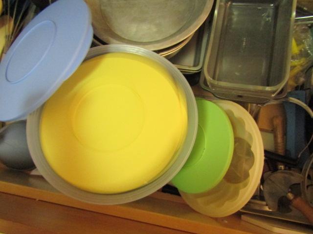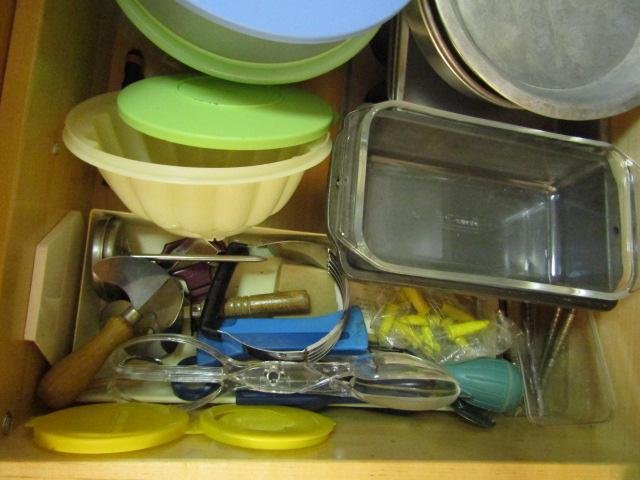 Assorted Kitchen Utensils, Bake Ware, and Plastic Storage Containers (Some Tupperware)