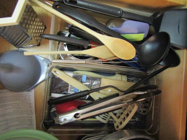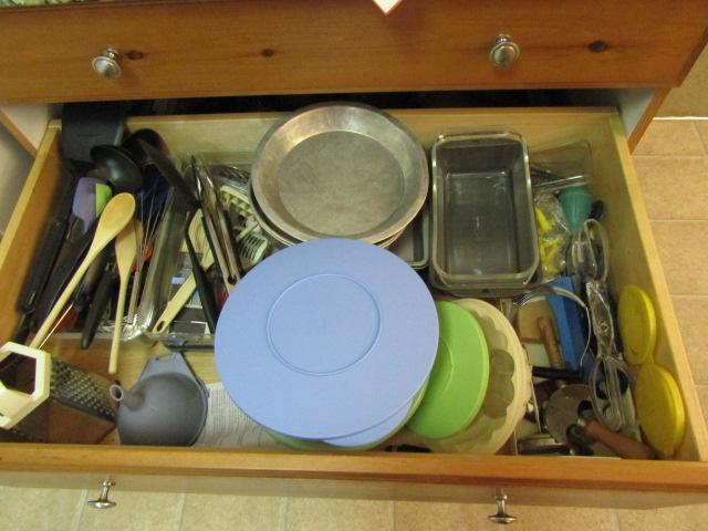 Assorted Kitchen Utensils, Bake Ware, and Plastic Storage Containers