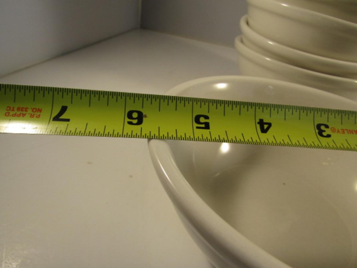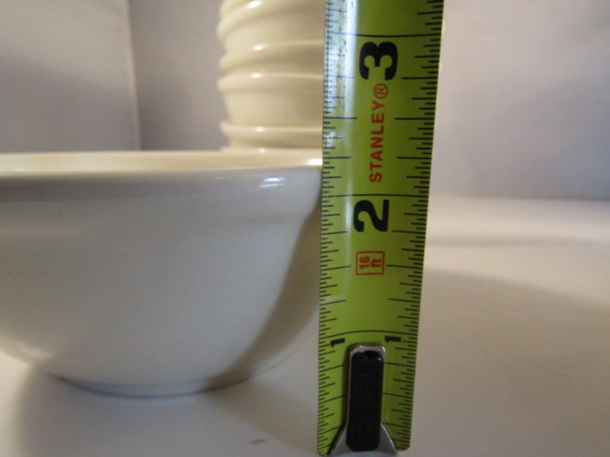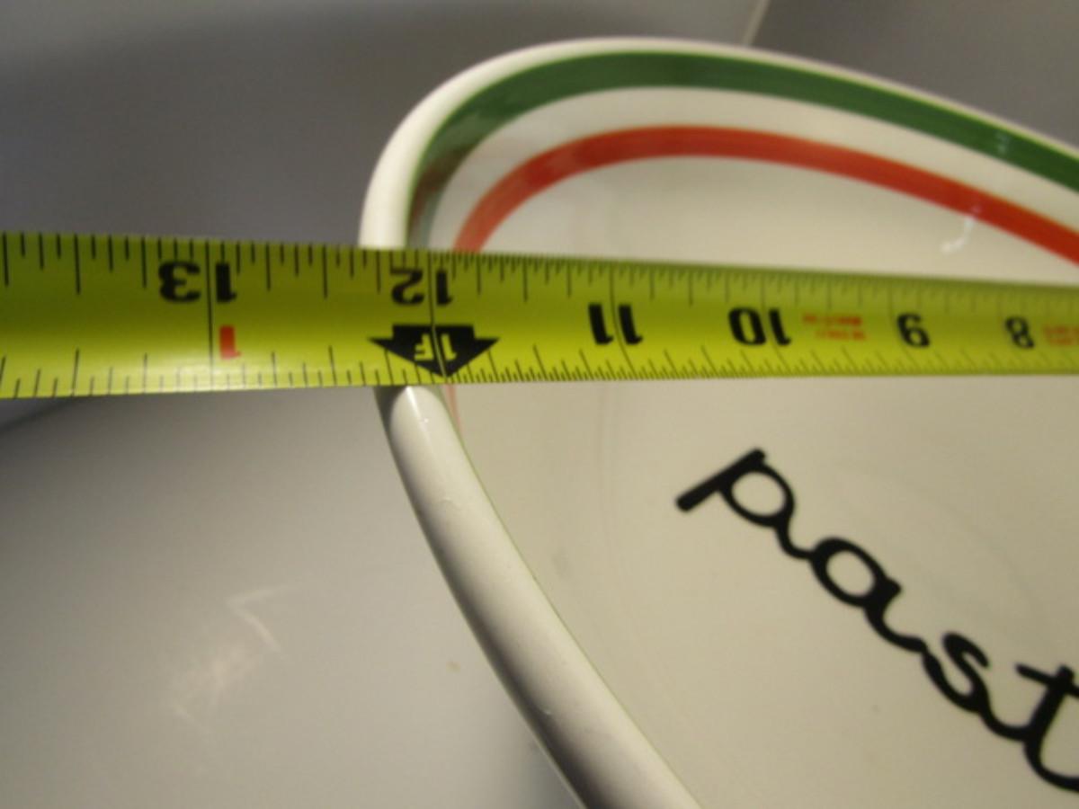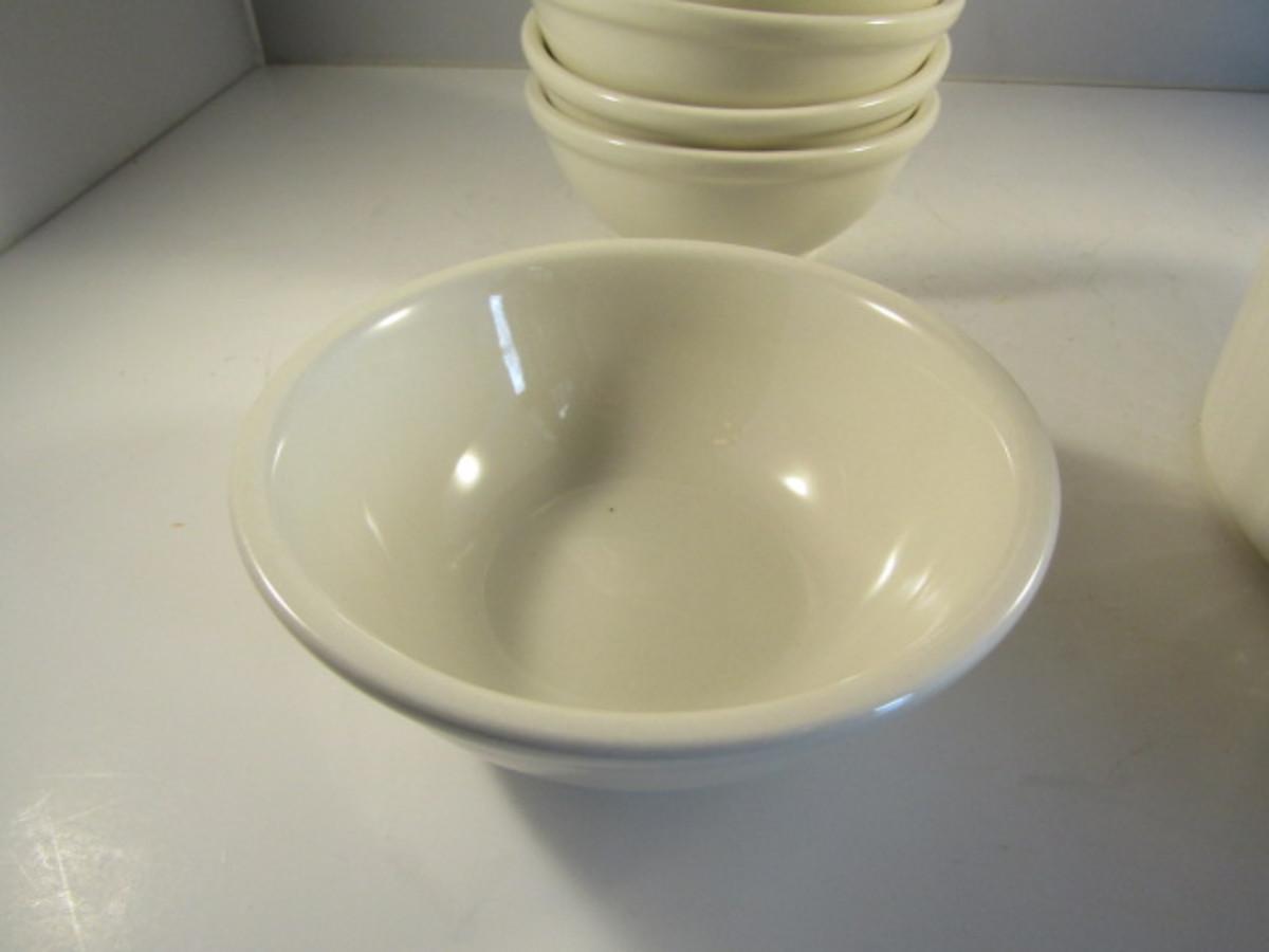 Assorted Kitchen Ware- Large Pasta Bowl, Doranne Baking Dish, Assorted Porcelain Bowls. Items are in used condition and may have occasional chip or crack.