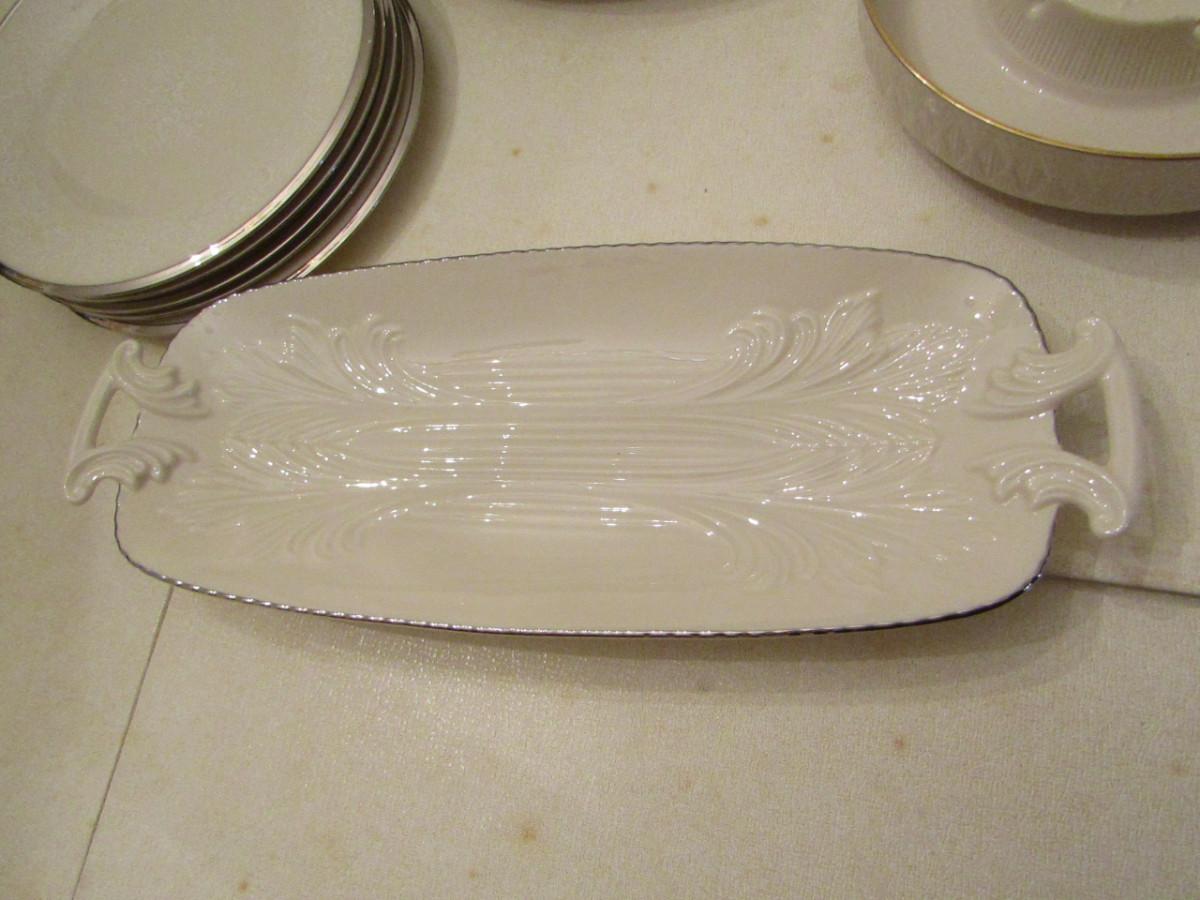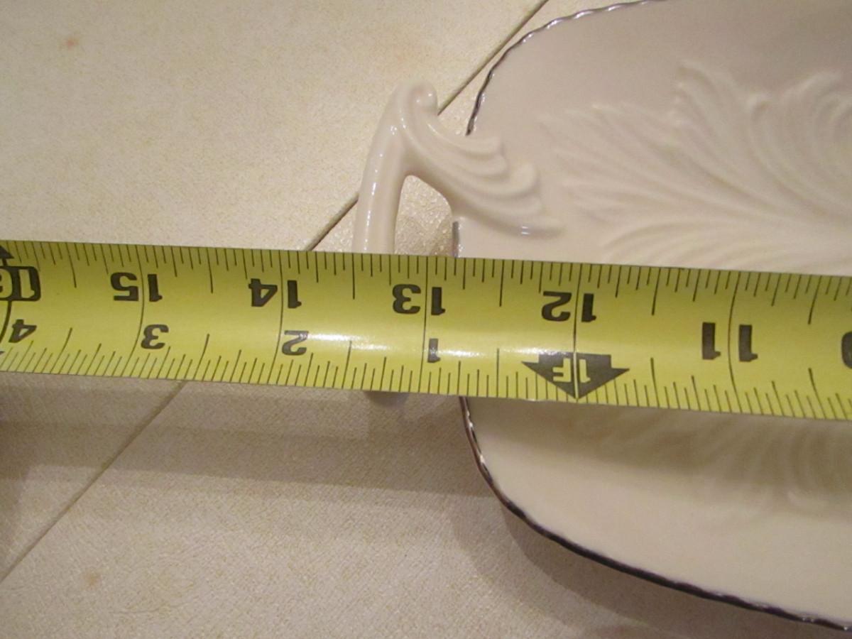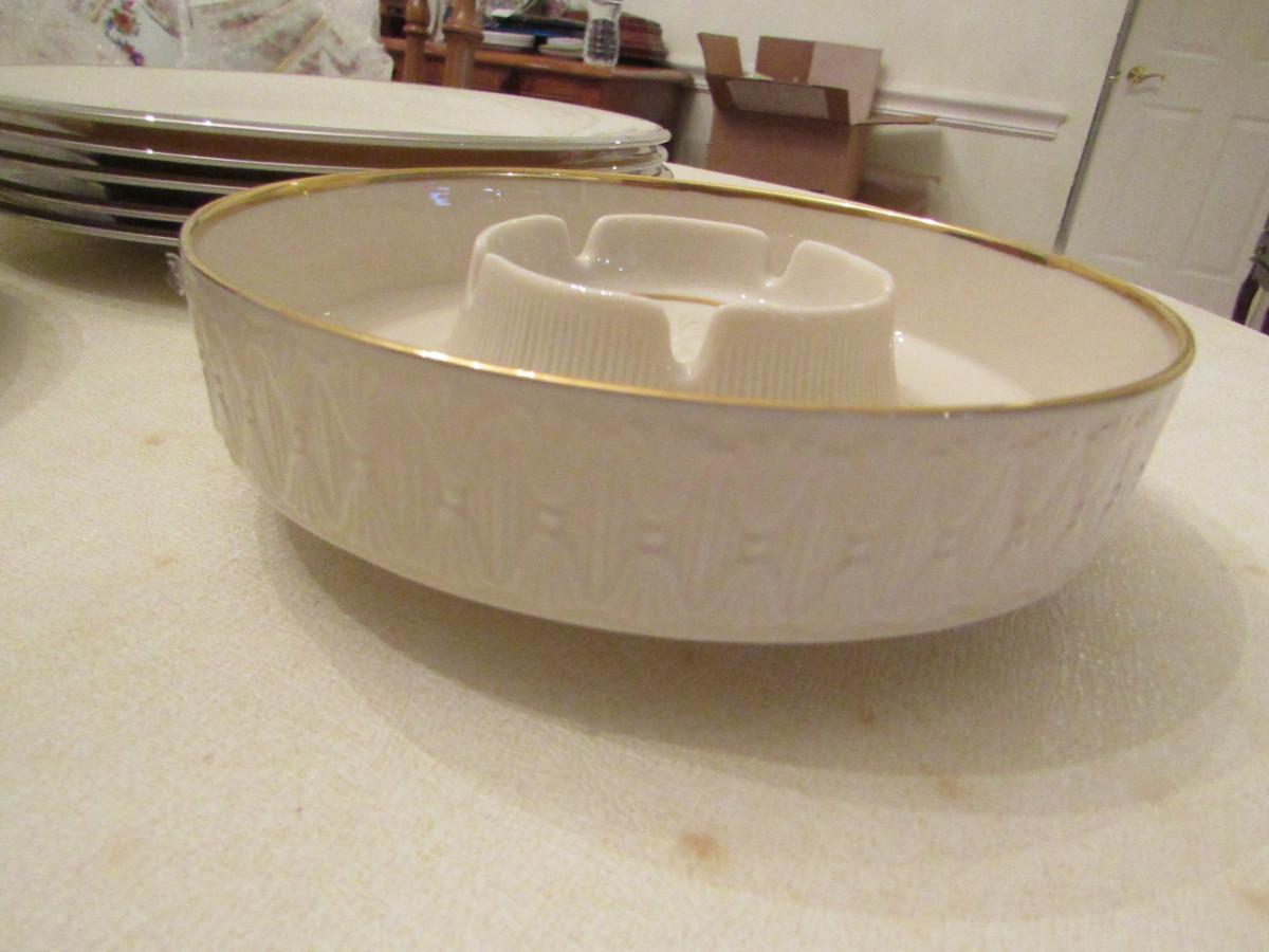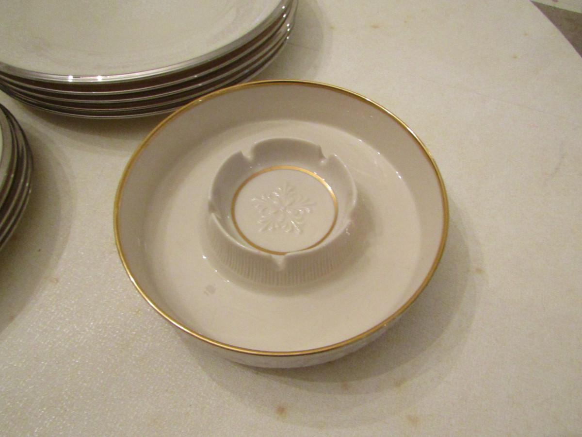Assorted Lenox (USA) Dishware- Approx 12 Pieces. Lenox Moonspun pattern plates: 5 each of 8" and 10 1/2". One ashtray (7"). One oblong serving tray with handles (13 1/2" x 5 1/2").