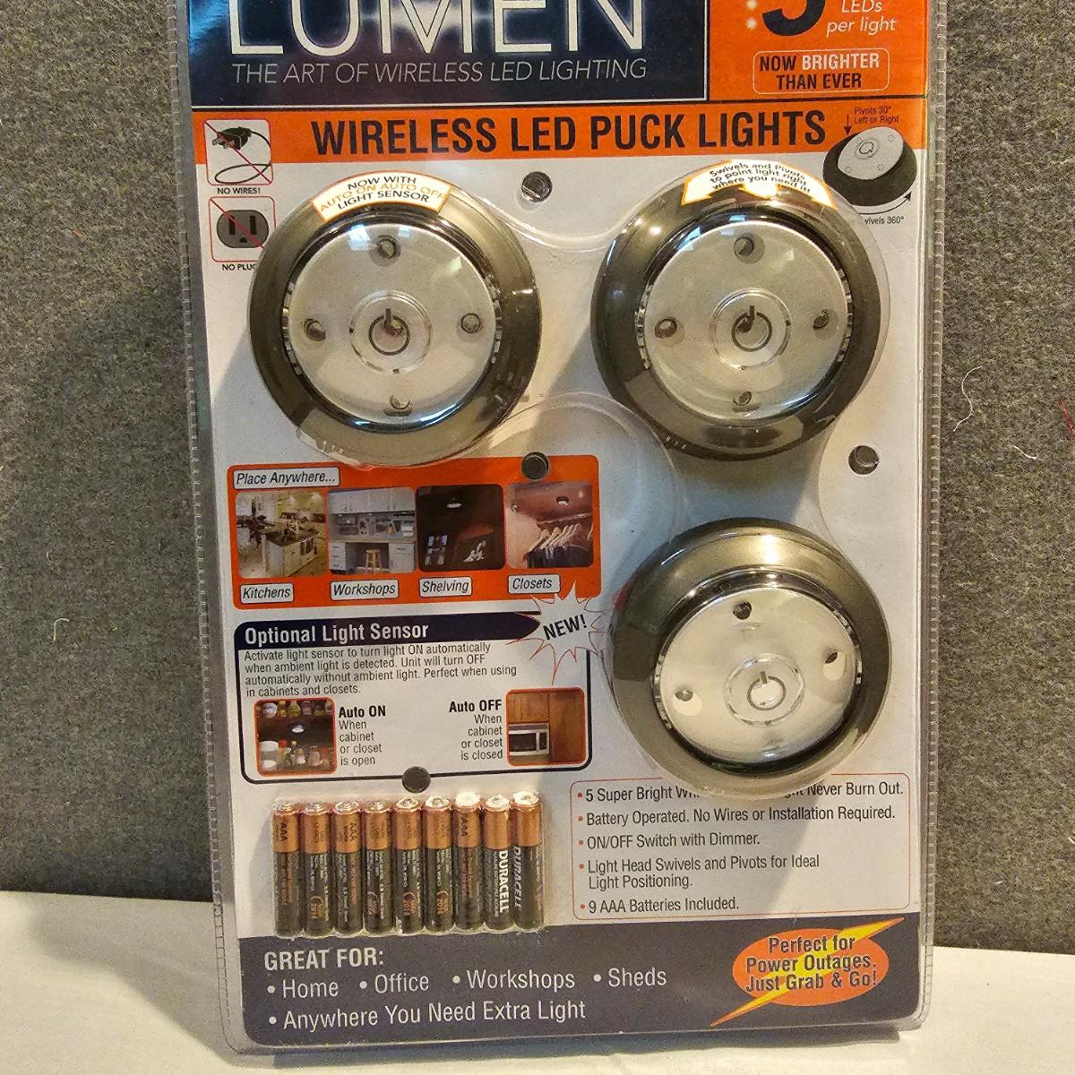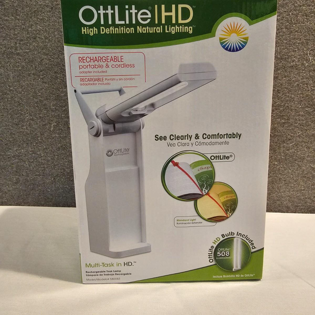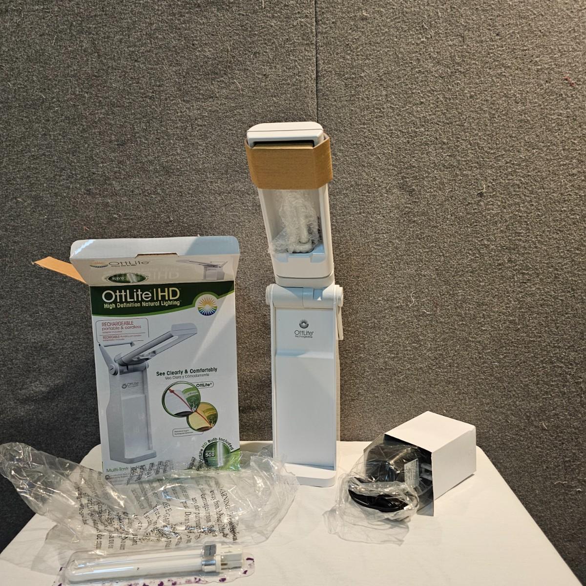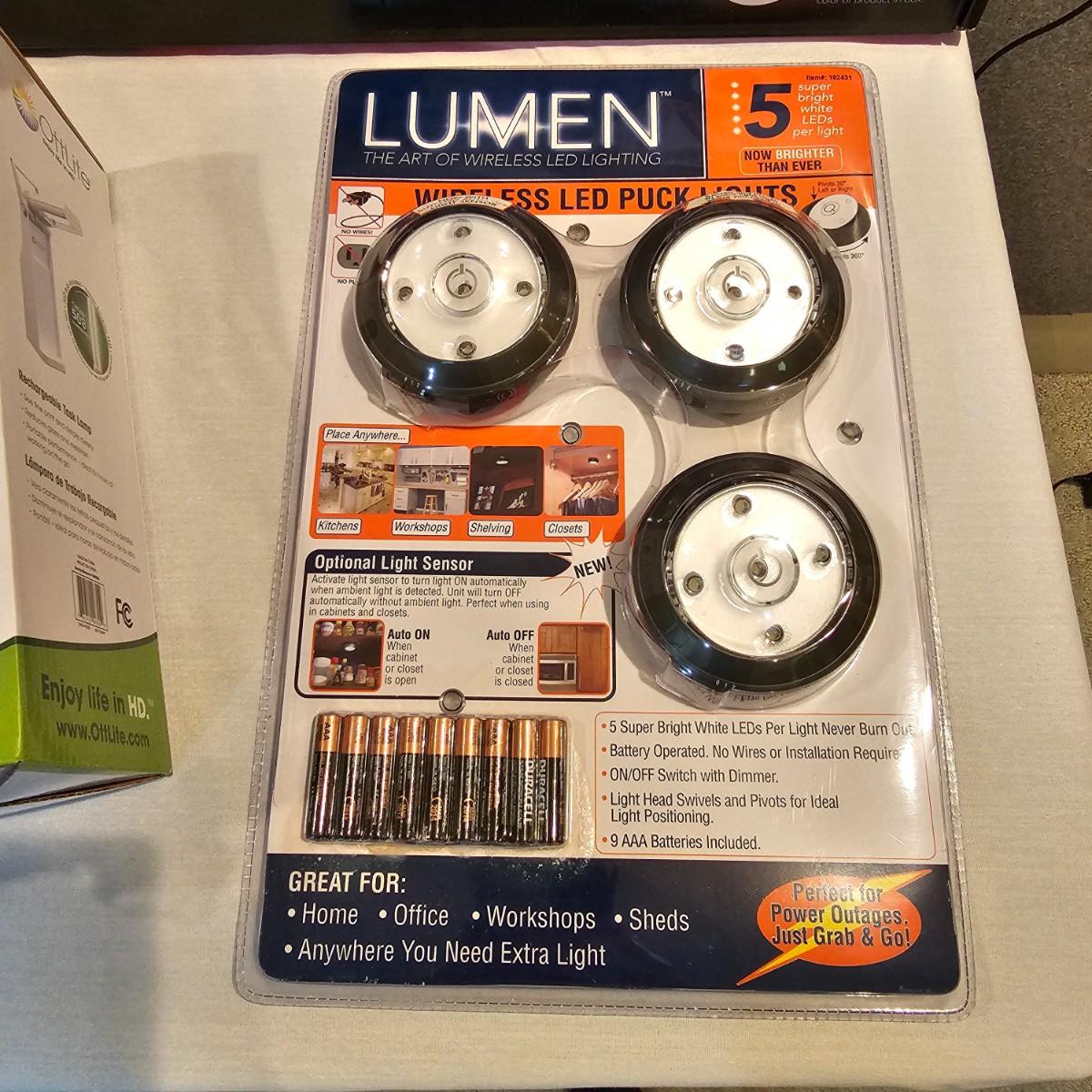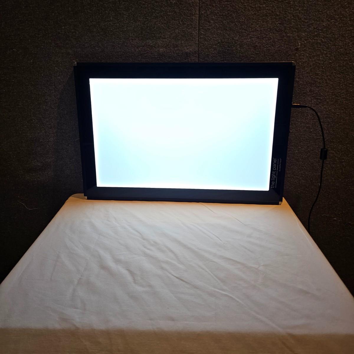 Three different styles of lighting for crafts or other. One Light Panel illuminated piece for tracing, drawing, embossing, quilting, etc. Unit is 21" x 1" x 14"H, has 11" x 18" work surface. Also included is a portable/rechargeable OttLite with adjustable head and extra bulb. Appears to be NIB. And a package of three LED wireless light pucks, also NIB, with batteries included. Two other items powered on when plugged in. See photos for details. Shipping available.