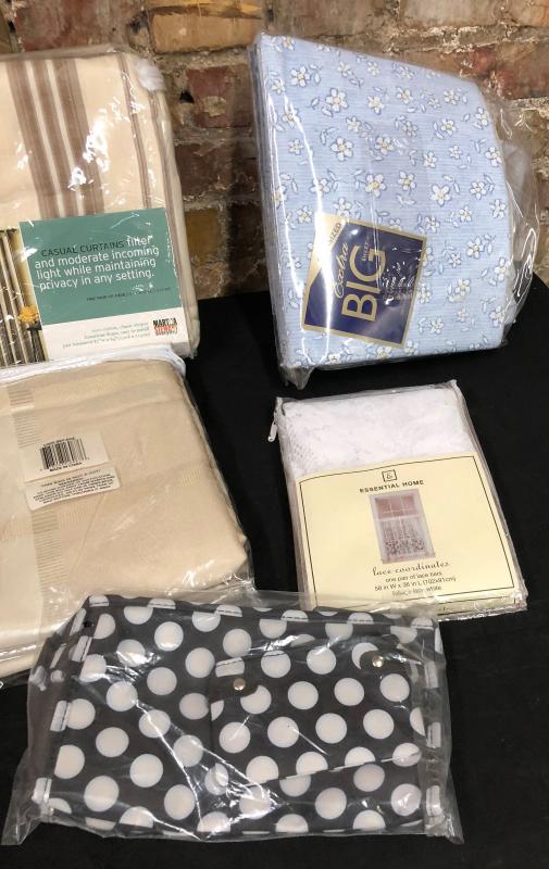 Here is a lot of new linens..Twin sheets..Drapery...Table Cloth...