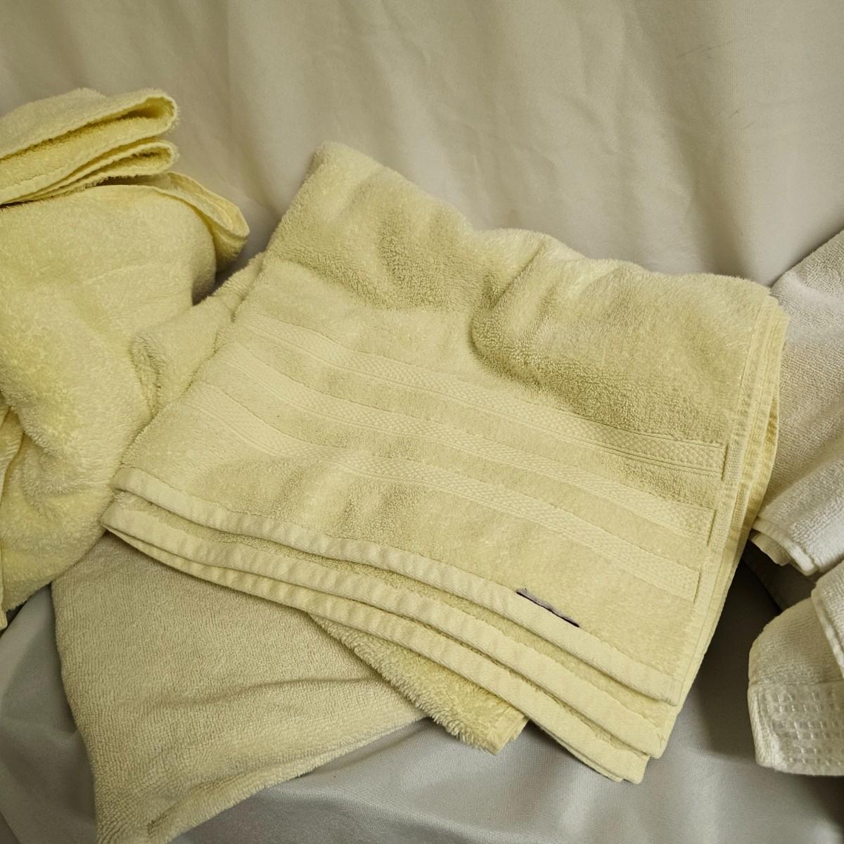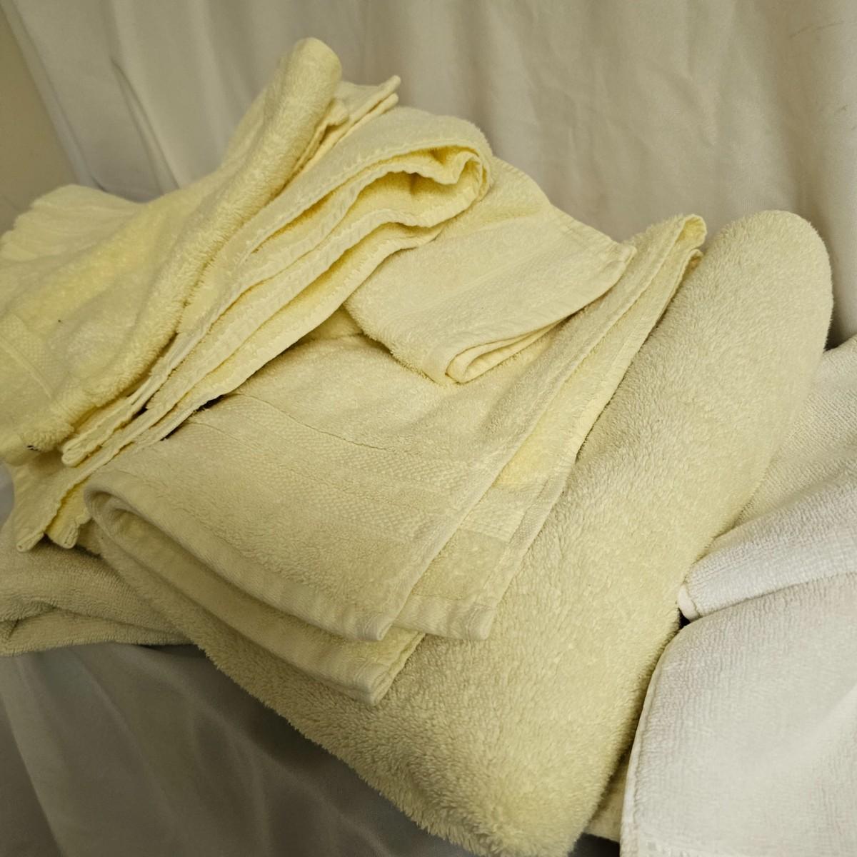 An assortment of bathmats, towels and more. Bath towels, hand towels, washcloths. Items by Ralph Lauren, Avanti, and others. Large mat measures 21" x 34". See photos for details. Shipping available.