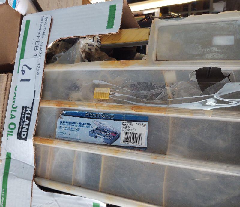 lot 61 - Assorted lot - vintage case of O rings, water disposal, hardware, etc.