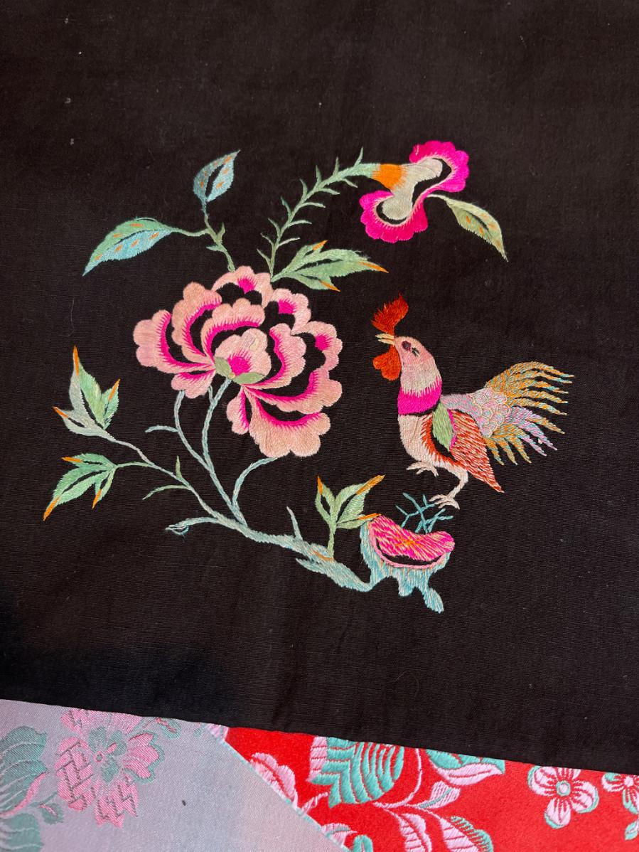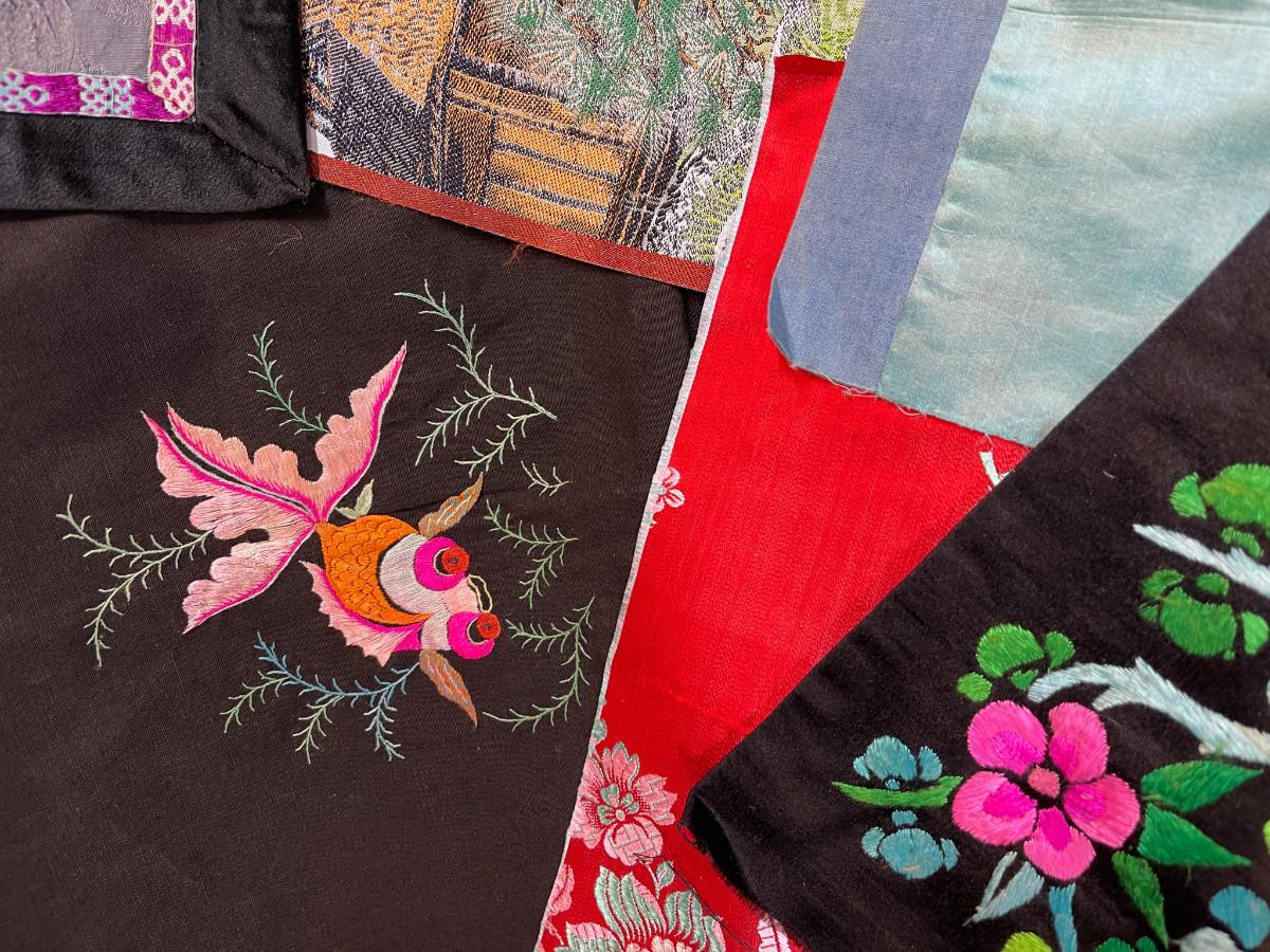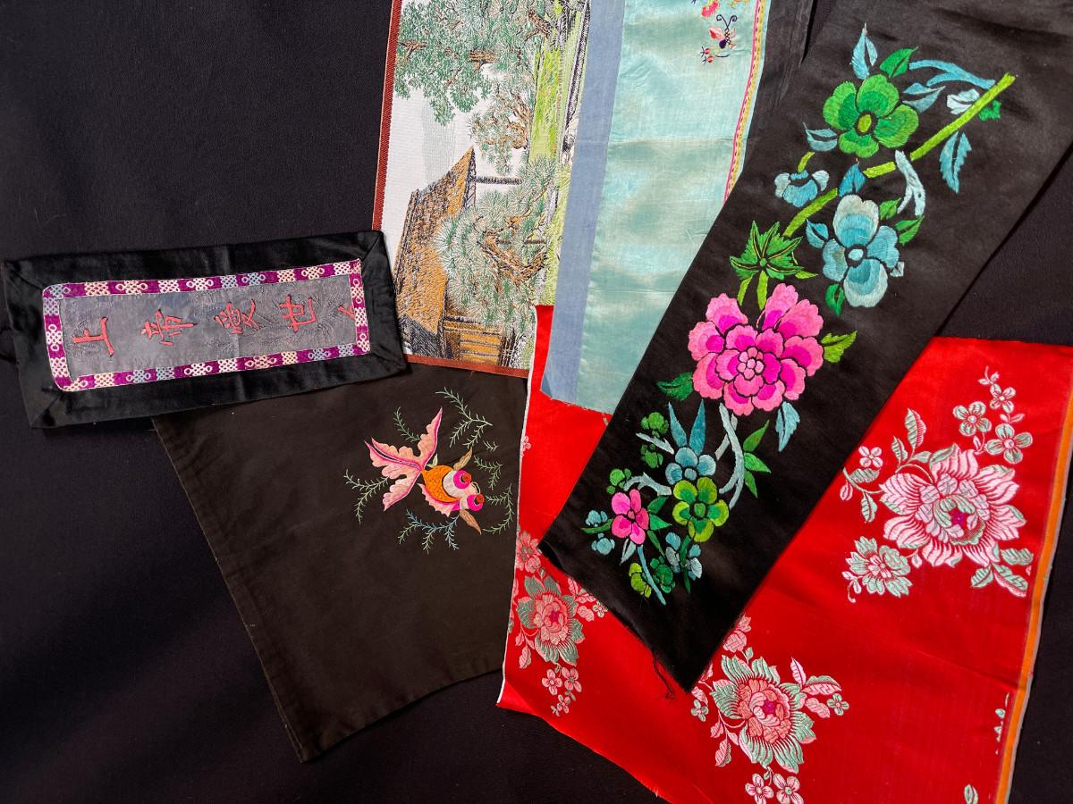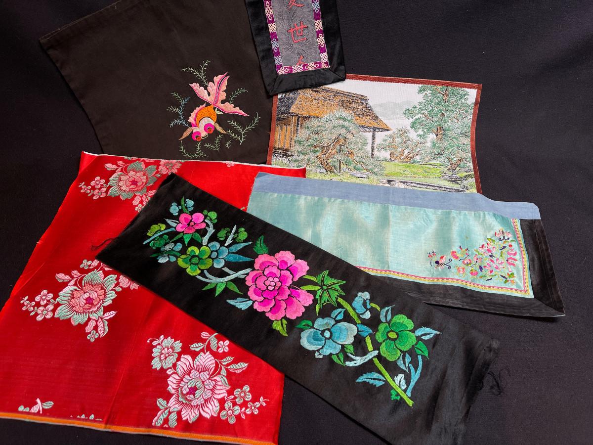 Assorted lot of 6 Vintage Embroidered Chinese Silks