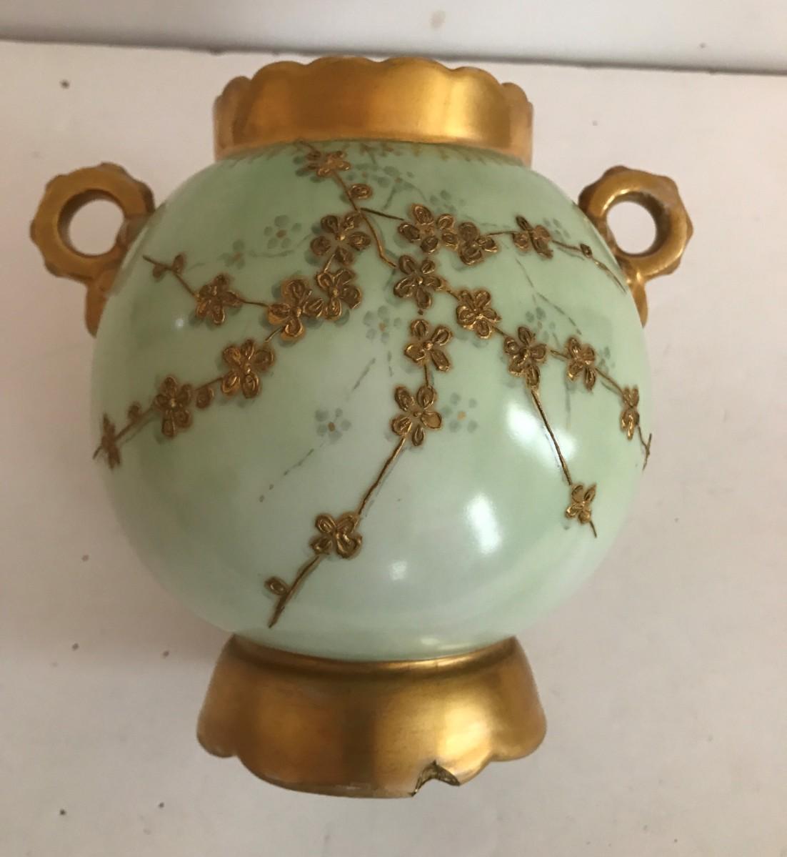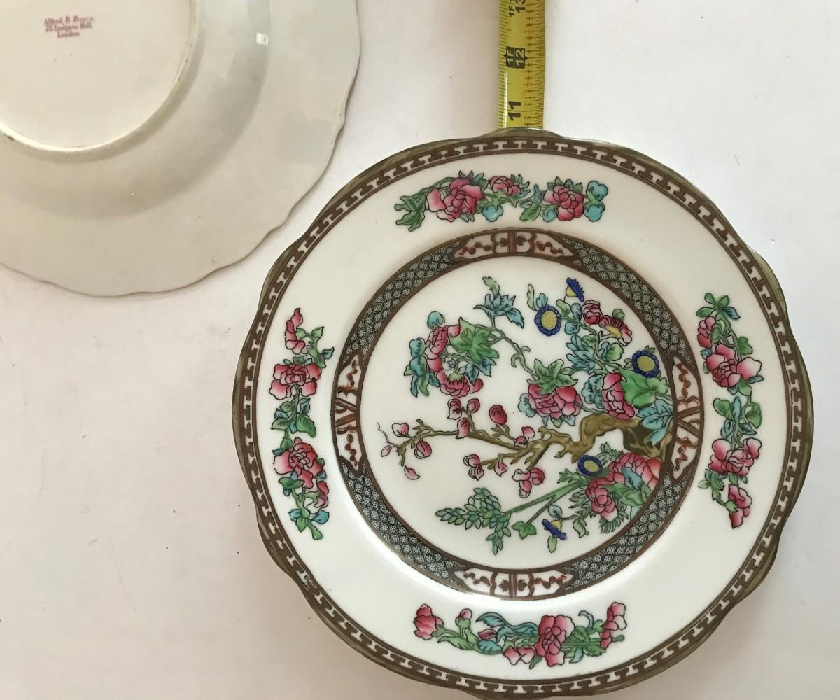 Please see photos. Plates are perfect . Vase has a factory chip -see photo of base.