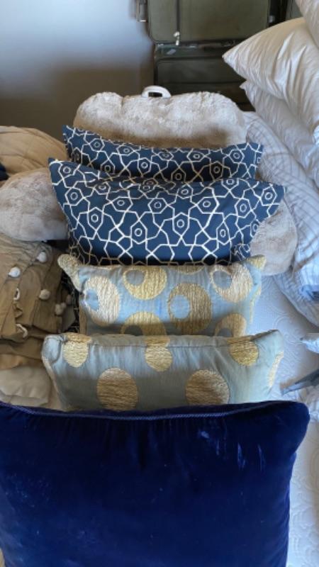 Like new decorative pillows. Plush back pillow, velvet, and cotton.