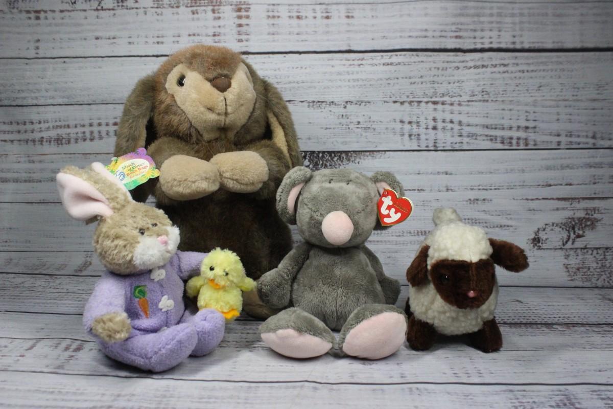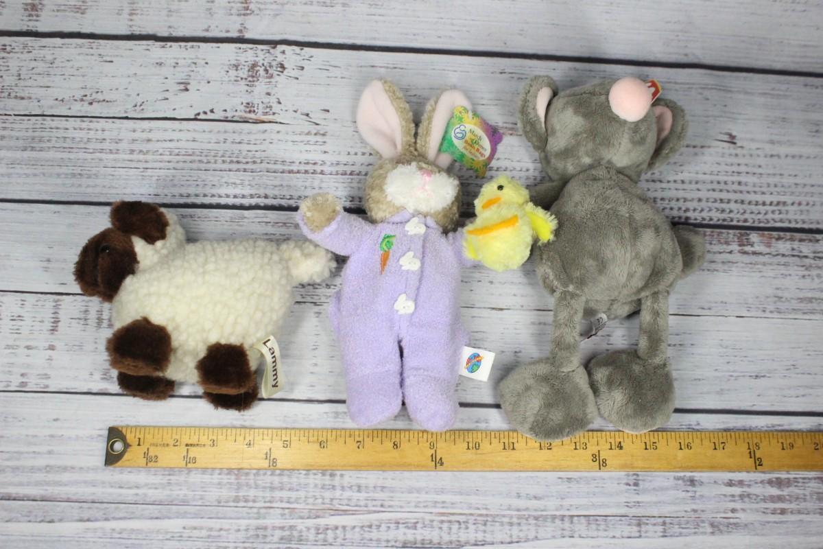 Assorted lot of various sized and shape stuffed animals, there are no rips or tears to any of the plushes. For sizes refer to the images above.