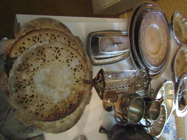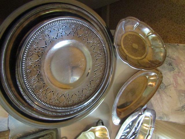 Assorted Metal Serving Pieces- Plates, Bowls, Trays, Pitcher, Etc.