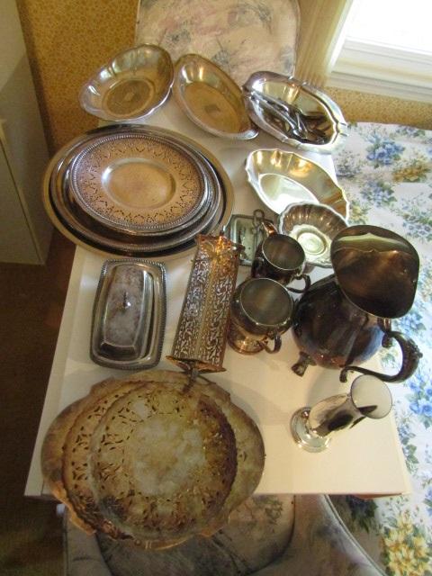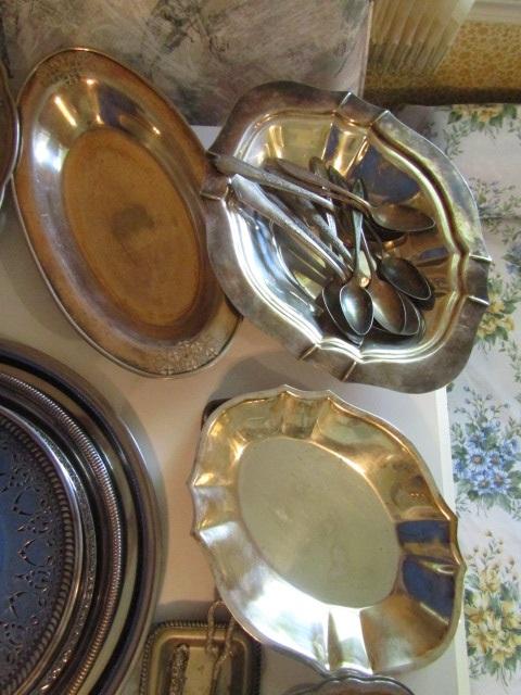 Assorted Metal Serving Pieces- Plates, Bowls, Trays, Pitcher, Etc. Please See All Pictures