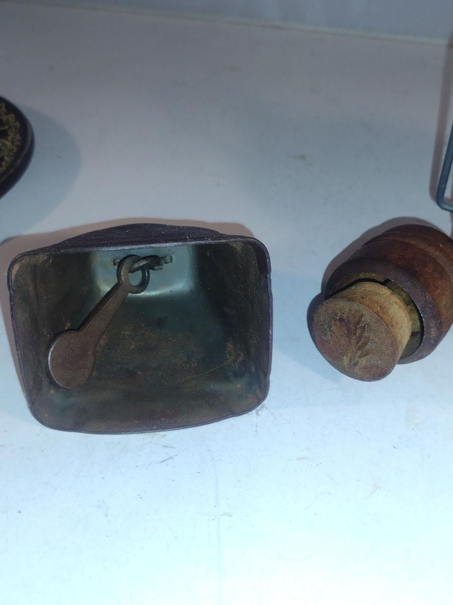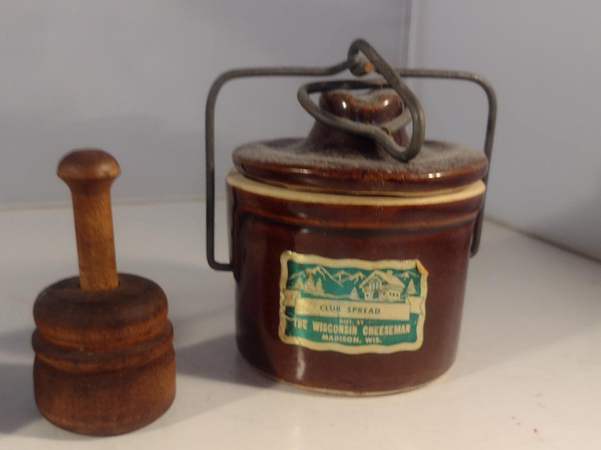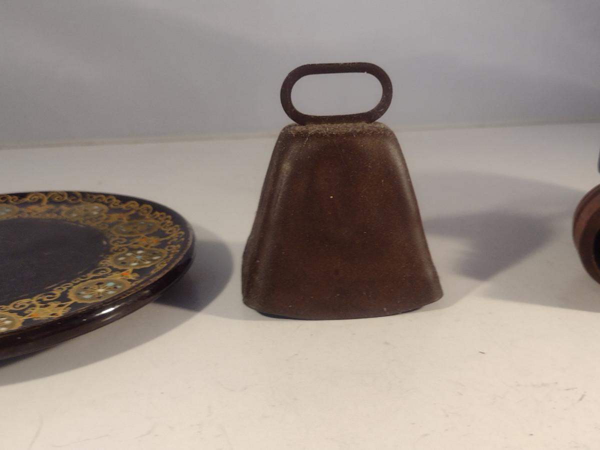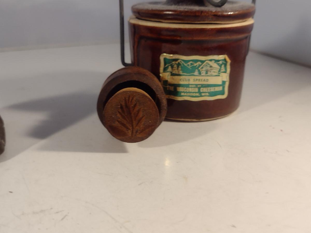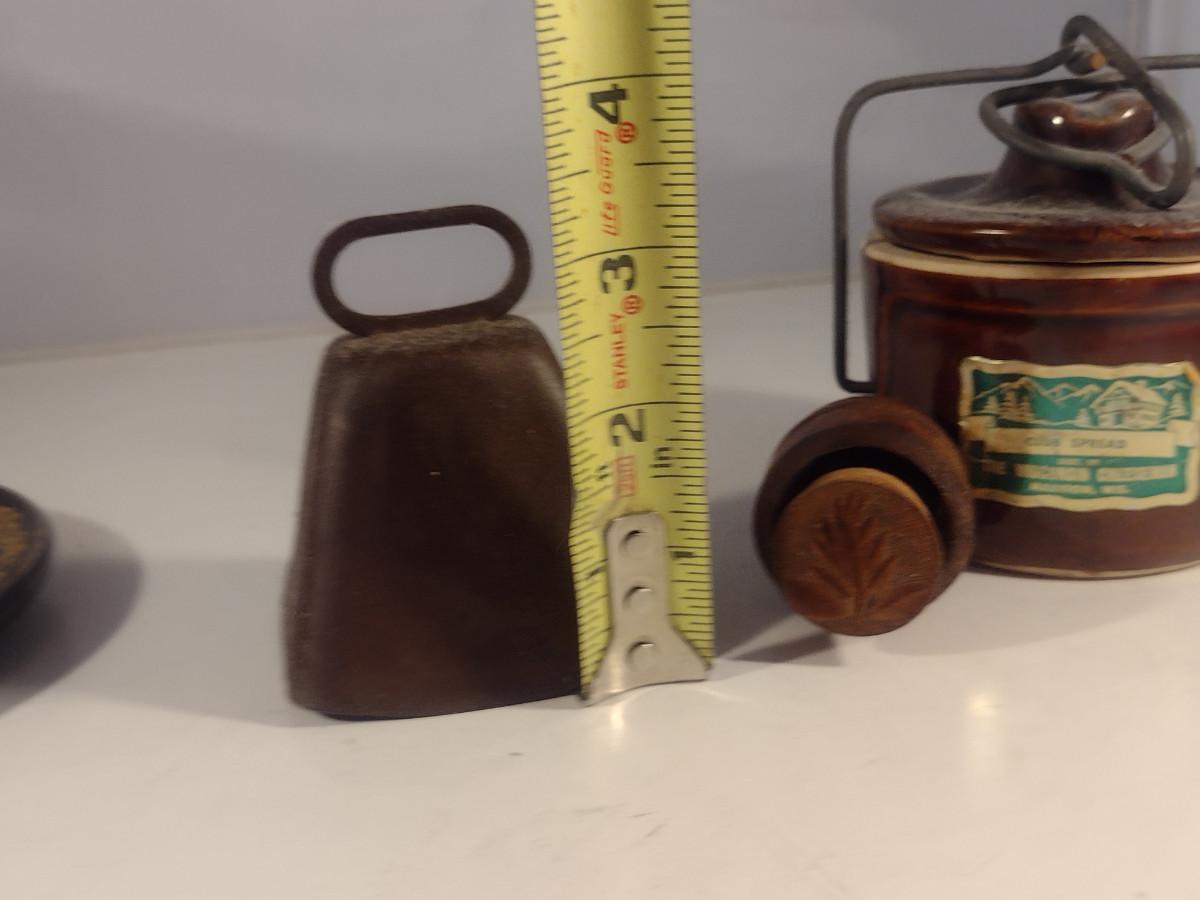 Assorted Milk/Dairy Accessories. Cheese plate, small cow's bell, butter mold, cheese crock.