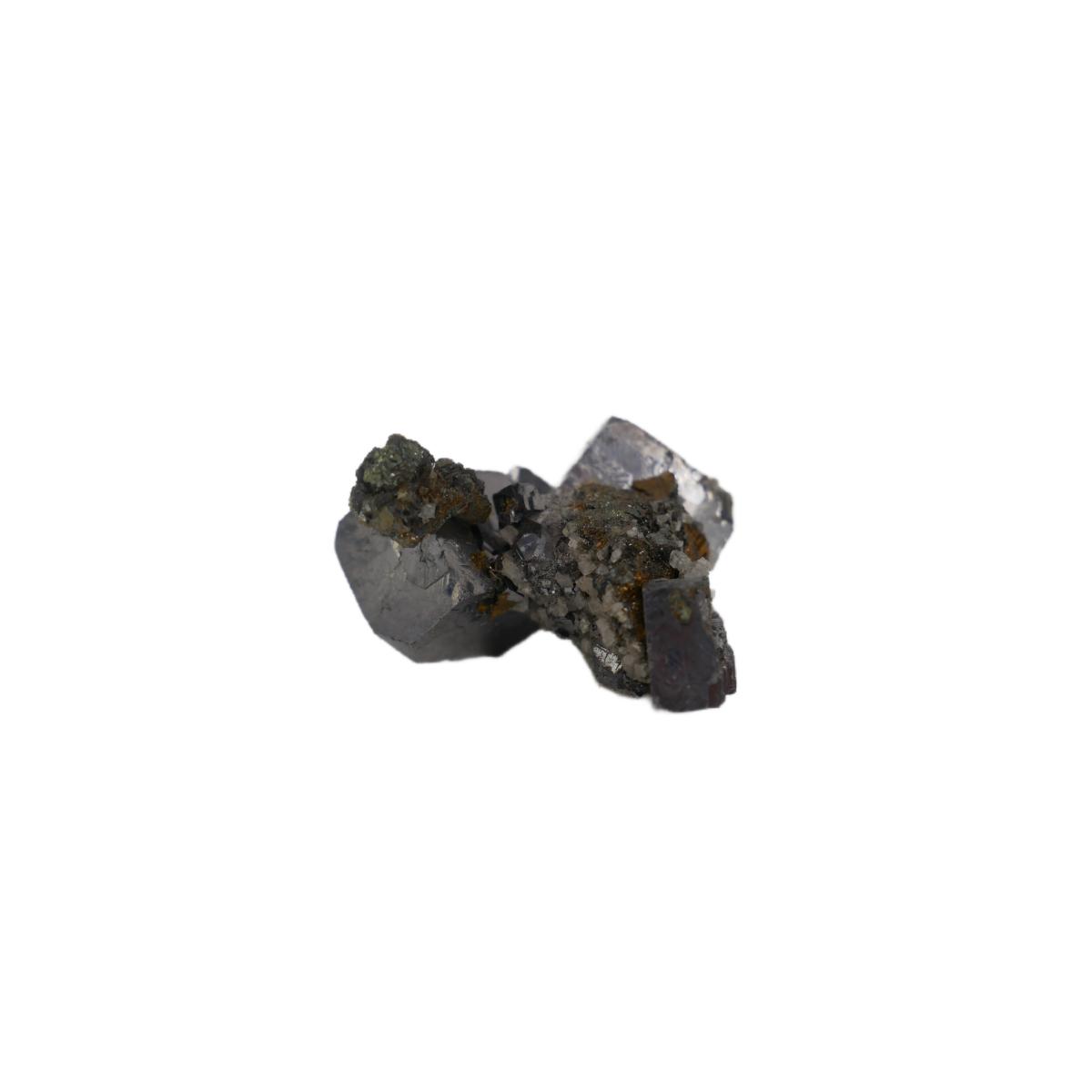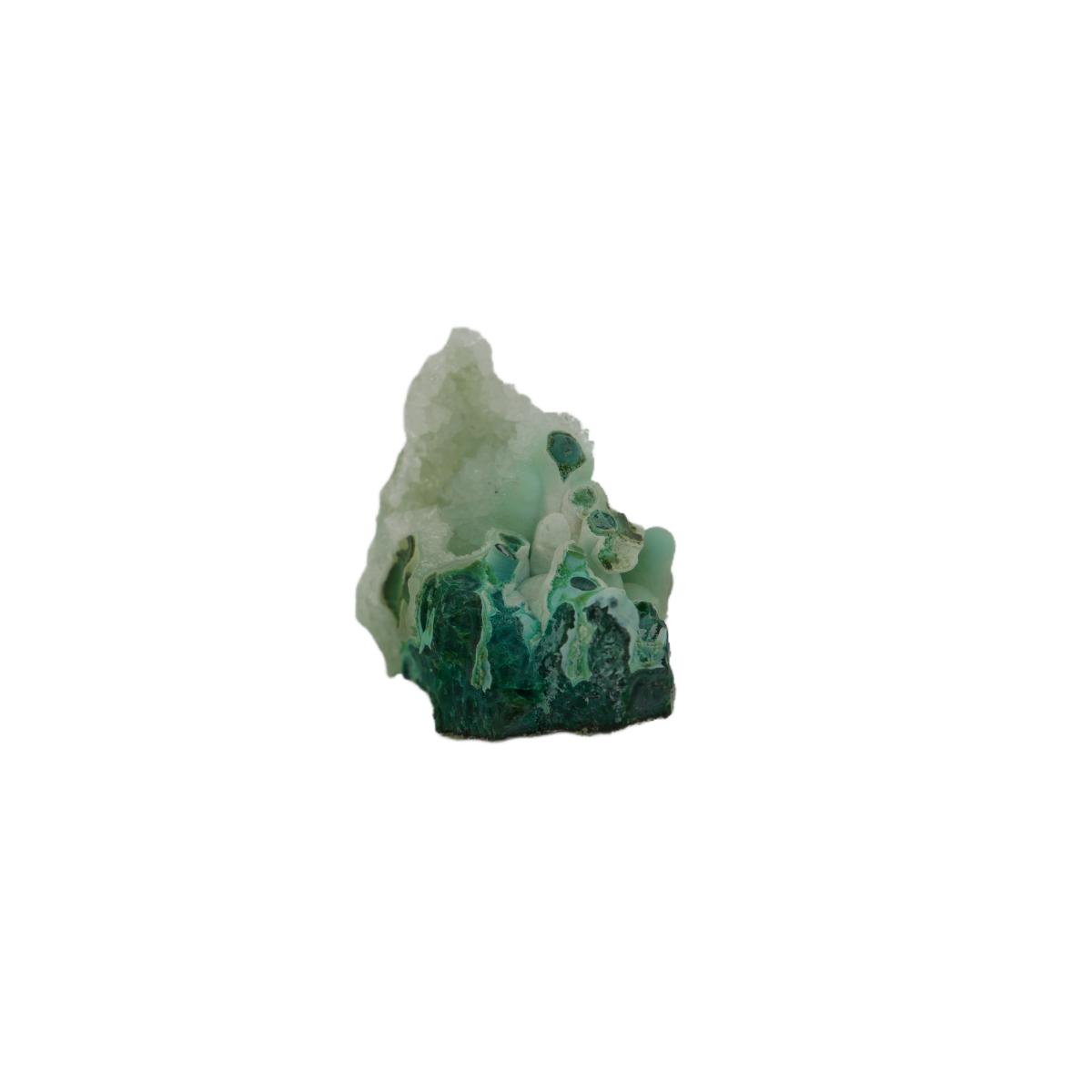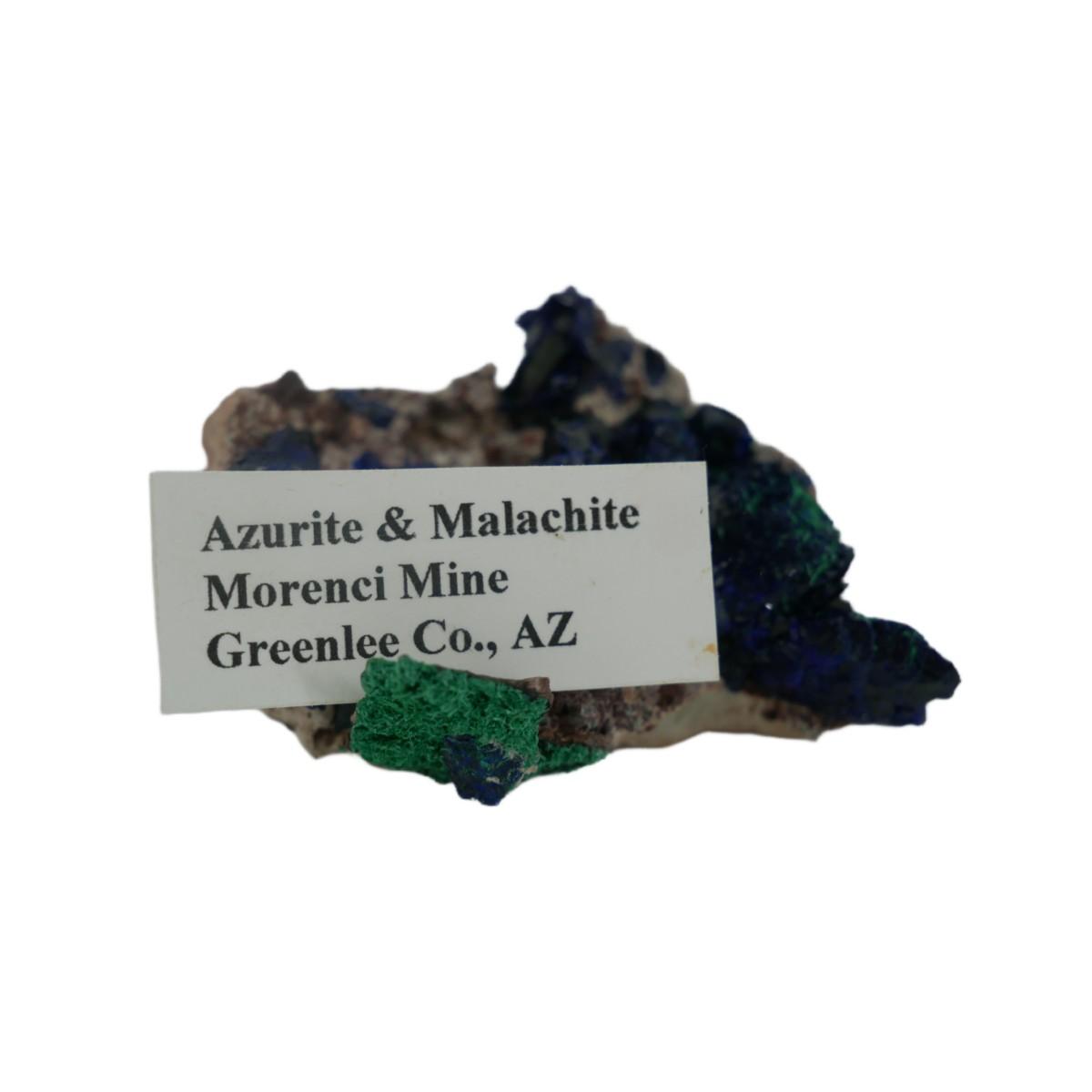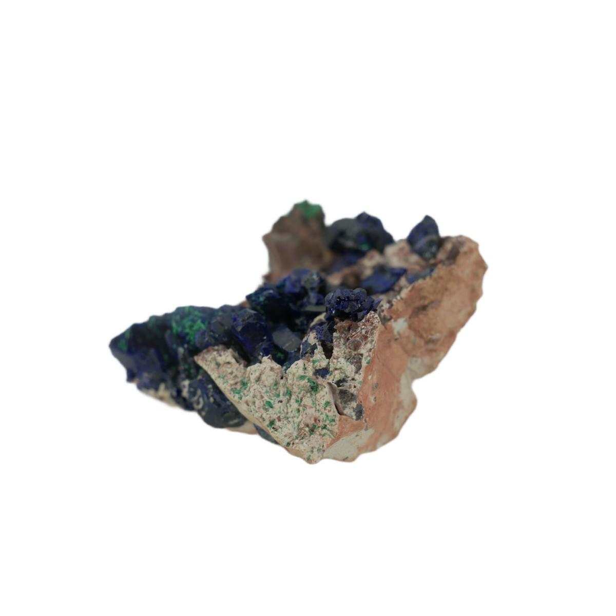 Four all natural assorted mineral clusters. Vibrant dark green base transistioning to white crystal, drusy chrysocolla from ASARCO Ray Mine in Pinal County, Arizona. Measures L 2" x H 1.5" x W 1". Stunning blue and green azurite and malachite specimen from Morenci Mine, Arizona. Numerous azurite crystals with touches of malachite. Measures L 2" x H 2" x W 1". Brilliant metallic pyrite cube cluster. MEasures L 1" X H 1" x W 1". Gorgeous smoky quartz crystal colors. Prominemt crystal formations with rich black and greys. Measures L 3" x H 2" x W 1". All in excellent condition! Stands not included. Lot weighs 5 oz. (R27)