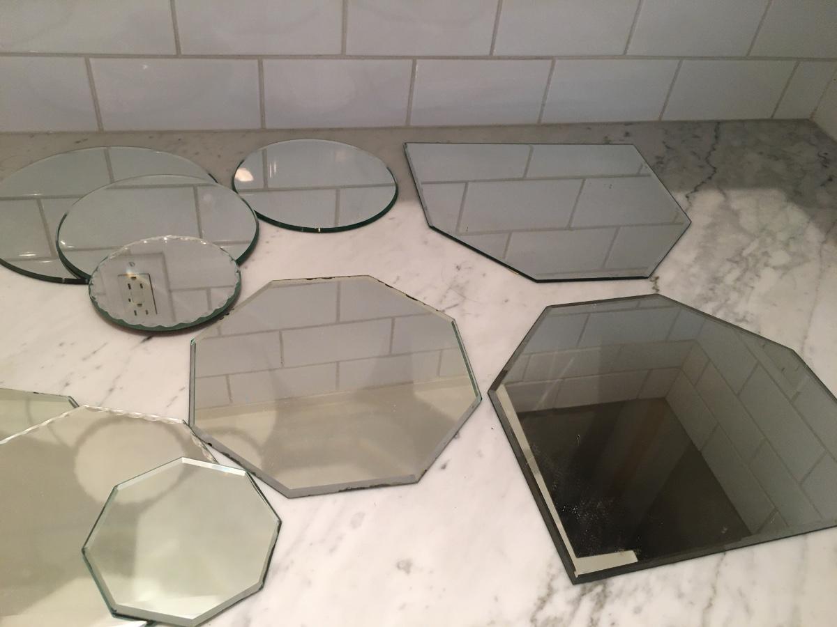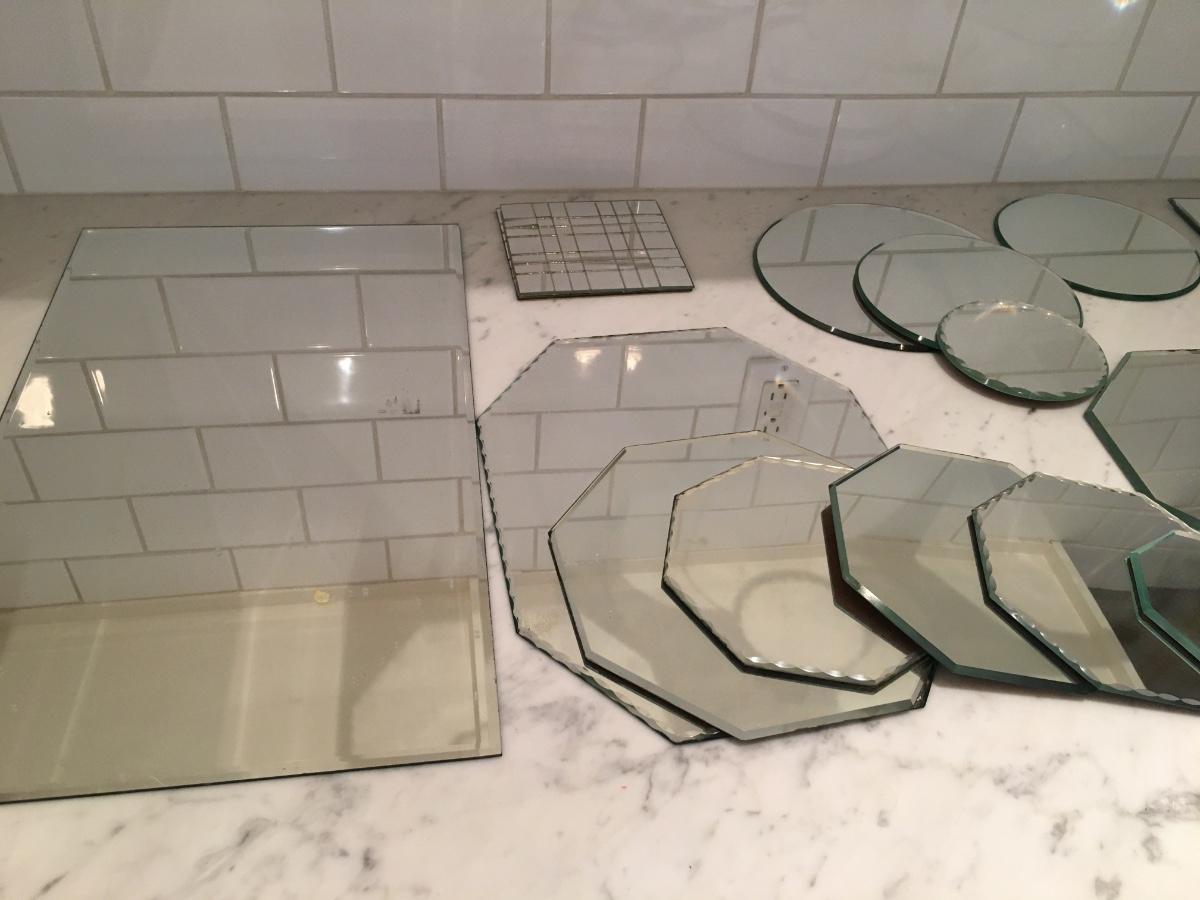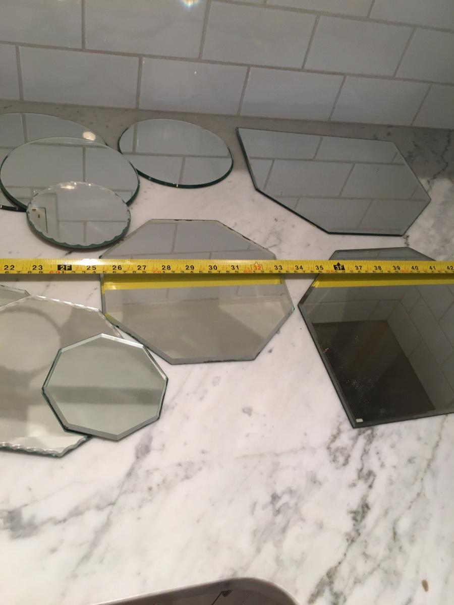 Large assortment of various shapes and sizes of mirrors.