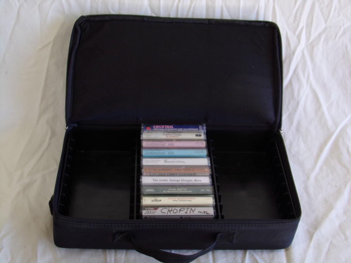 Assorted music & carry case, 10 cassette tapes in carry case. Case Logic cassette organizer holds 30 cassette tapes.