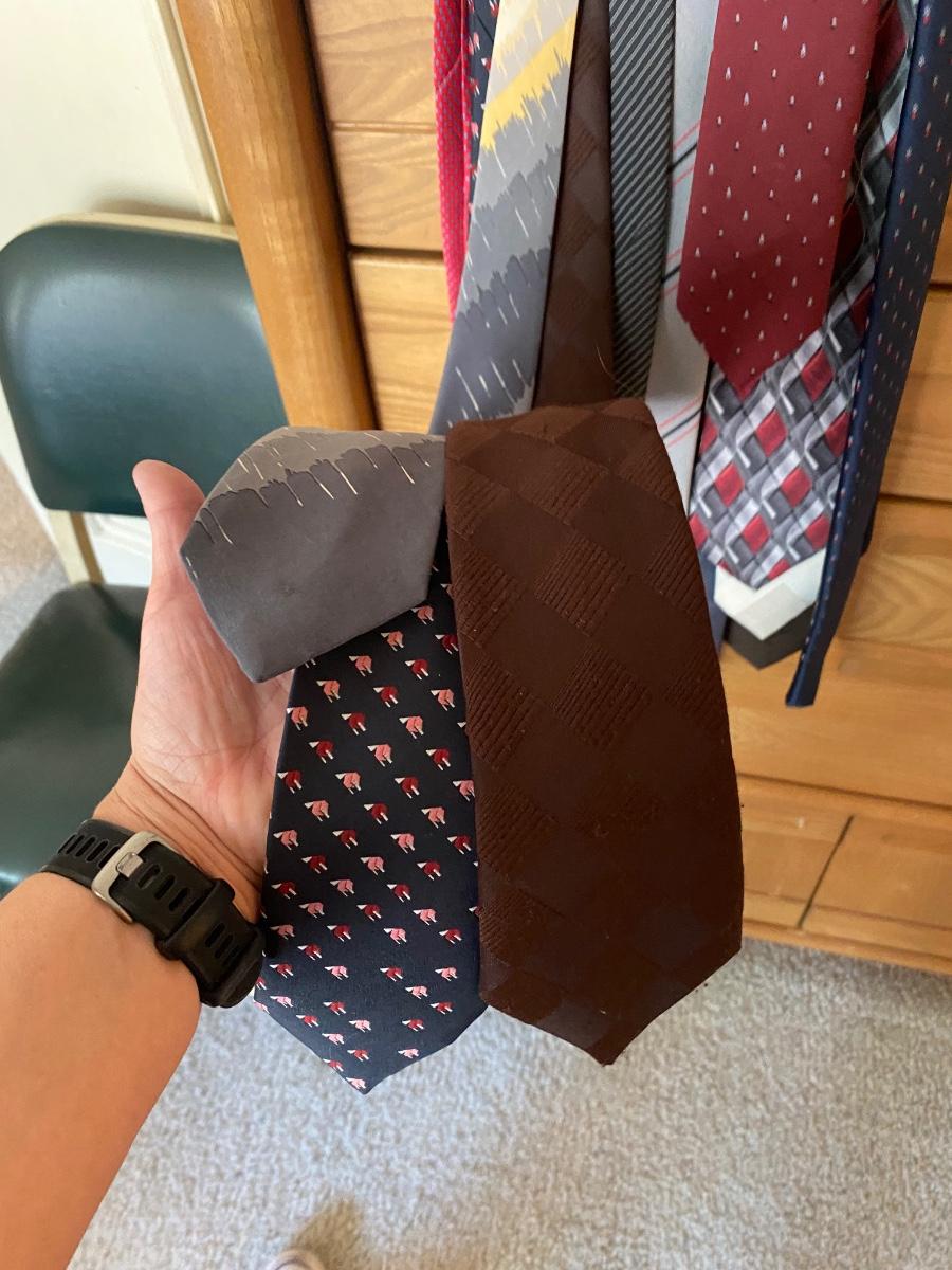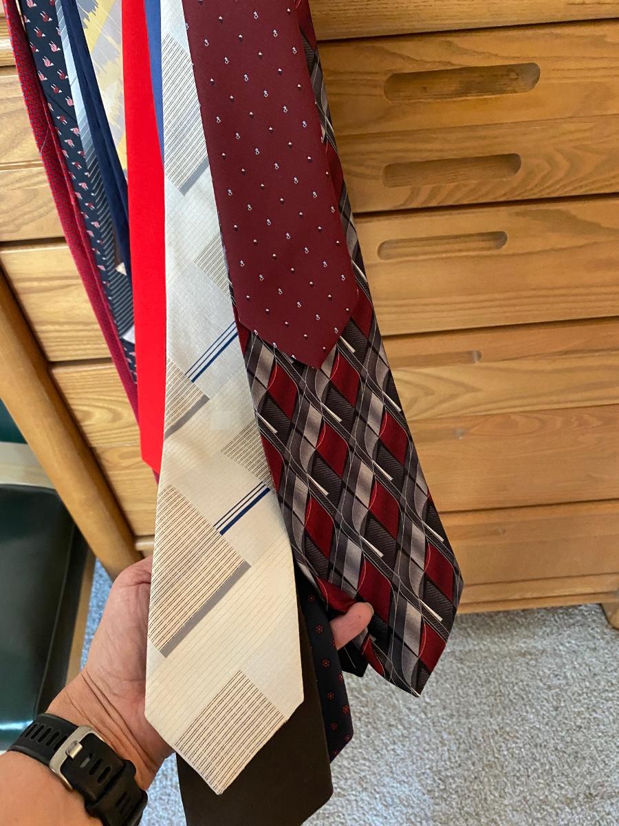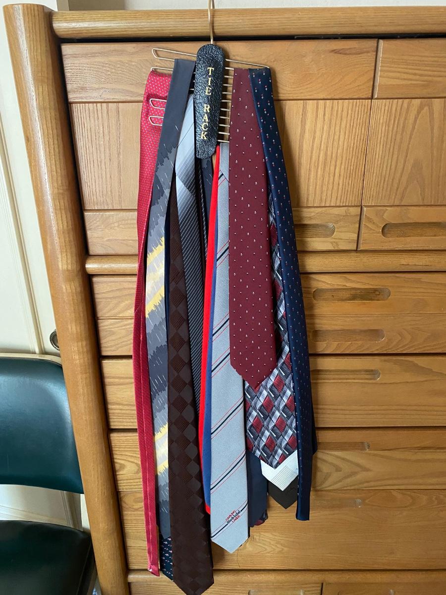 Assorted Neck Ties with Retro Hanger. Various colors and styles. Look to be in good condition.