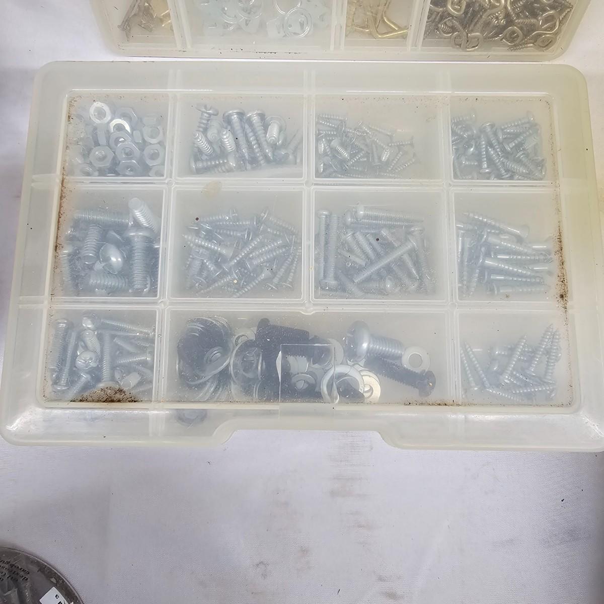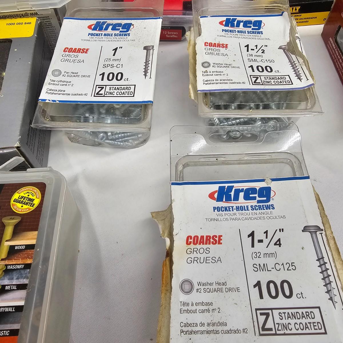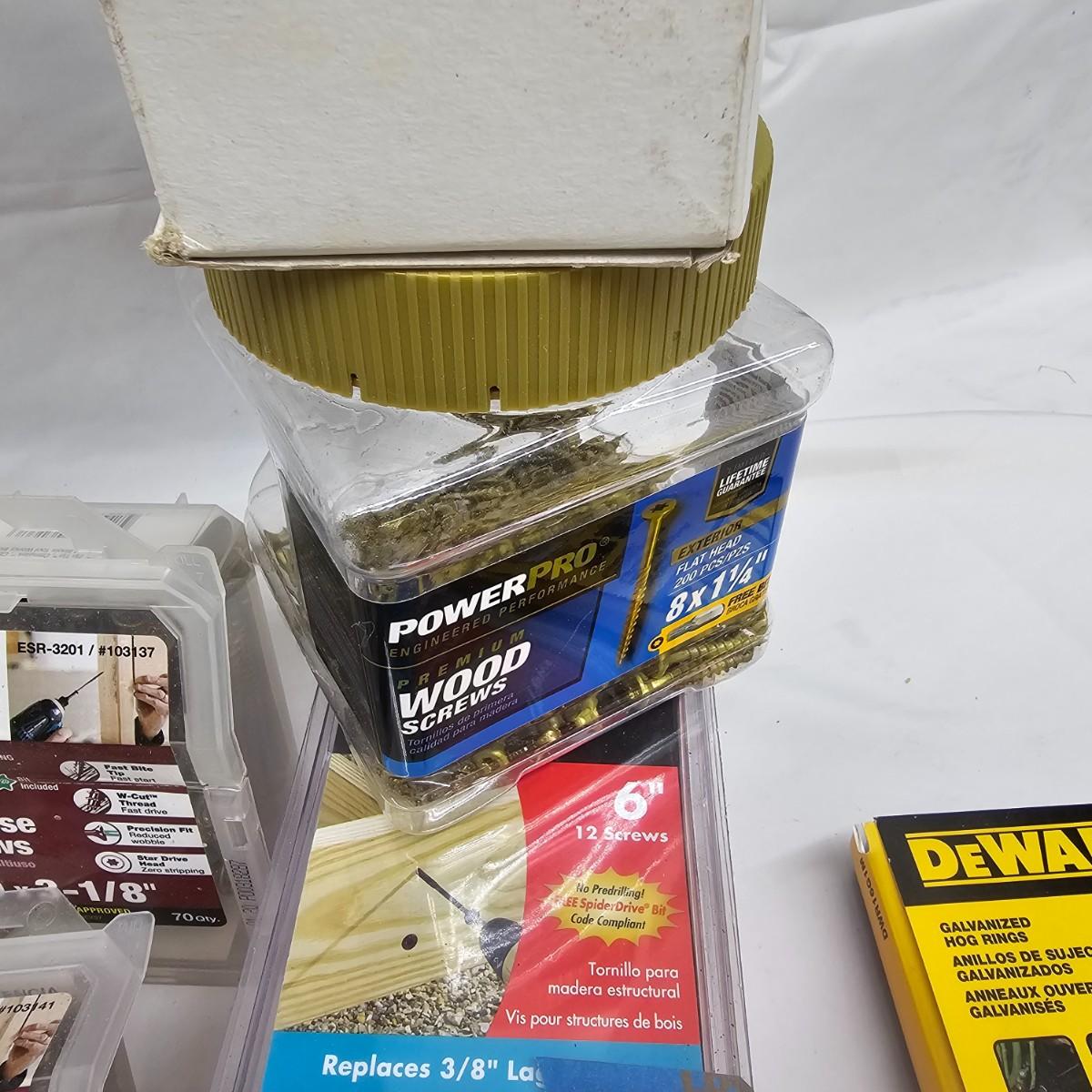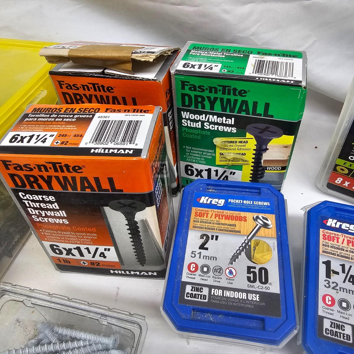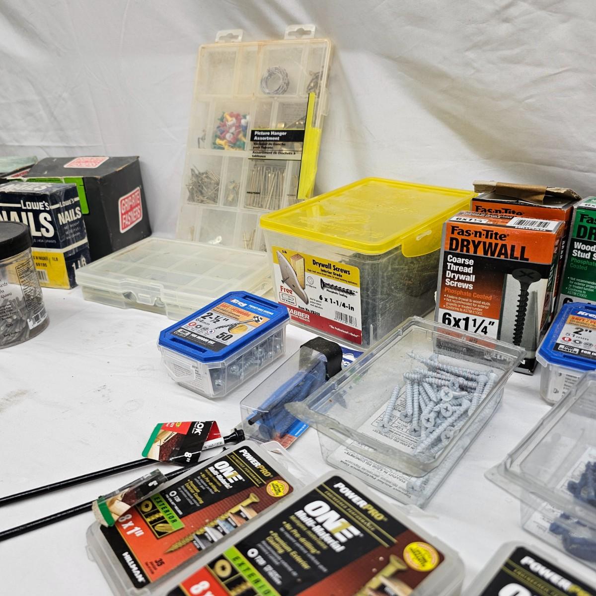 Boxes and containers of just nails and screws. Indoor, outdoor, galvanized, for decking, lumber, more. Assorted sizes and diameters. Some older items in original boxes. Lowe's, PowerPro, GripRite, Tapcon and others. Quantities unknown. See photos for details. Local pickup only.