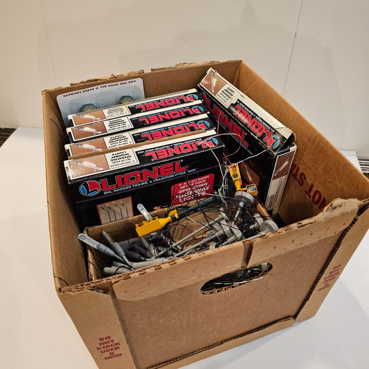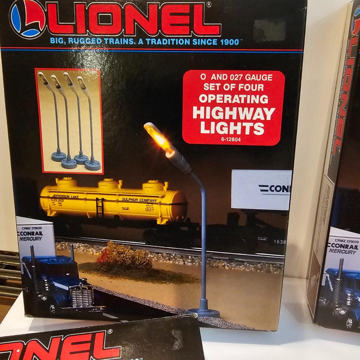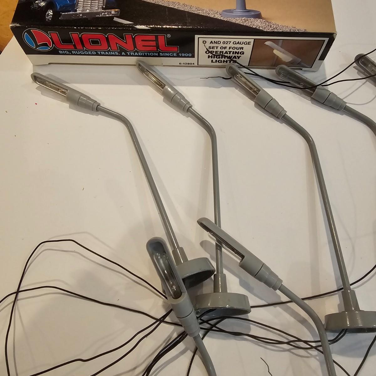 Several different styles of operating highway lighting and other. Sets of Lionel highway lighting for roadway use or other, 6"H. Lights are loose but have original boxes included. Multiple Lionel track lockons which were used with the lights. Also Life Like traffic signals, and small screw down light bases for use inside buildings and structures. See photos for details. No items were tested. Shipping available. Please note that any price tag seen on an item was not put there by Sterling Transitions and does not reflect the current value of the item.