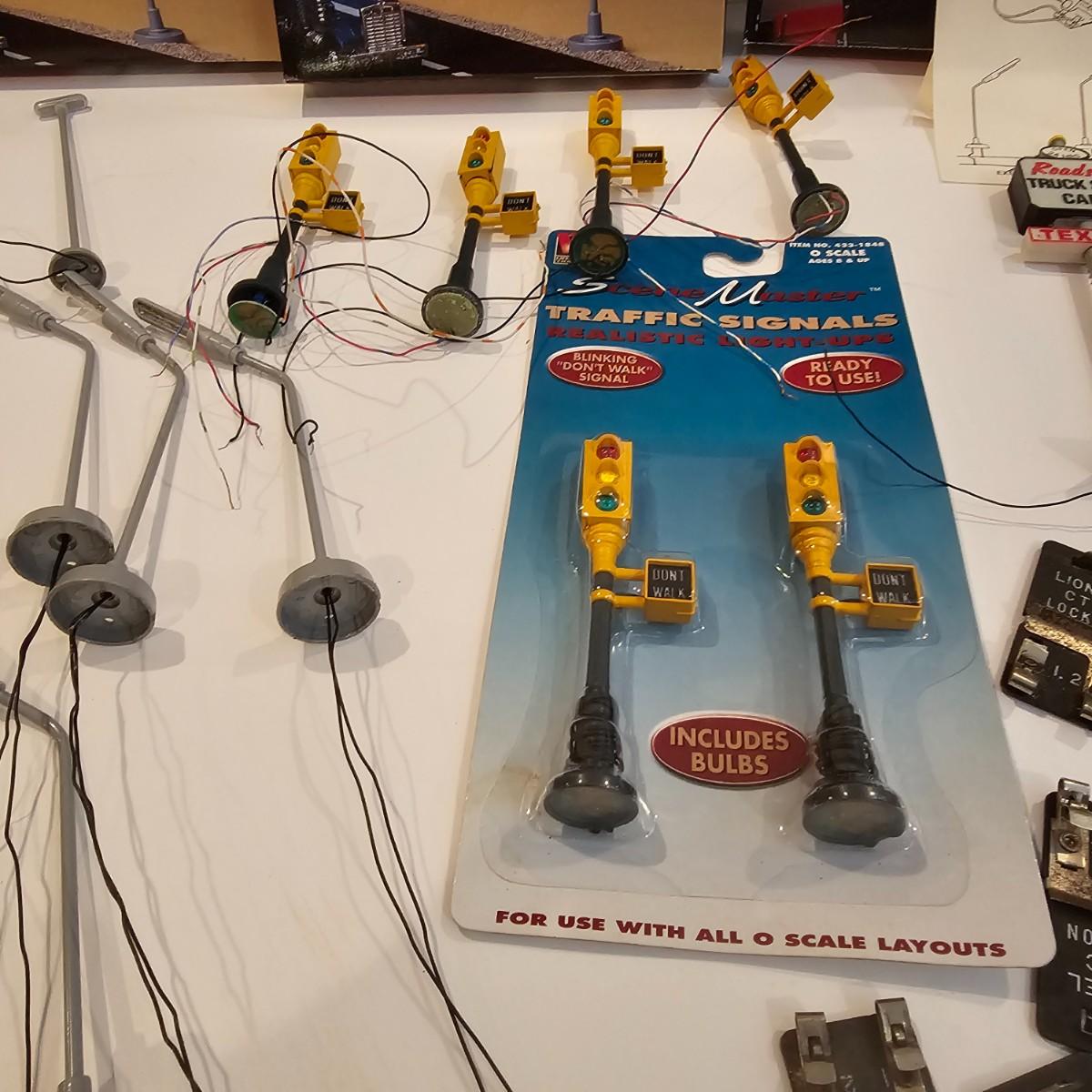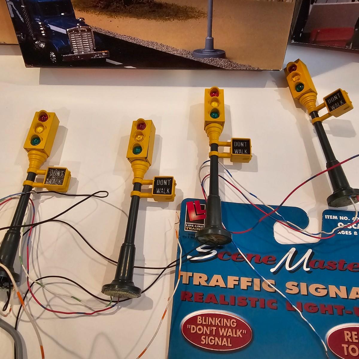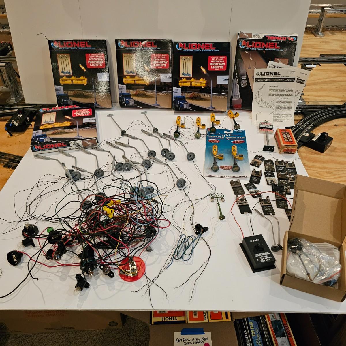 Several different styles of operating highway lighting and other. Sets of Lionel highway lighting for roadway use or other, 6"H. Lights are loose but have original boxes included. Multiple Lionel track lockons which were used with the lights. Also Life Like traffic signals, and small screw down light bases for use inside buildings and structures. See photos for details. No items were tested. Shipping available. Please note that any price tag seen on an item was not put there by Sterling Transitions and does not reflect the current value of the item.