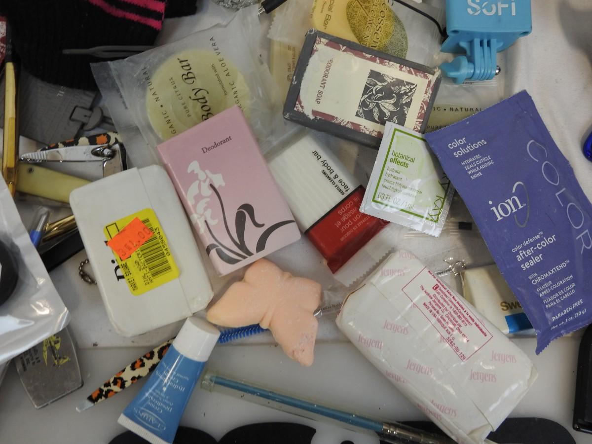 Assorted Personal Care Lot: Gloves, Phone Cases, Magnifying Glass, Assorted small Soaps