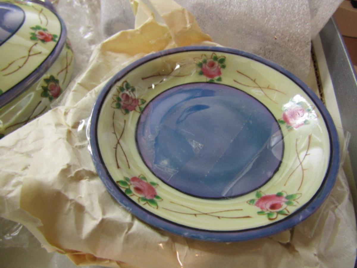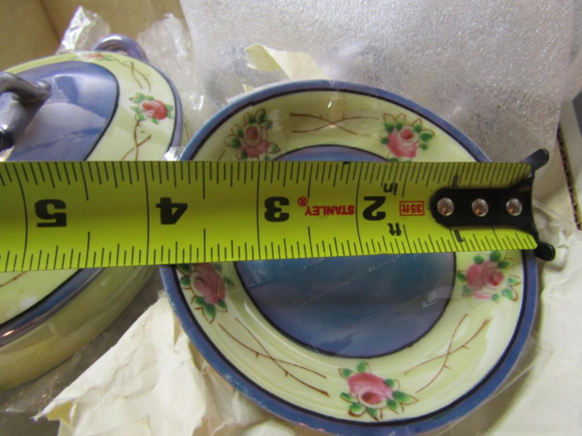 Assorted Pieces of Lusterware from Vintage Doll's Table Setting- Approx 10 Pieces. Made in Japan. 5 dinner plates, 3 saucers, and two covered dishes.