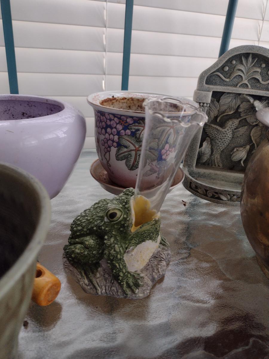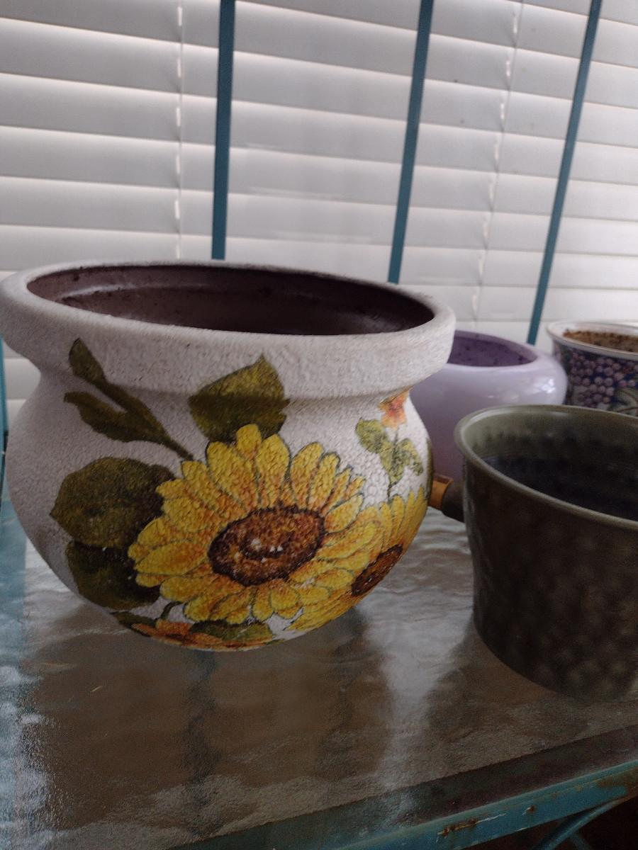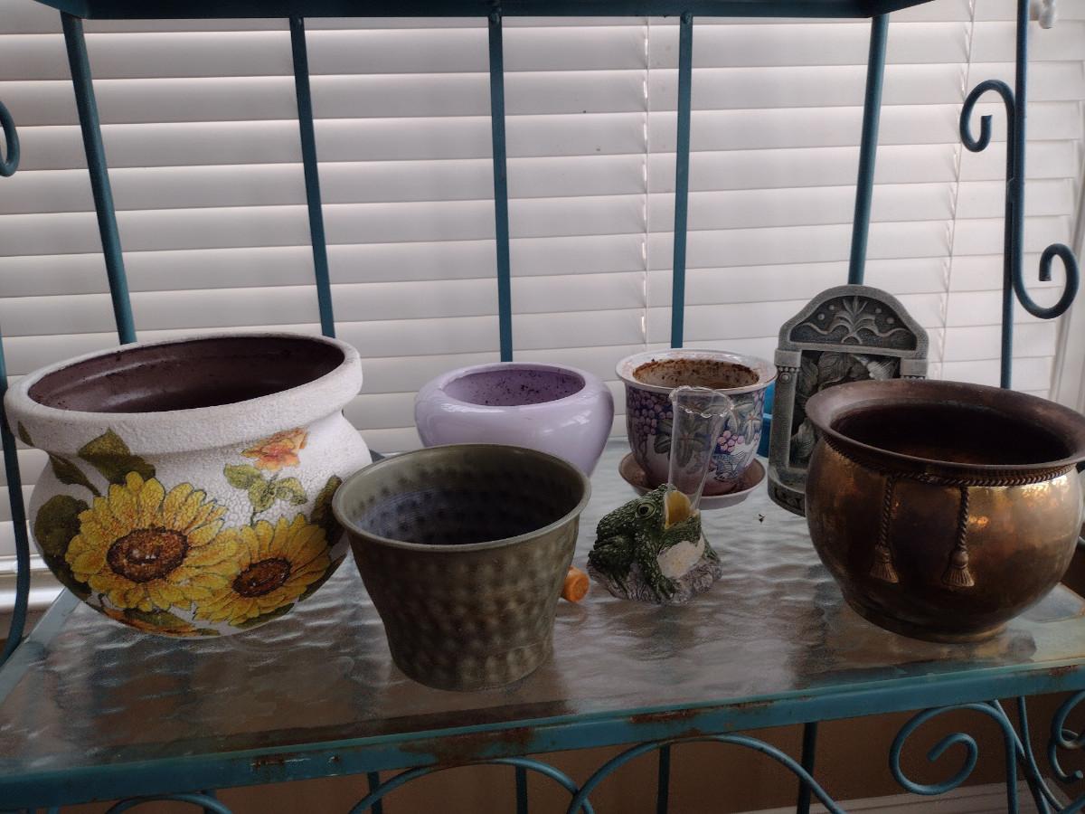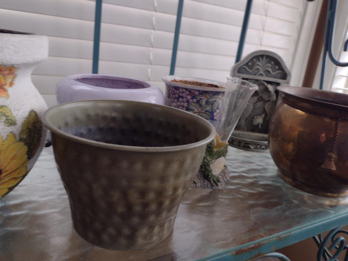 Assorted Planter Pots and Patio Decor- Assorted Ceramic, Metal, and Resin