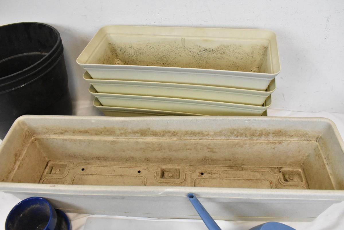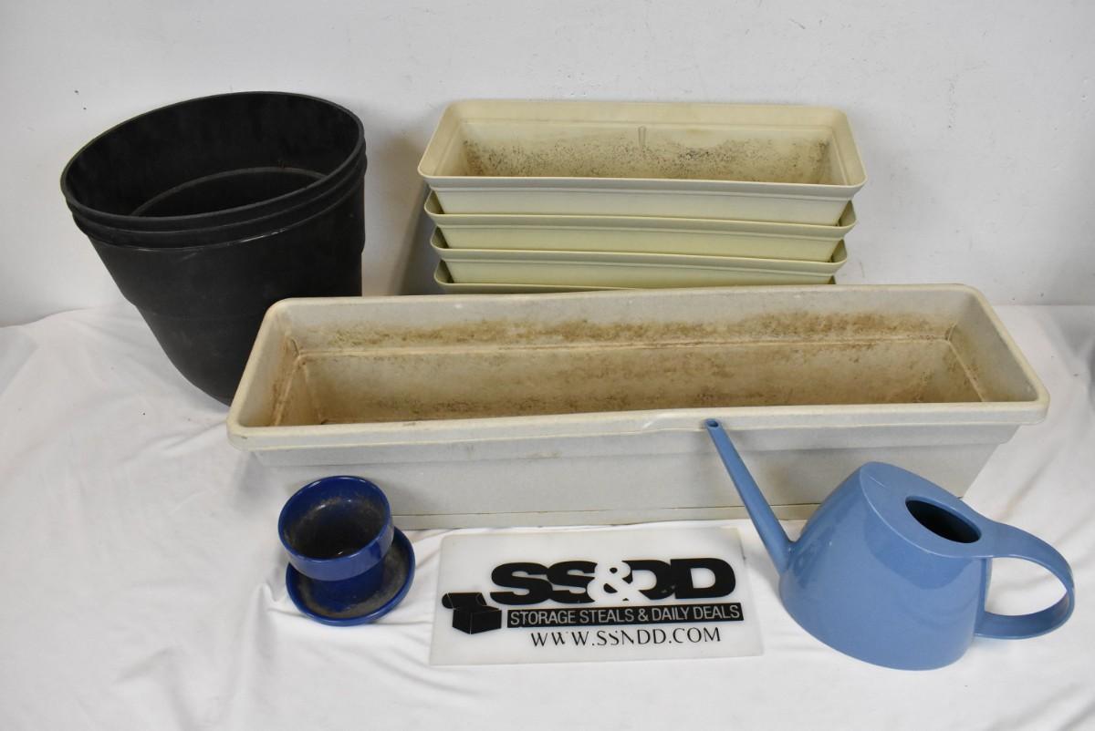 Assorted Planters, 4 18" Rectangular Planters, 3 Black Round Planters