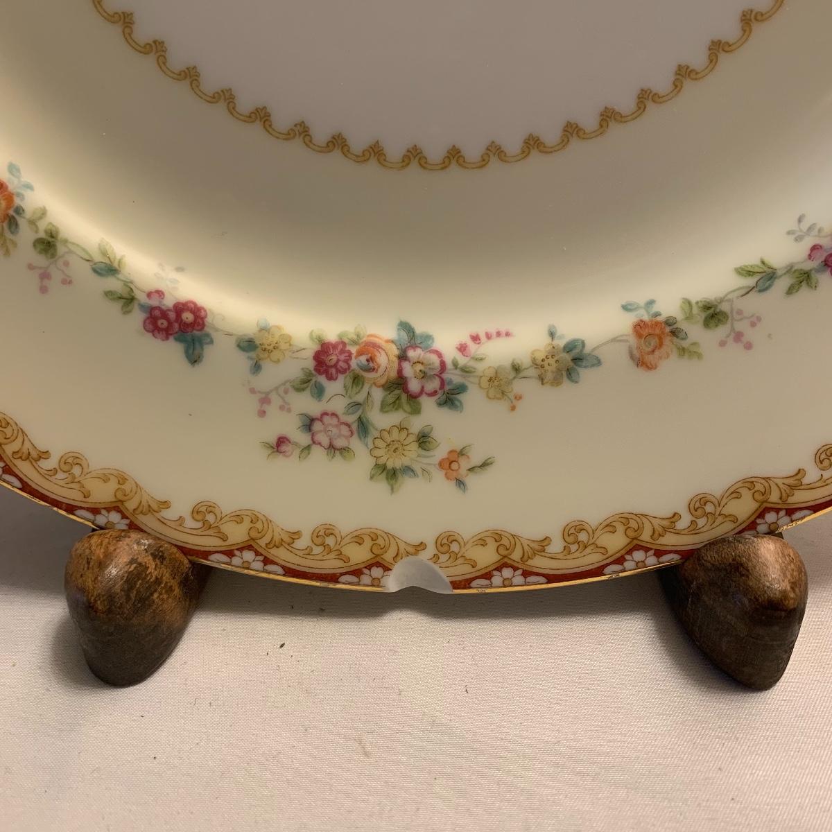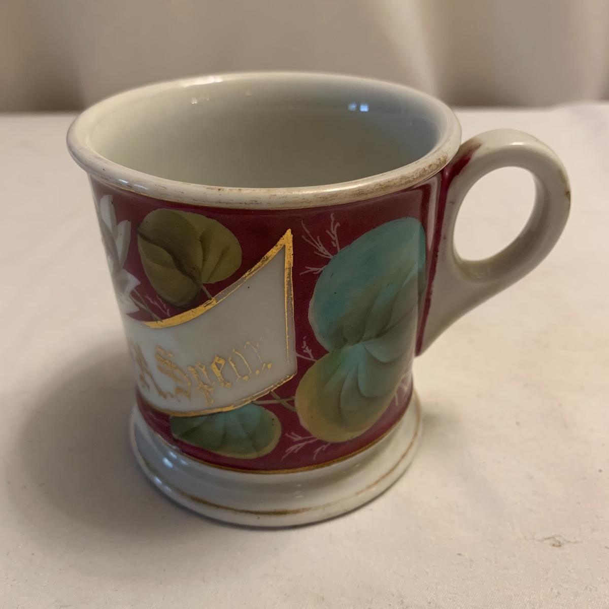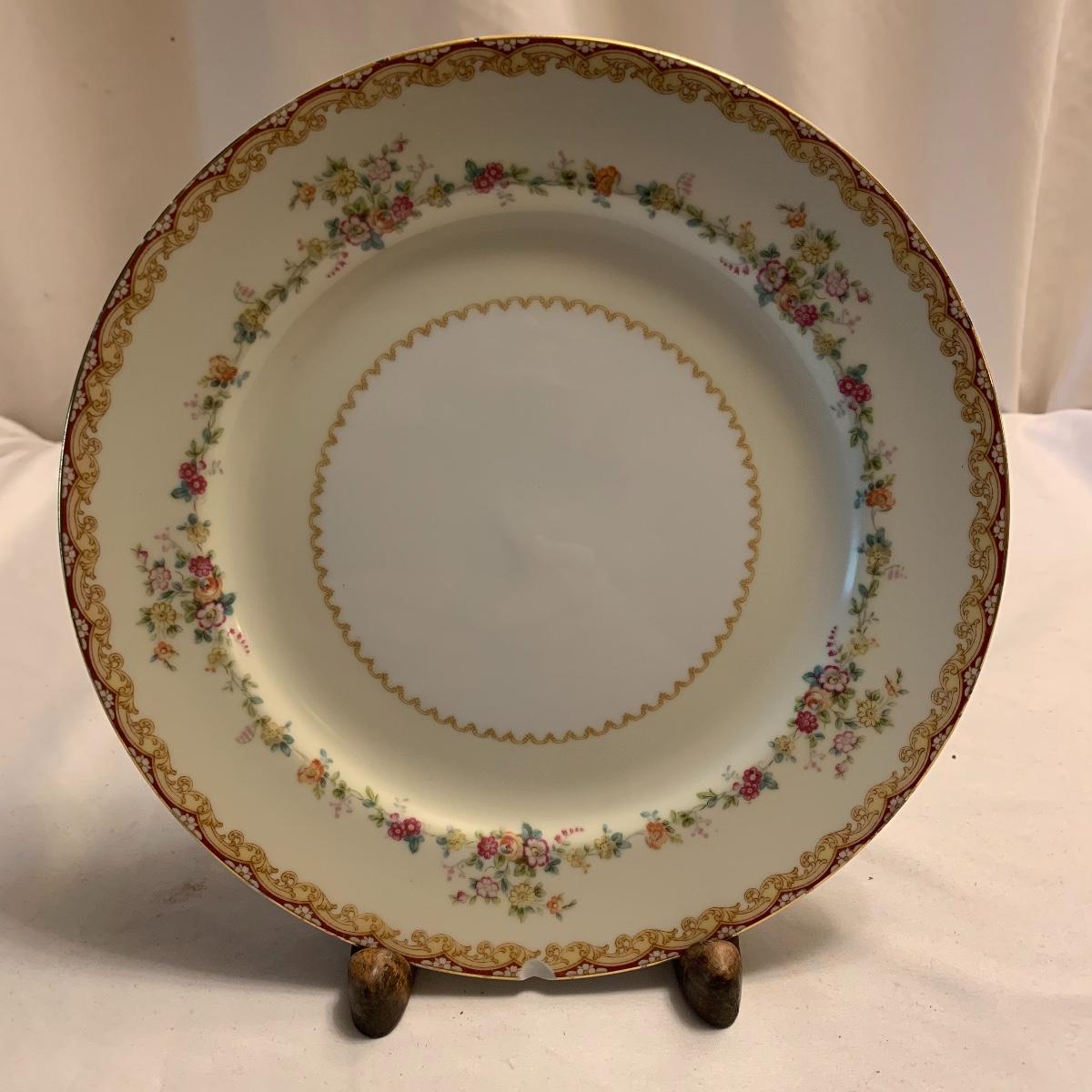 This lot includes four assorted china plates, and a coffee cup. The diameter of these plates ranges from 6” up to 10”. All items are in good condition except for a small chip missing from the white and beige plate