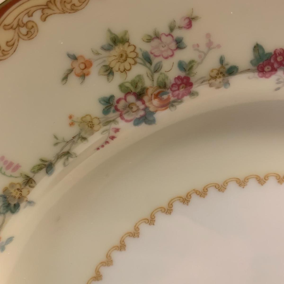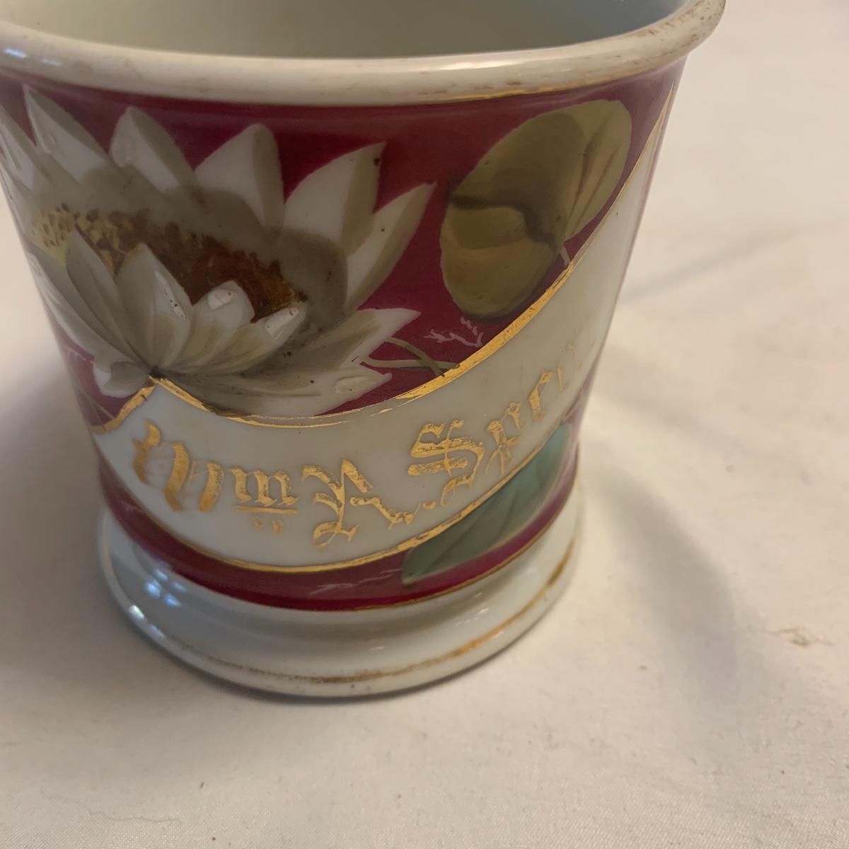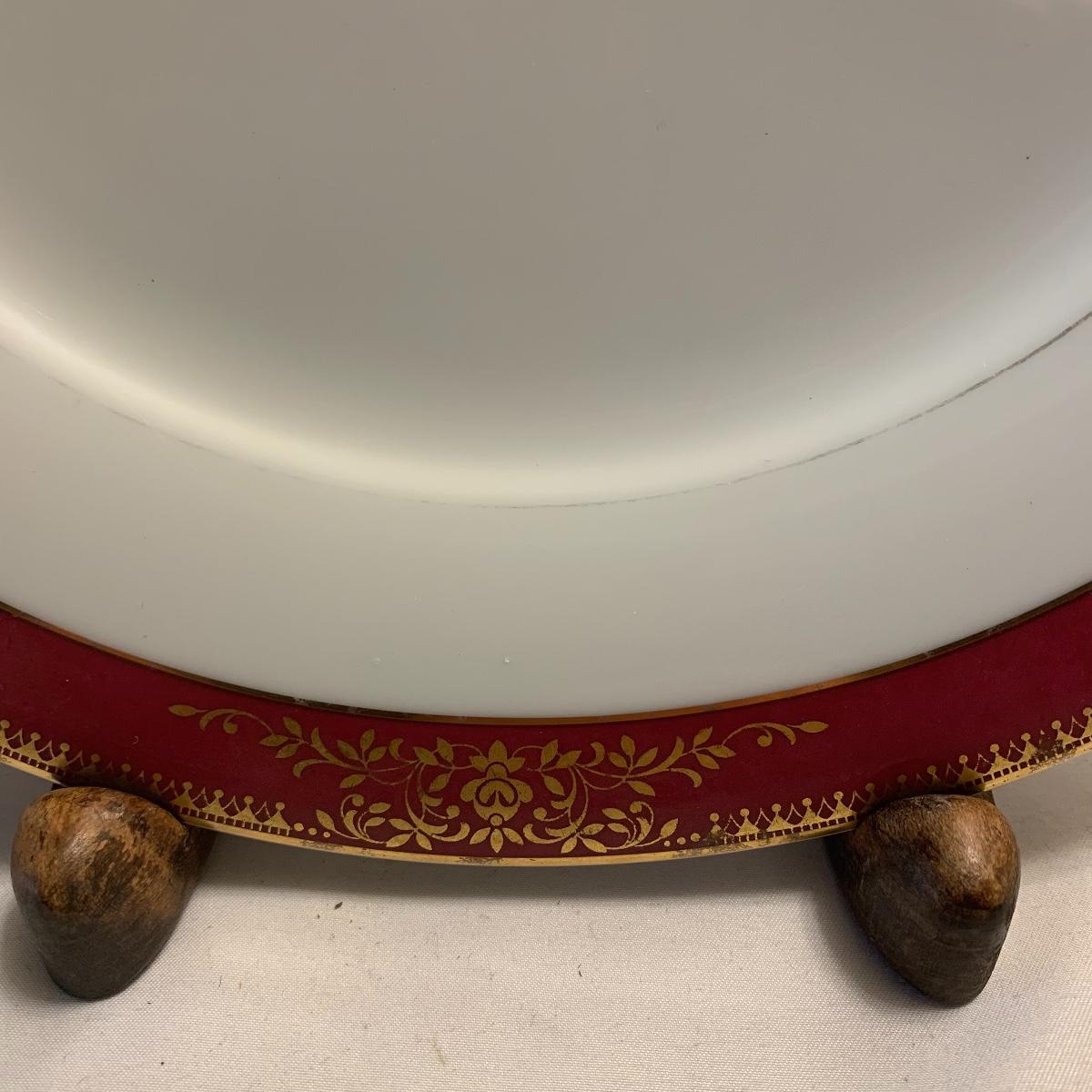 This lot includes four assorted china plates, and a coffee cup. The diameter of these plates ranges from 6” up to 10”. All items are in good condition except for a small chip missing from the white and beige plate