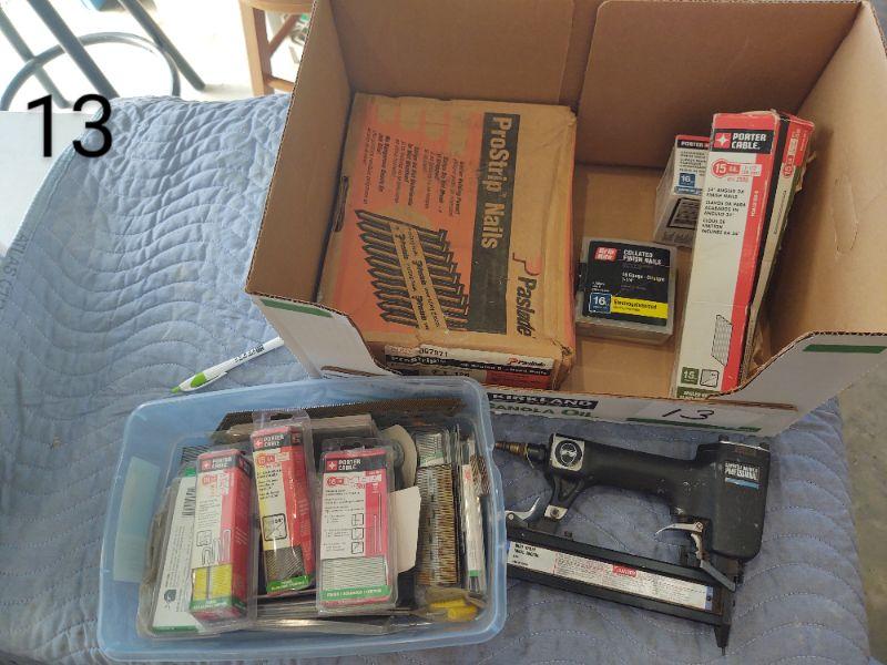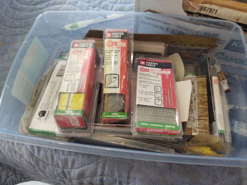 Campbell Hausfeld professional brad nailer, Prostrip nails, assorted other nails, etc.