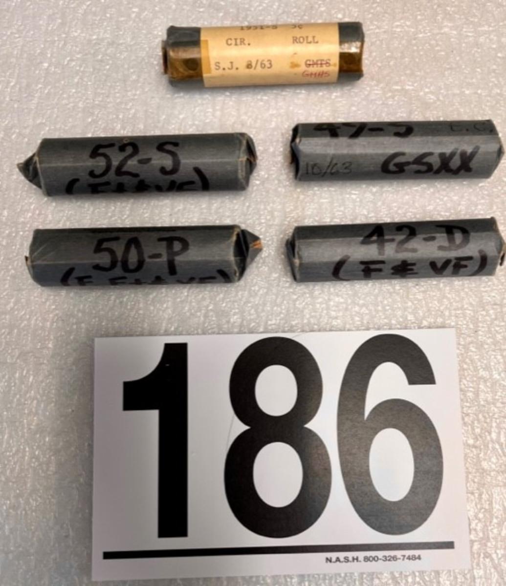 Includes 49-S nickels, 42-D nickels, 50-P nickels, 51-S Nickels, and 52-S nickels. SOLD AS IS.